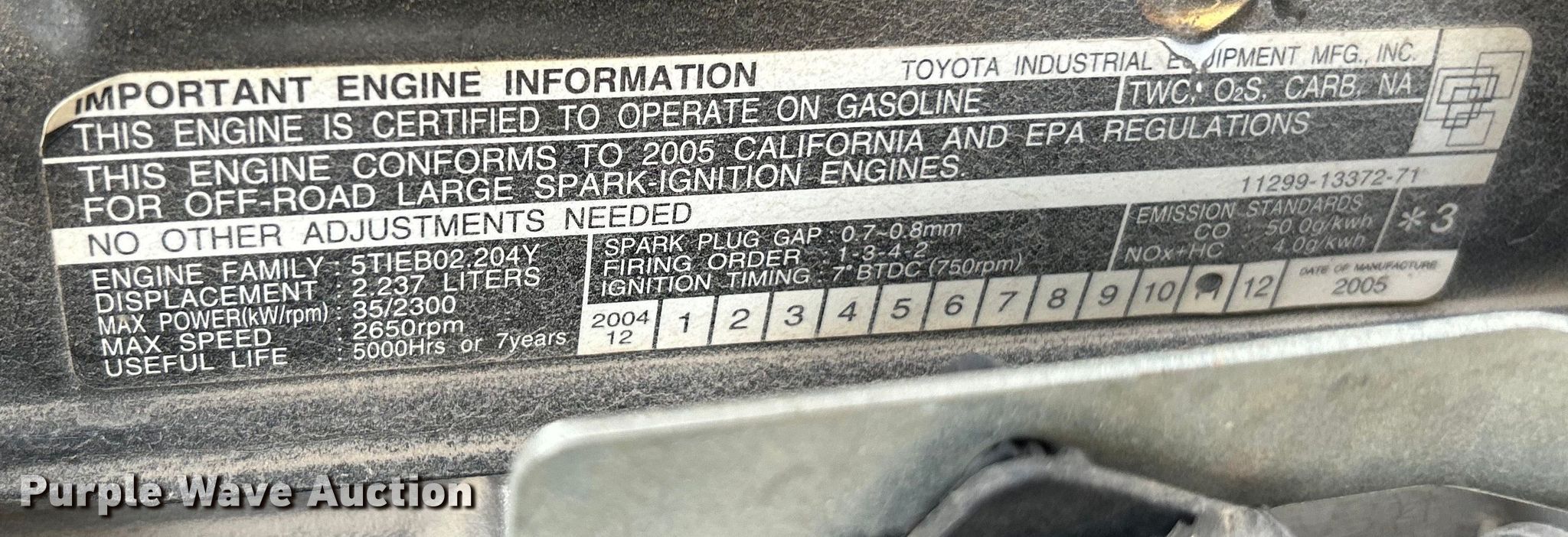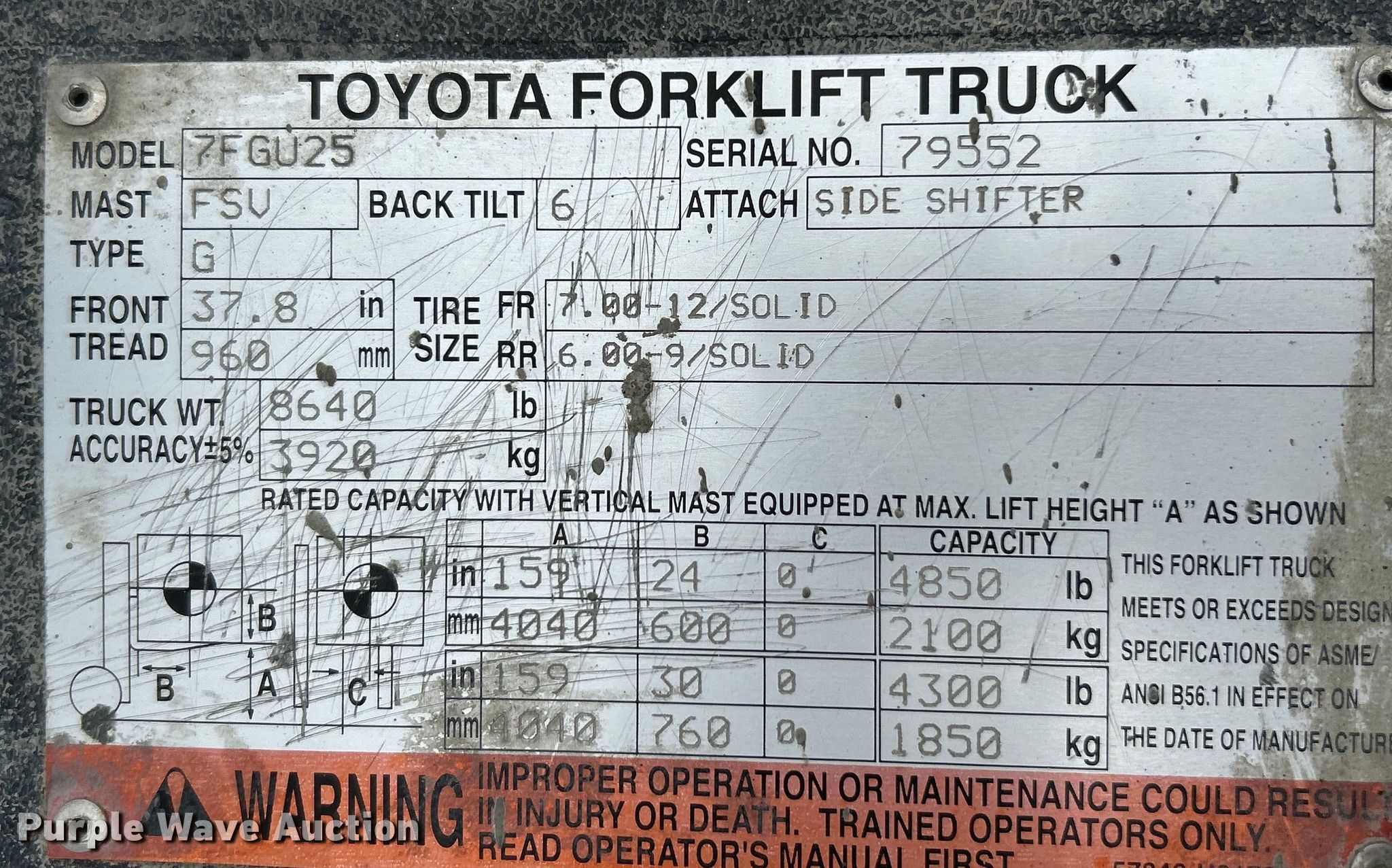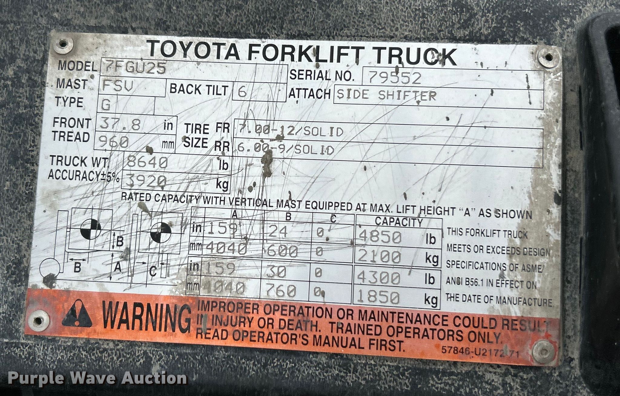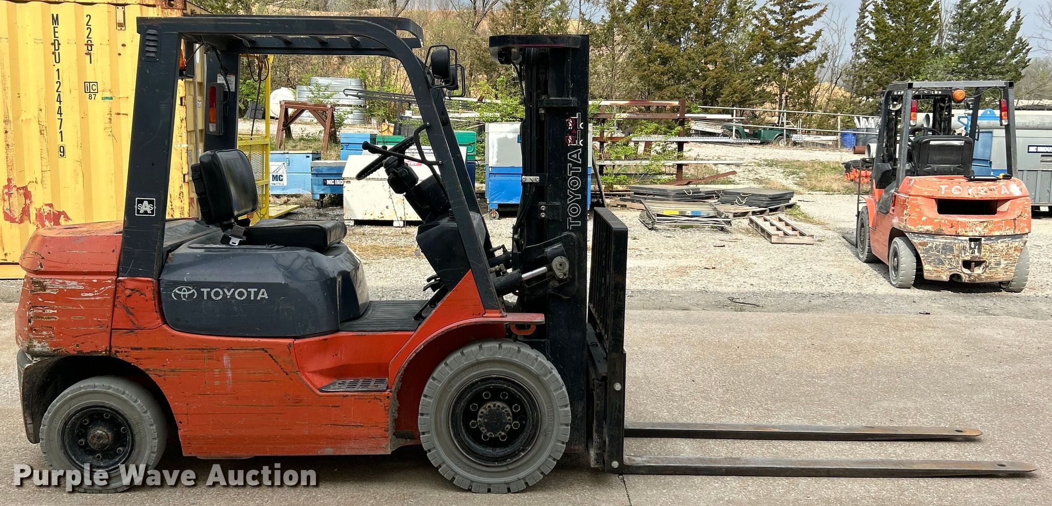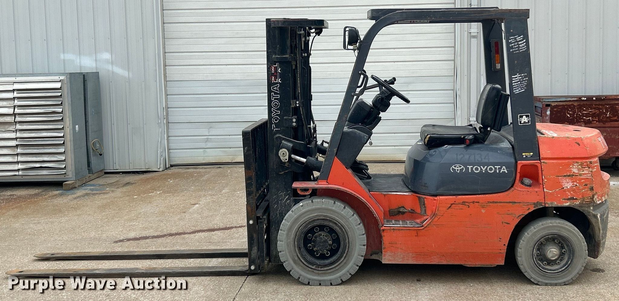 Purple Wave is selling a used Warehouse Forklift in Missouri. This item is a 2005 Toyota 7FGU25 forklift with the following: Hours: 6,081 on meter, Serial: 79552