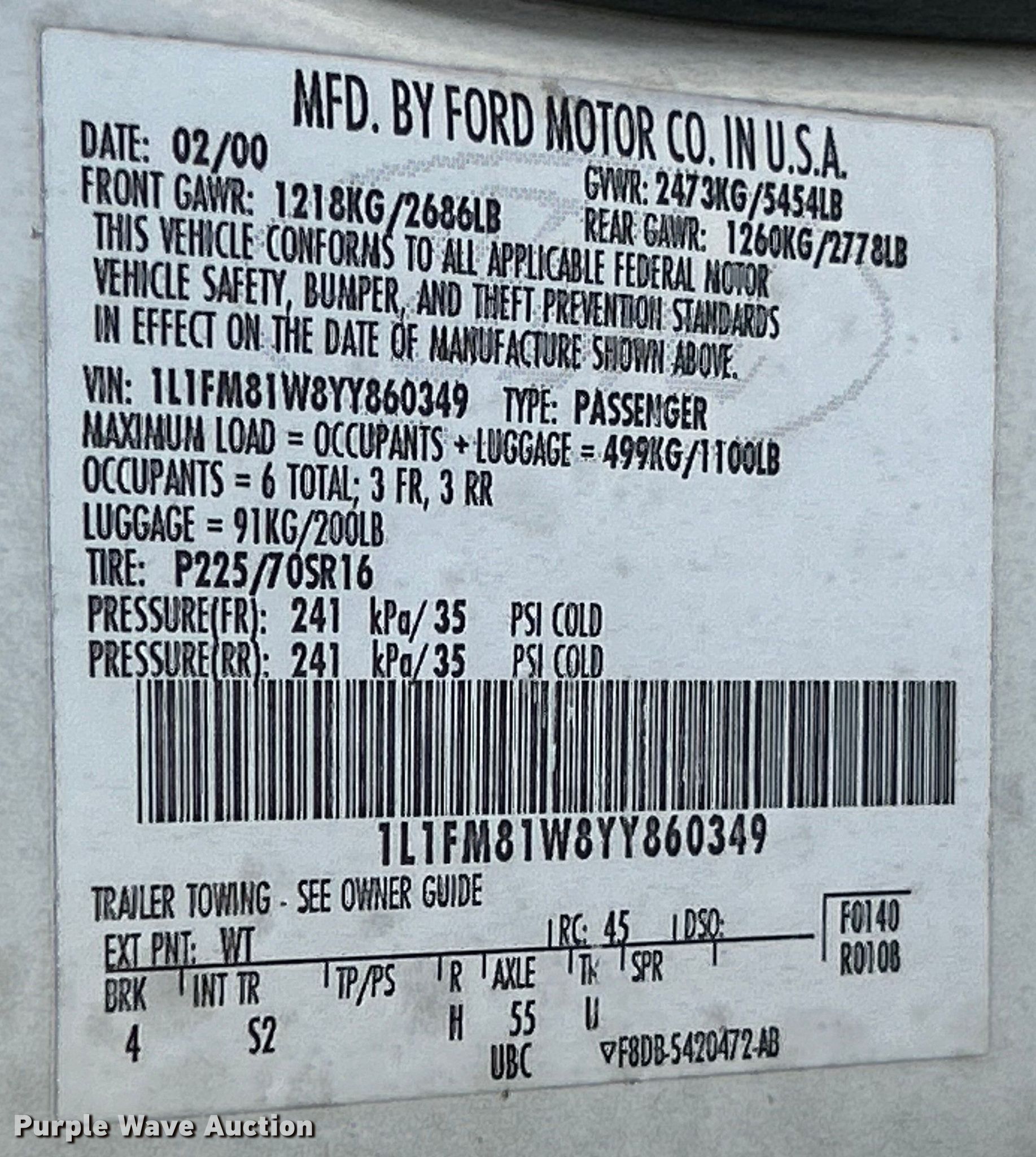 Purple Wave is selling a used Passenger Vehicle in Missouri. This item is a 2000 Lincoln Town Car Executive Series limousine with the following: Miles: 90,681 on odometer, VIN: 1L1FM81W8YY860349