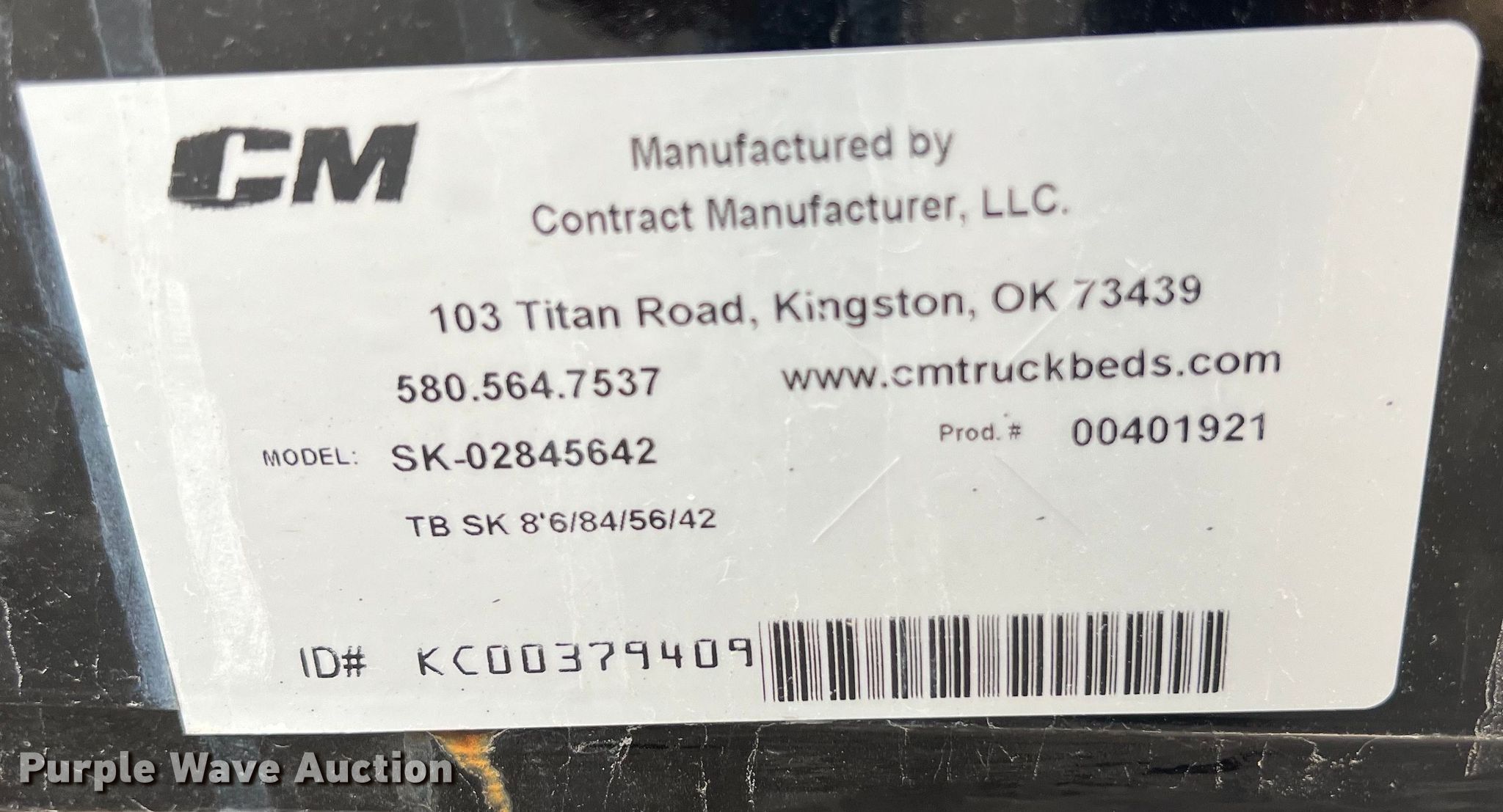 CM SK-02845642 flatbed. Serial: KC00379409, 8' 6" L x 7' W, Hitch: Gooseneck. Notes Trailer electrical outlet damaged, Unused. TTG UTILITIES, INC. Gatesville, TX 76528