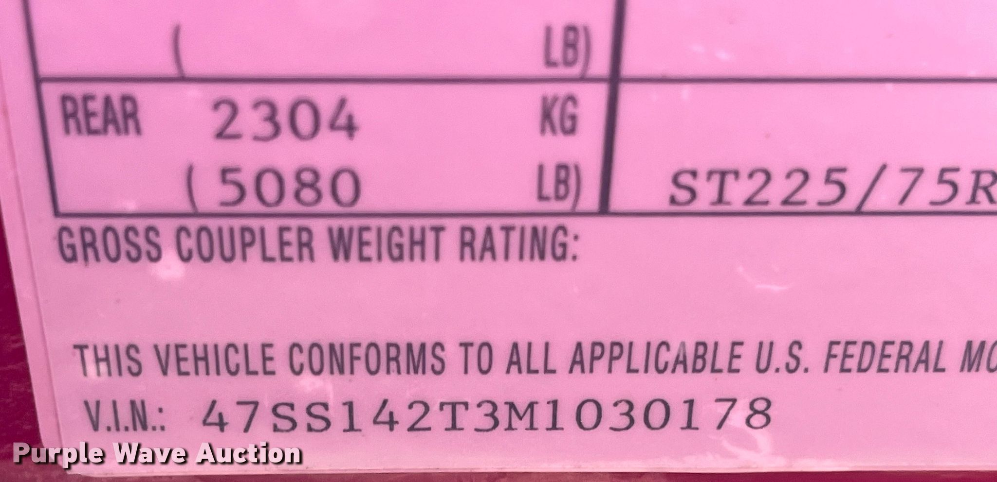 - VIN: 47SS142T3M1030178