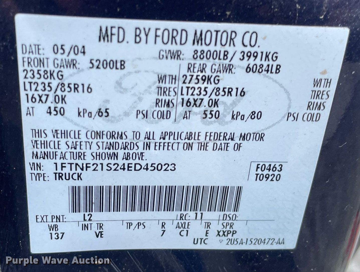 Purple Wave is selling a used 3/4 or 1 Ton Pickup or Van in New York. This item is a 2004 Ford F250 Super Duty XL pickup truck with the following: Miles: 131,097 on odometer, VIN: 1FTNF21S24ED45023