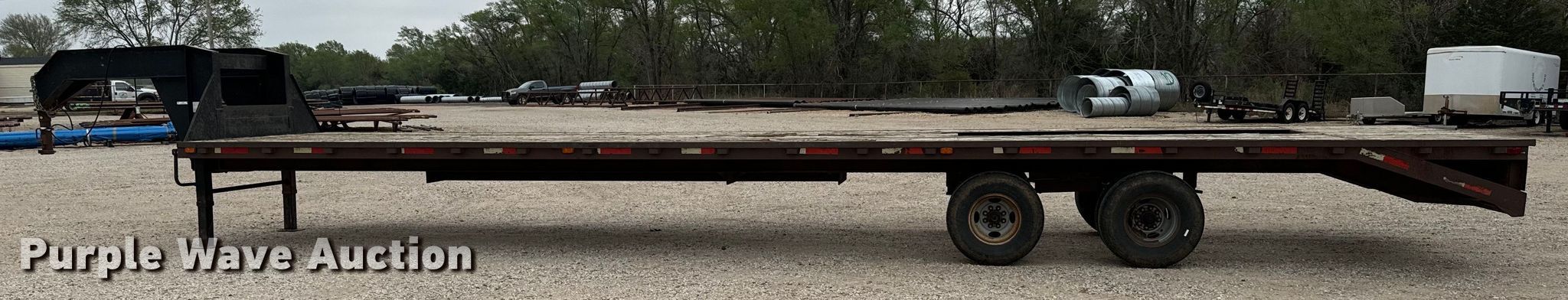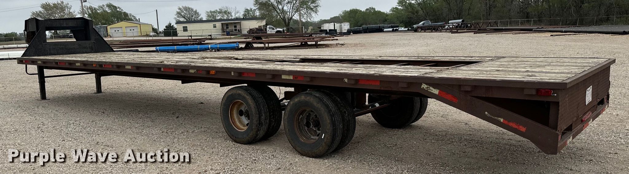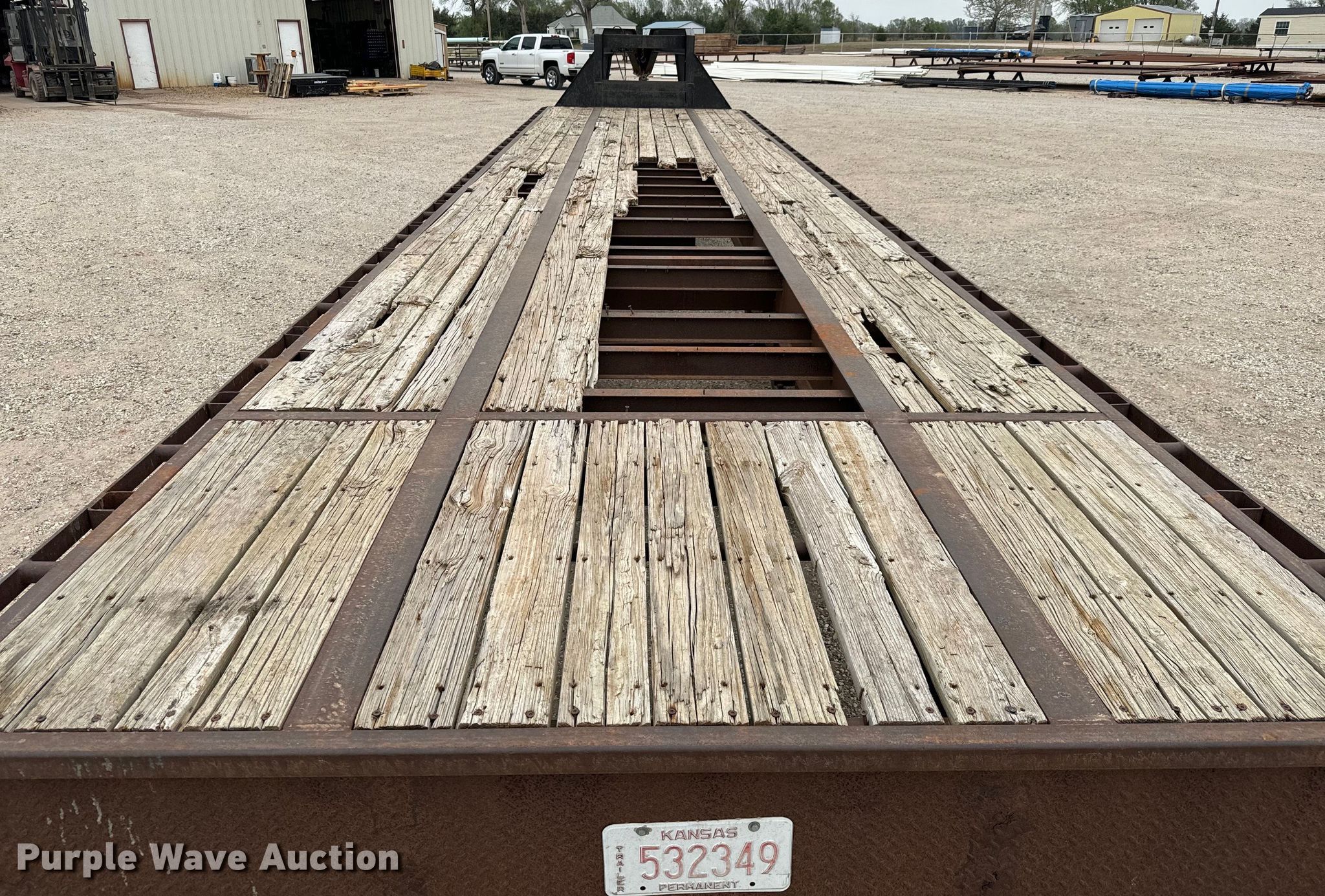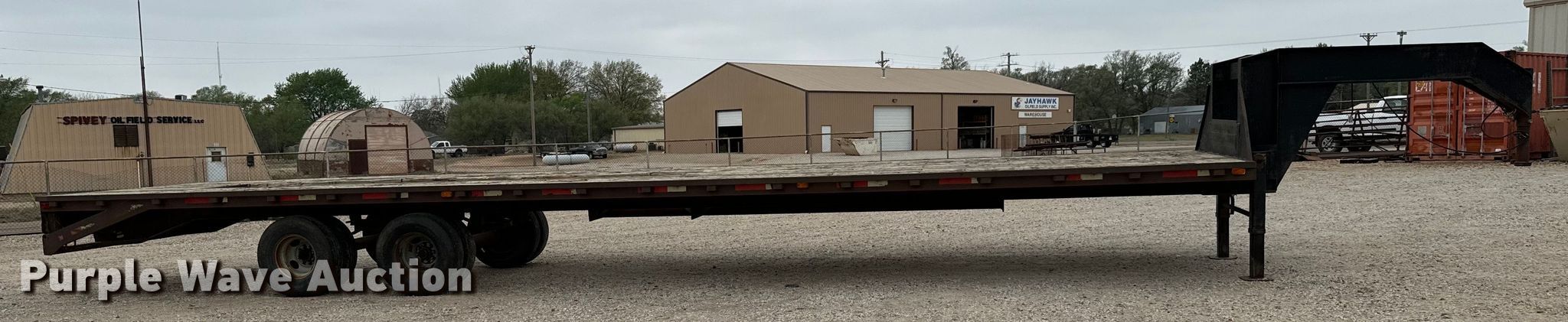 1997 Shop built equipment trailer. VIN: KS118225. Dimensions Overall: 46' L x 102" W, Deck: 37' 8" L x 97" W. Features Deck type: Wood. Chassis Hitch: Gooseneck, Landing gear: Dual, Suspension: Spring, Brakes: Electric, Axles: Tandem. Tires Steel wheels, Size: 235/85R16. Notes Deck boards damaged. Kansas title. Title distribution may be delayed up to 14 days from verification of funds. Spivey, KS 67142