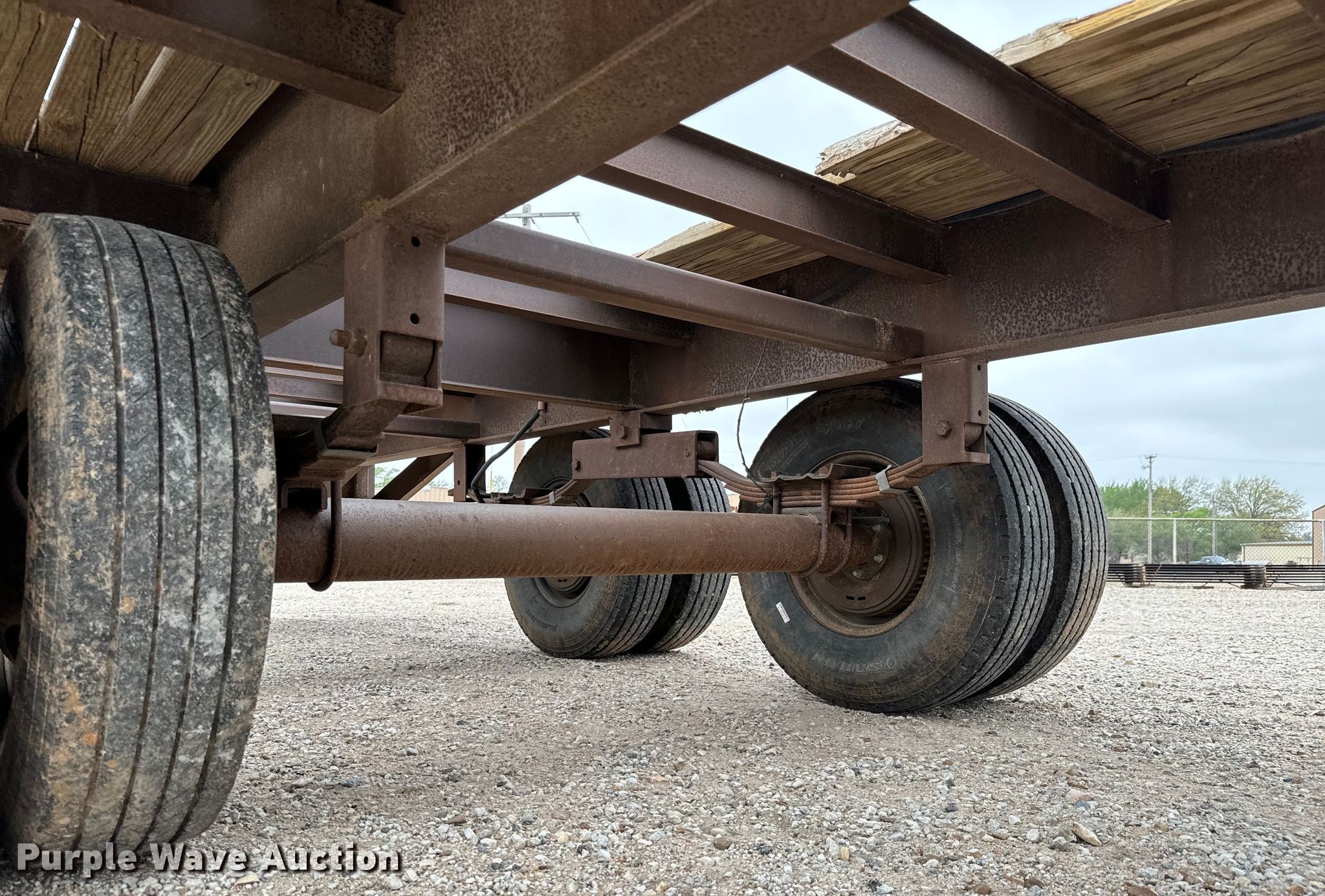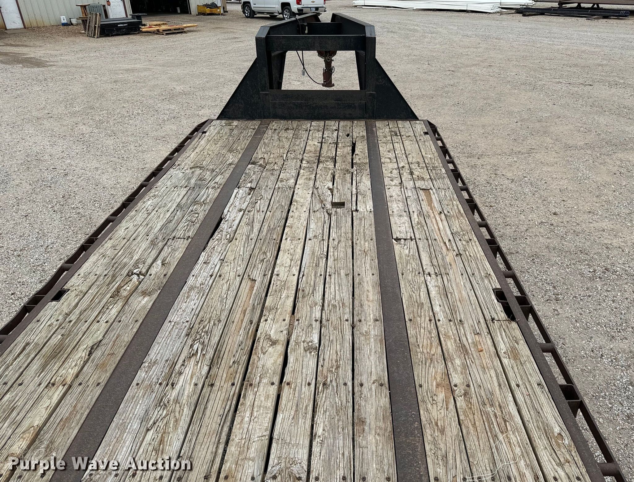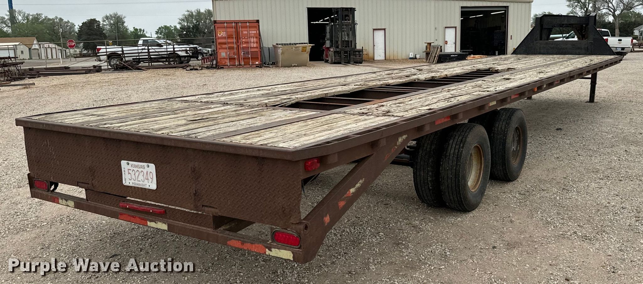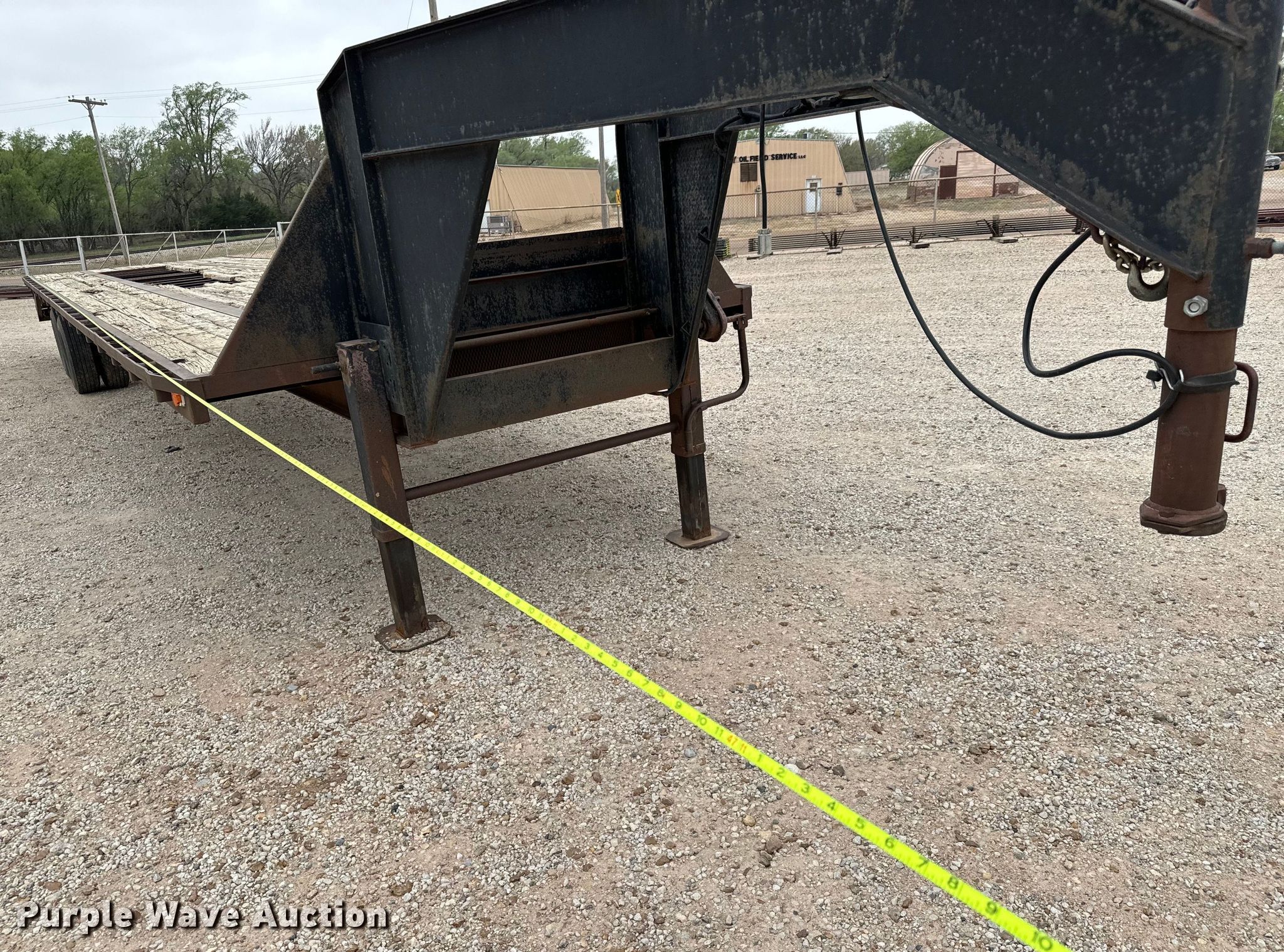 1997 Shop built equipment trailer. VIN: KS118225. Dimensions Overall: 46' L x 102" W, Deck: 37' 8" L x 97" W. Features Deck type: Wood. Chassis Hitch: Gooseneck, Landing gear: Dual, Suspension: Spring, Brakes: Electric, Axles: Tandem. Tires Steel wheels, Size: 235/85R16. Notes Deck boards damaged. Kansas title. Title distribution may be delayed up to 14 days from verification of funds. Spivey, KS 67142