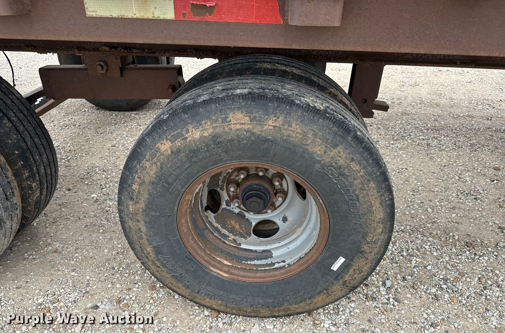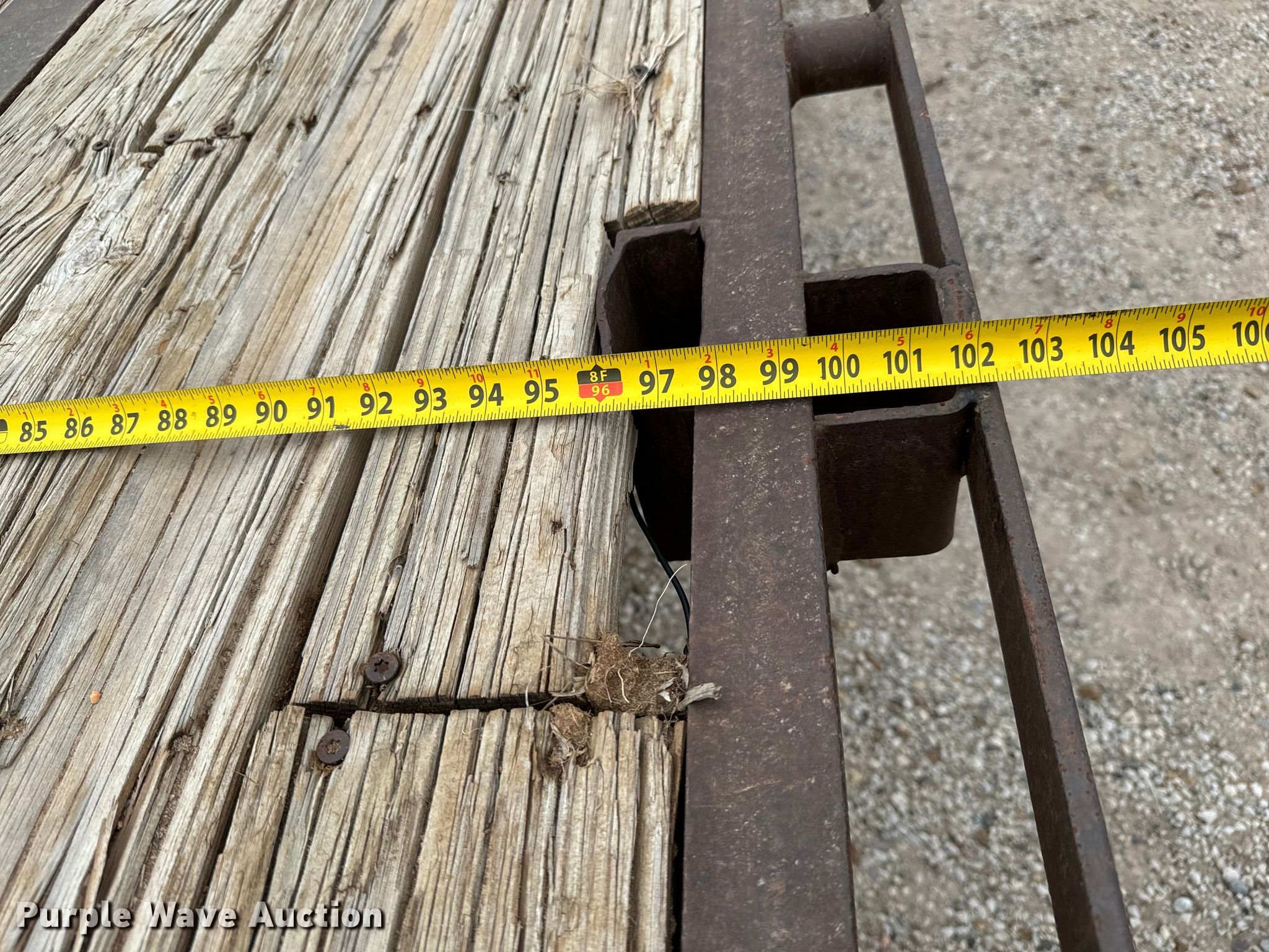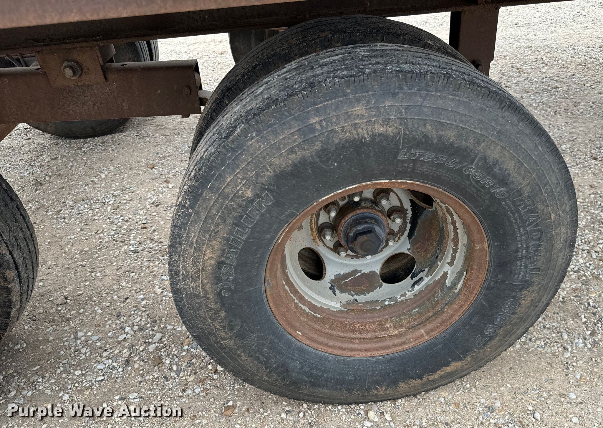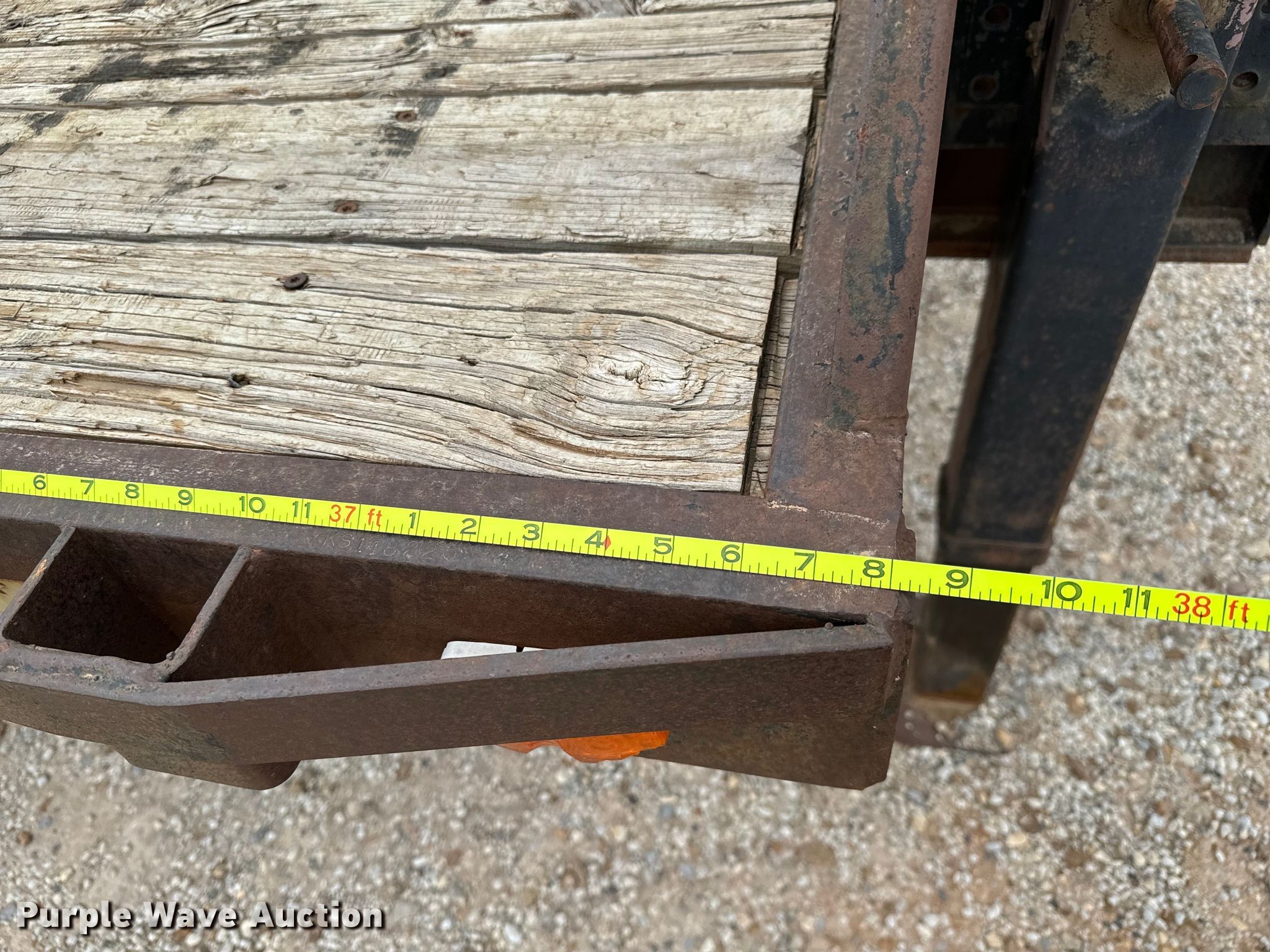 1997 Shop built equipment trailer. VIN: KS118225. Dimensions Overall: 46' L x 102" W, Deck: 37' 8" L x 97" W. Features Deck type: Wood. Chassis Hitch: Gooseneck, Landing gear: Dual, Suspension: Spring, Brakes: Electric, Axles: Tandem. Tires Steel wheels, Size: 235/85R16. Notes Deck boards damaged. Kansas title. Title distribution may be delayed up to 14 days from verification of funds. Spivey, KS 67142