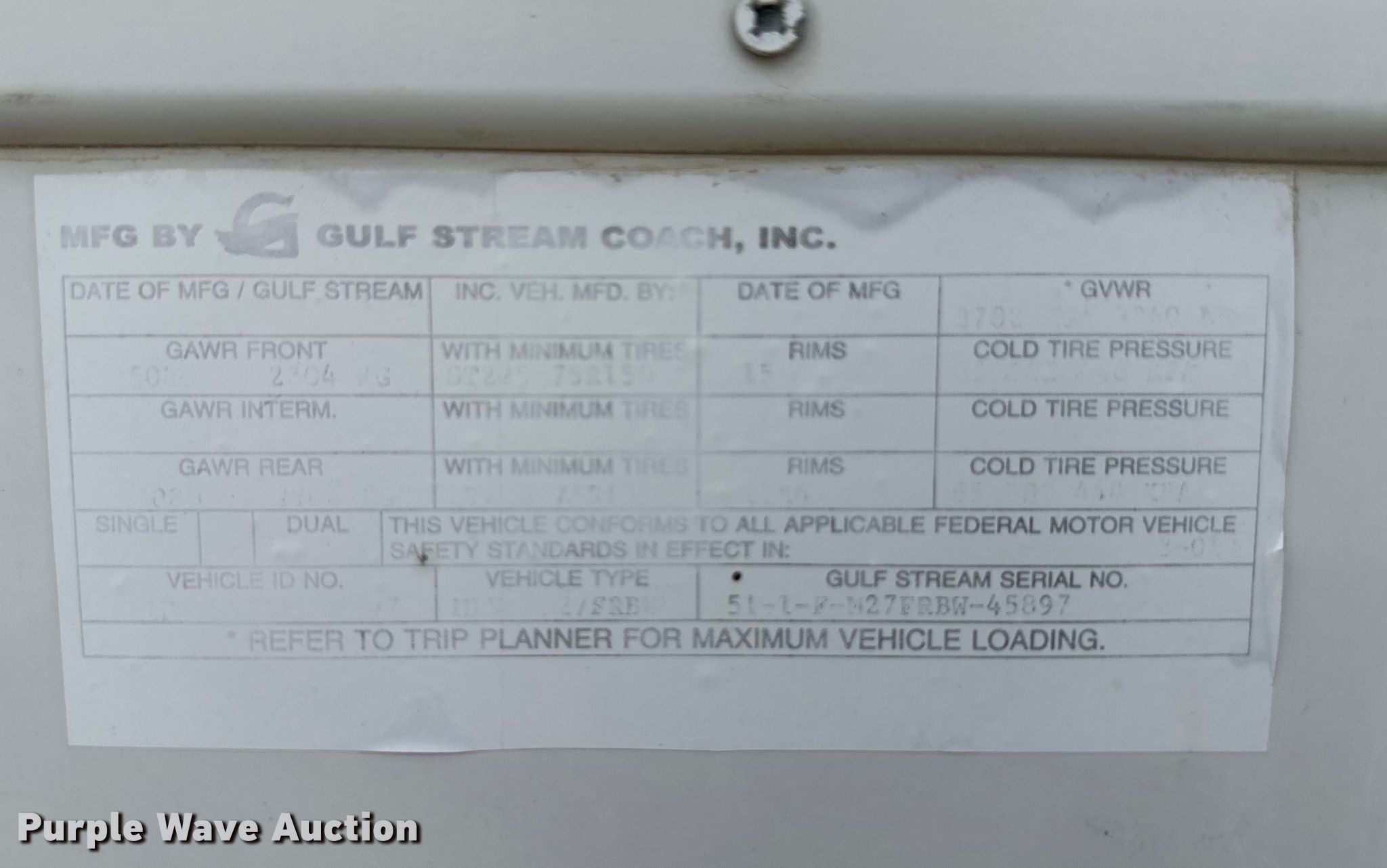 Purple Wave is selling a used RV or Camper in Kansas. This item is a 2001 Gulf Stream camper with the following: Camper length: 27', VIN: 1NL1NFM2311045897