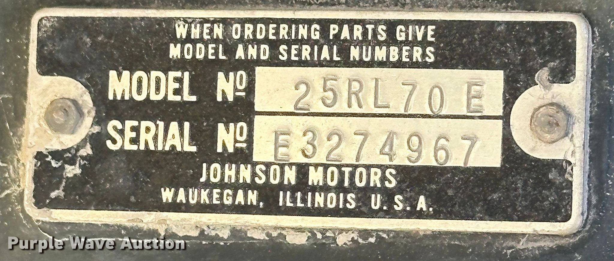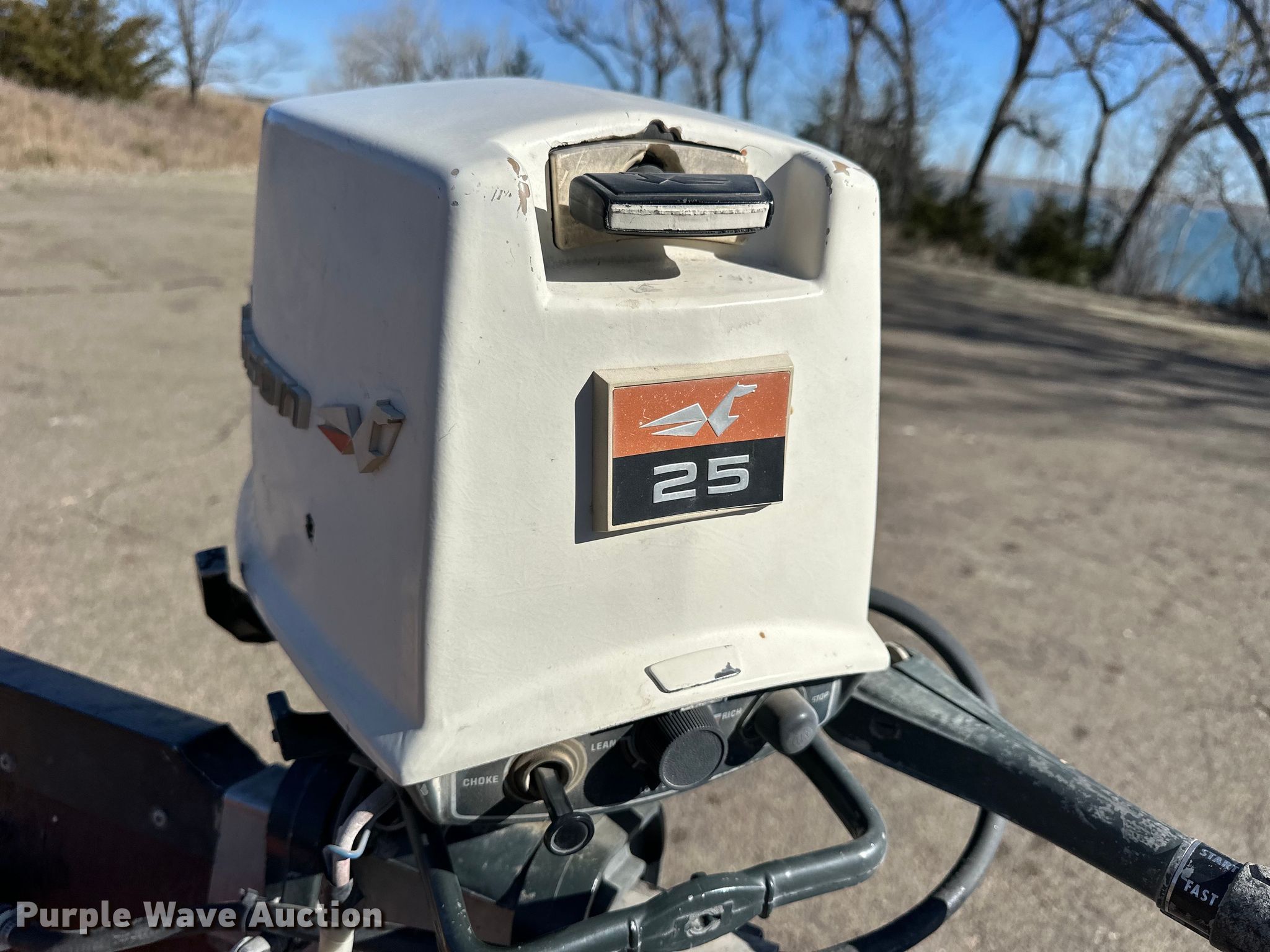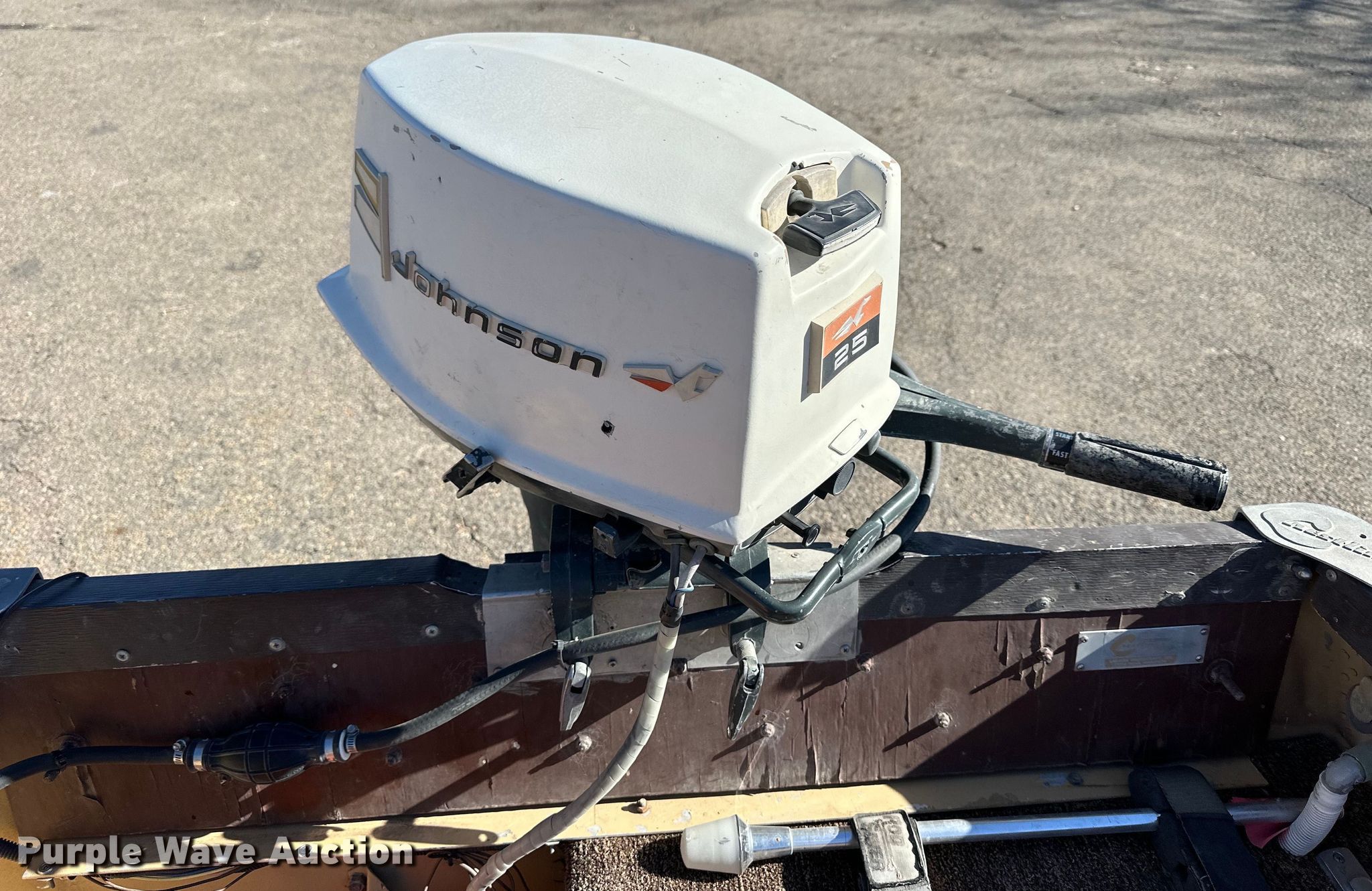 1958 Crestliner boat. Hours: Unknown, Length: 15', Hull ID: X3438. Engine Engine type: Outboard, Johnson 25, Cylinders: 2, Fuel type: Gas, HP: 25, Outdrive Make: Johnson, Model: 25RL70E, Serial: E3274967. Operators station Capacity, Depth finder: Lowrance Elite 5. Features Trolling motor: Motor Guide 55 Volts: 12. Trailer 1990 EZ-Loader, VIN: BFFL5IJAG990, Overall length: 18', GVWR: 3,500 lbs, Ball hitch size: 2", Axles: Single, Tire size: 175/80R13. Transfer of ownership documentation will be a bill of sale. Ransom, KS 67572