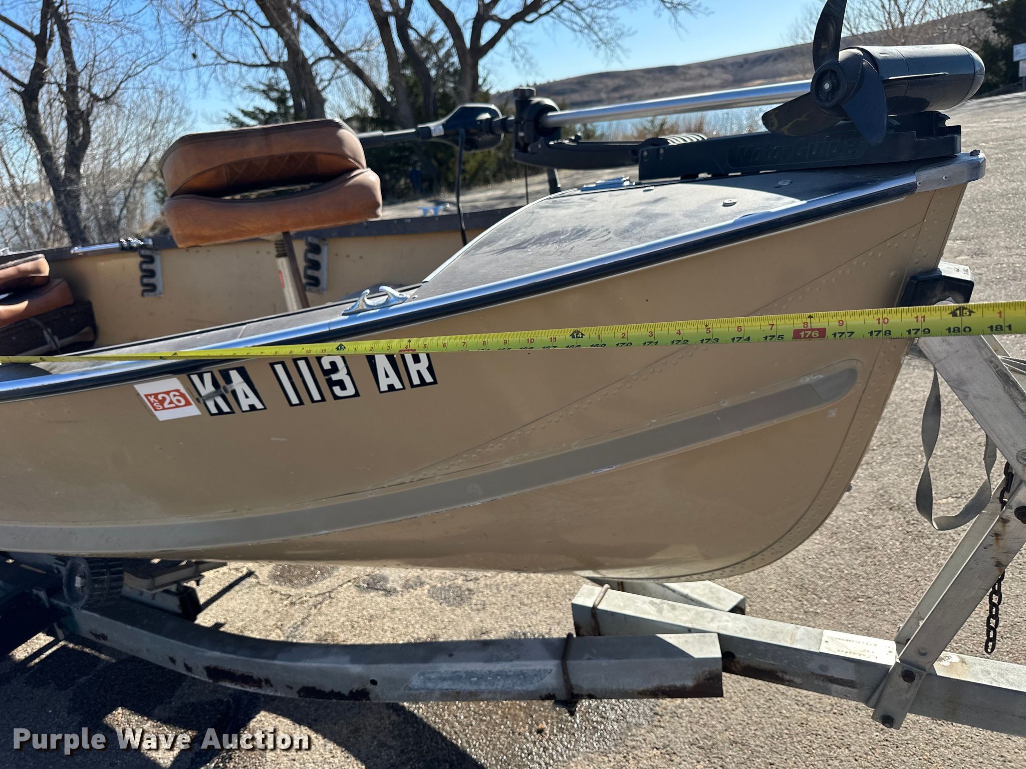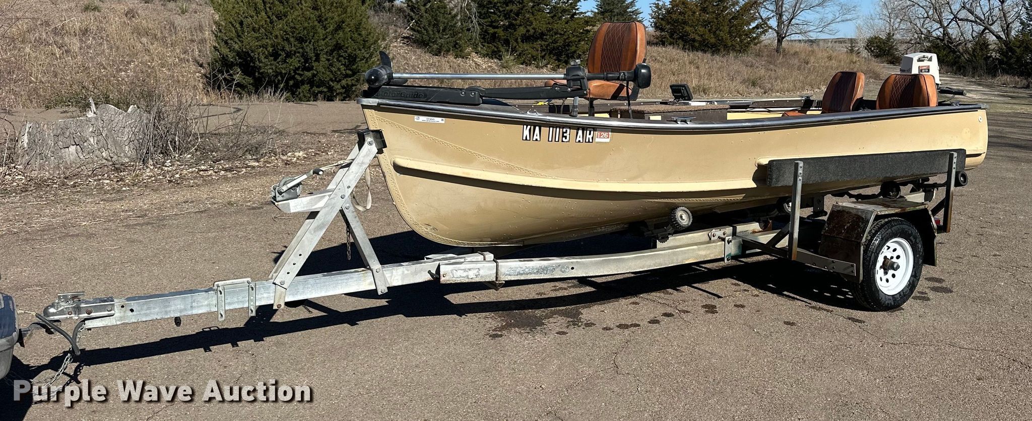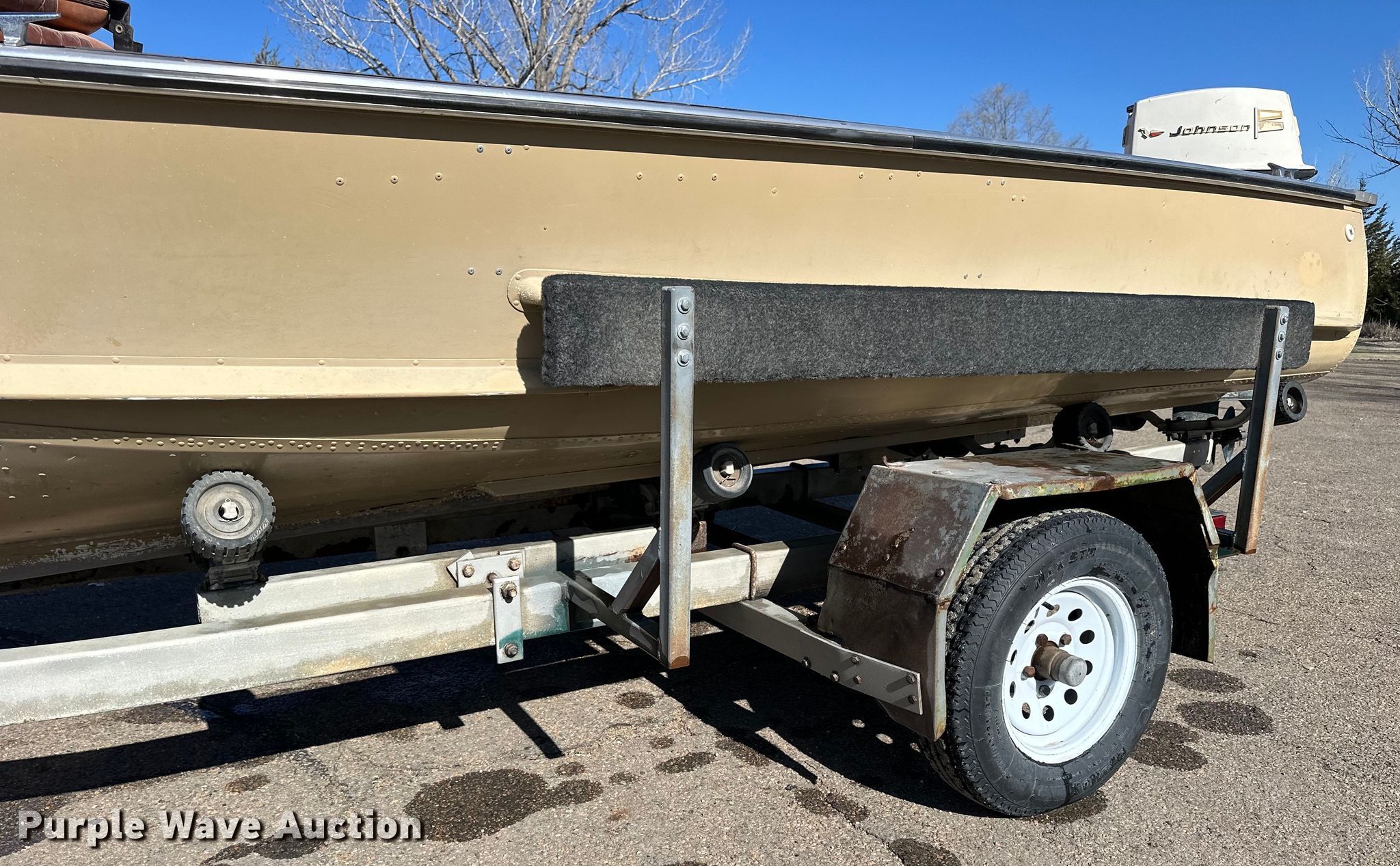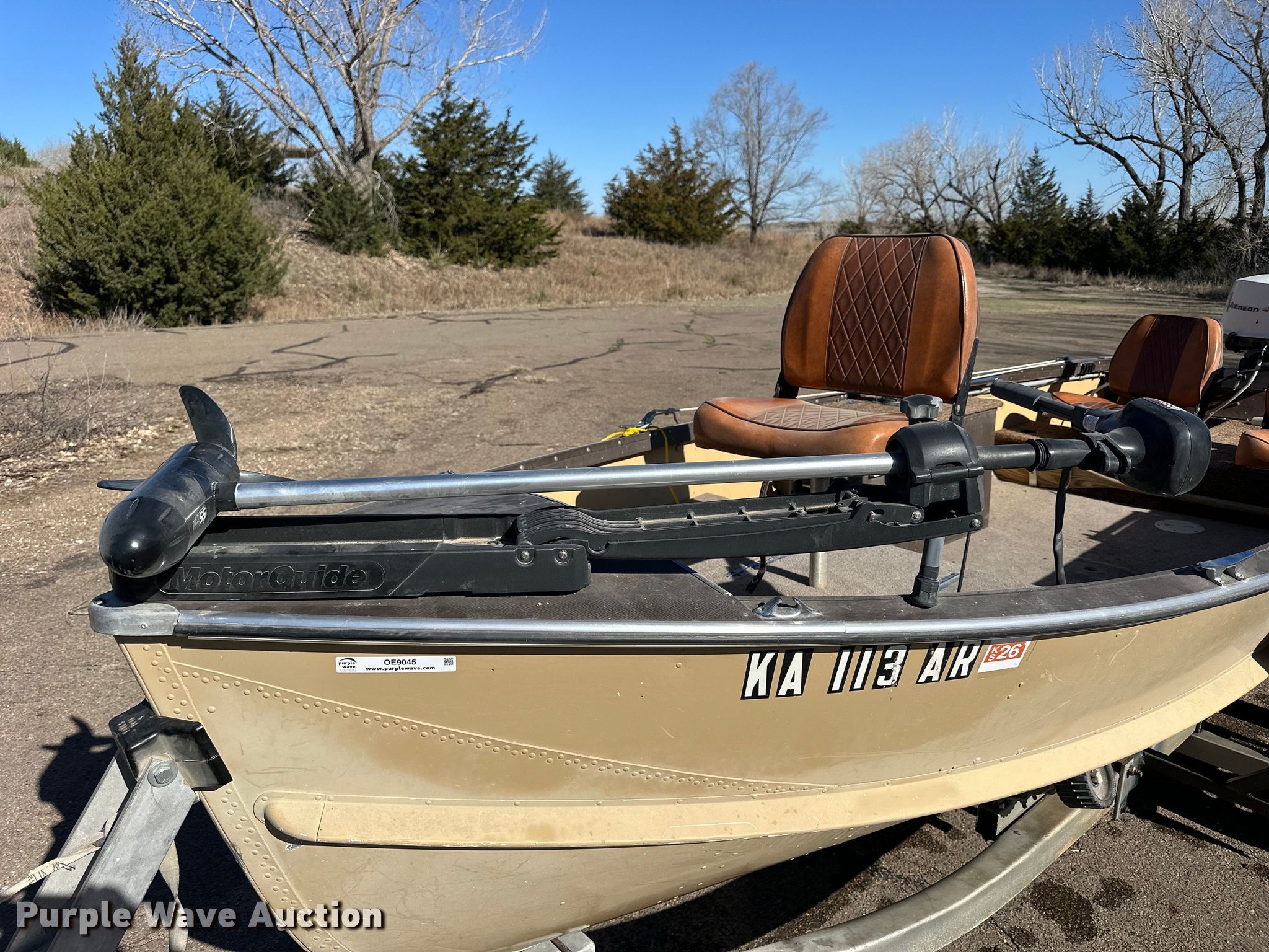1958 Crestliner boat. Hours: Unknown, Length: 15', Hull ID: X3438. Engine Engine type: Outboard, Johnson 25, Cylinders: 2, Fuel type: Gas, HP: 25, Outdrive Make: Johnson, Model: 25RL70E, Serial: E3274967. Operators station Capacity, Depth finder: Lowrance Elite 5. Features Trolling motor: Motor Guide 55 Volts: 12. Trailer 1990 EZ-Loader, VIN: BFFL5IJAG990, Overall length: 18', GVWR: 3,500 lbs, Ball hitch size: 2", Axles: Single, Tire size: 175/80R13. Transfer of ownership documentation will be a bill of sale. Ransom, KS 67572