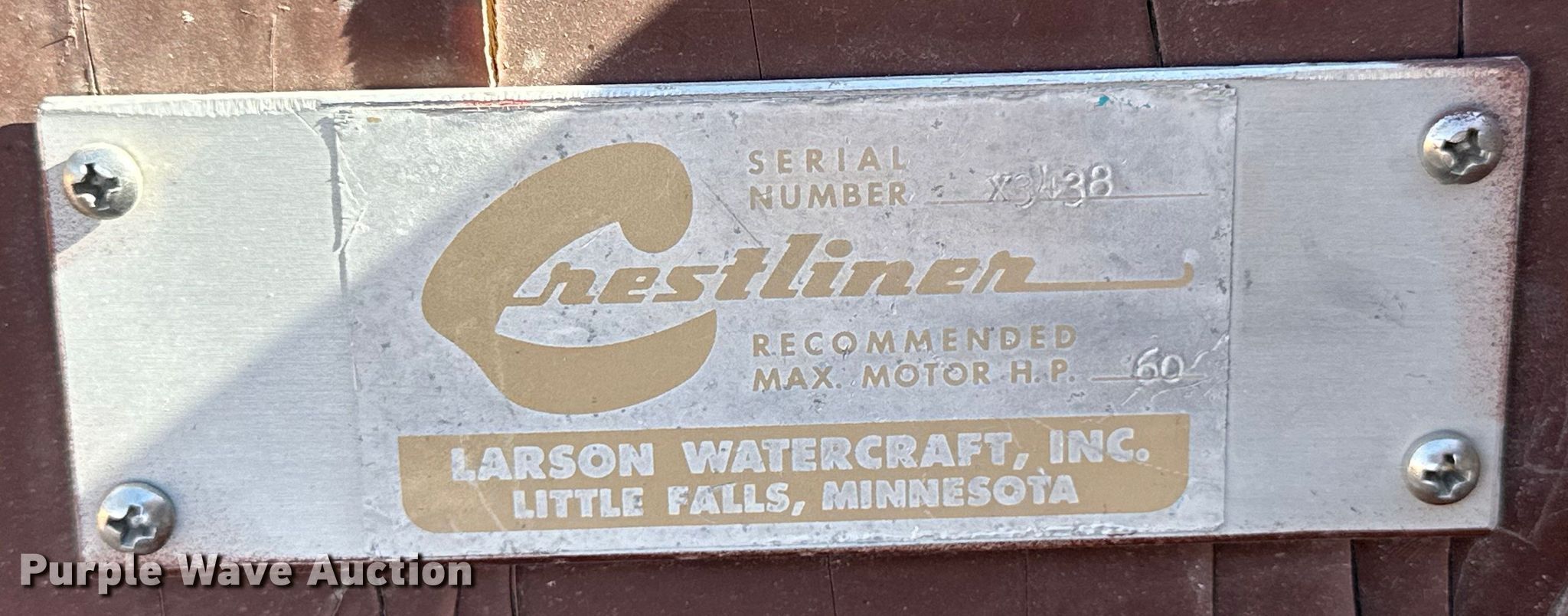 Purple Wave is selling a used Boat in Kansas. This item is a 1958 Crestliner boat with the following: Hours: Unknown, Length: 15', Hull ID: X3438