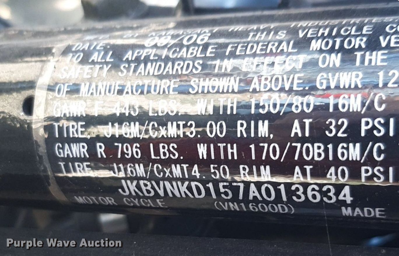 Purple Wave is selling a used Motorcycle in Oklahoma. This item is a 2007 Kawasaki Vulcan Nomad motorcycle with the following: Miles: 10,359 on odometer, VIN: JKBVNKD157A013634