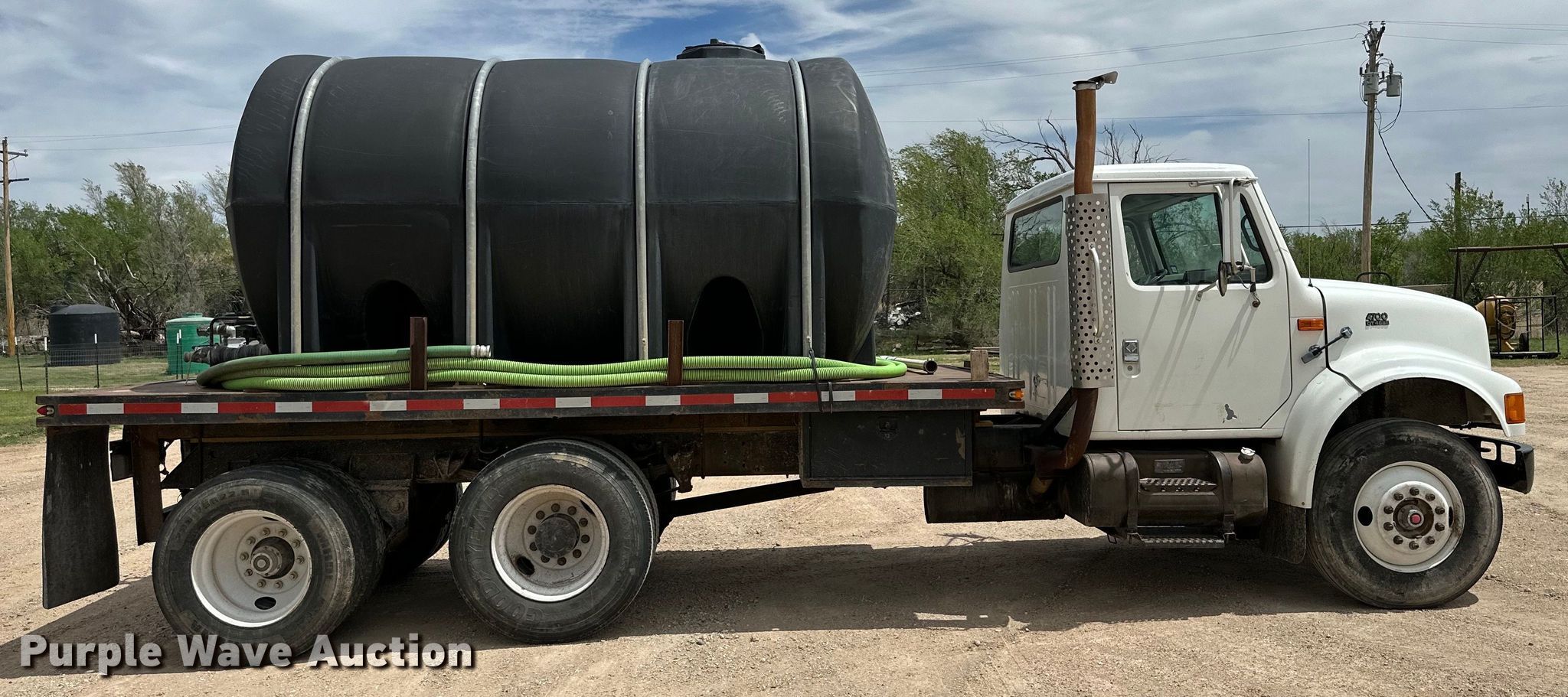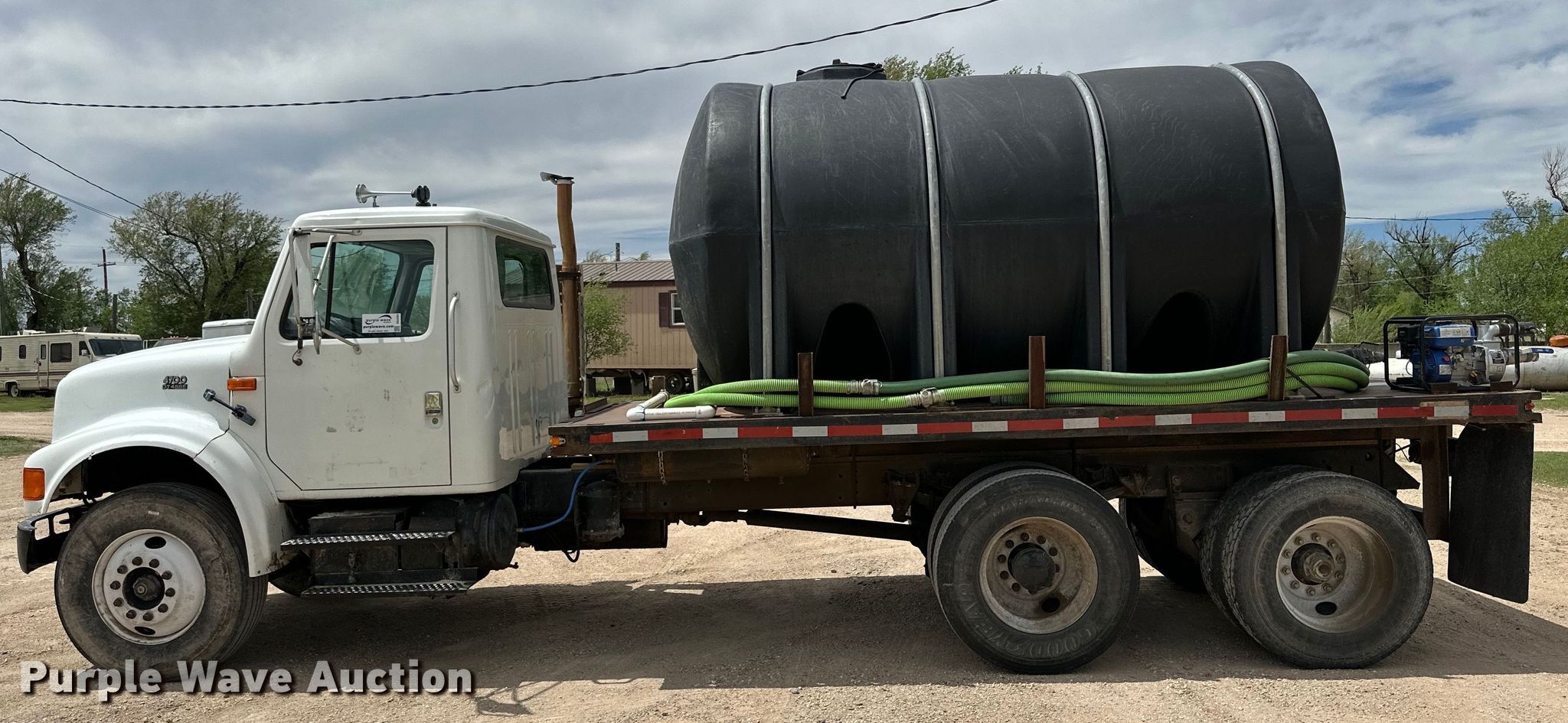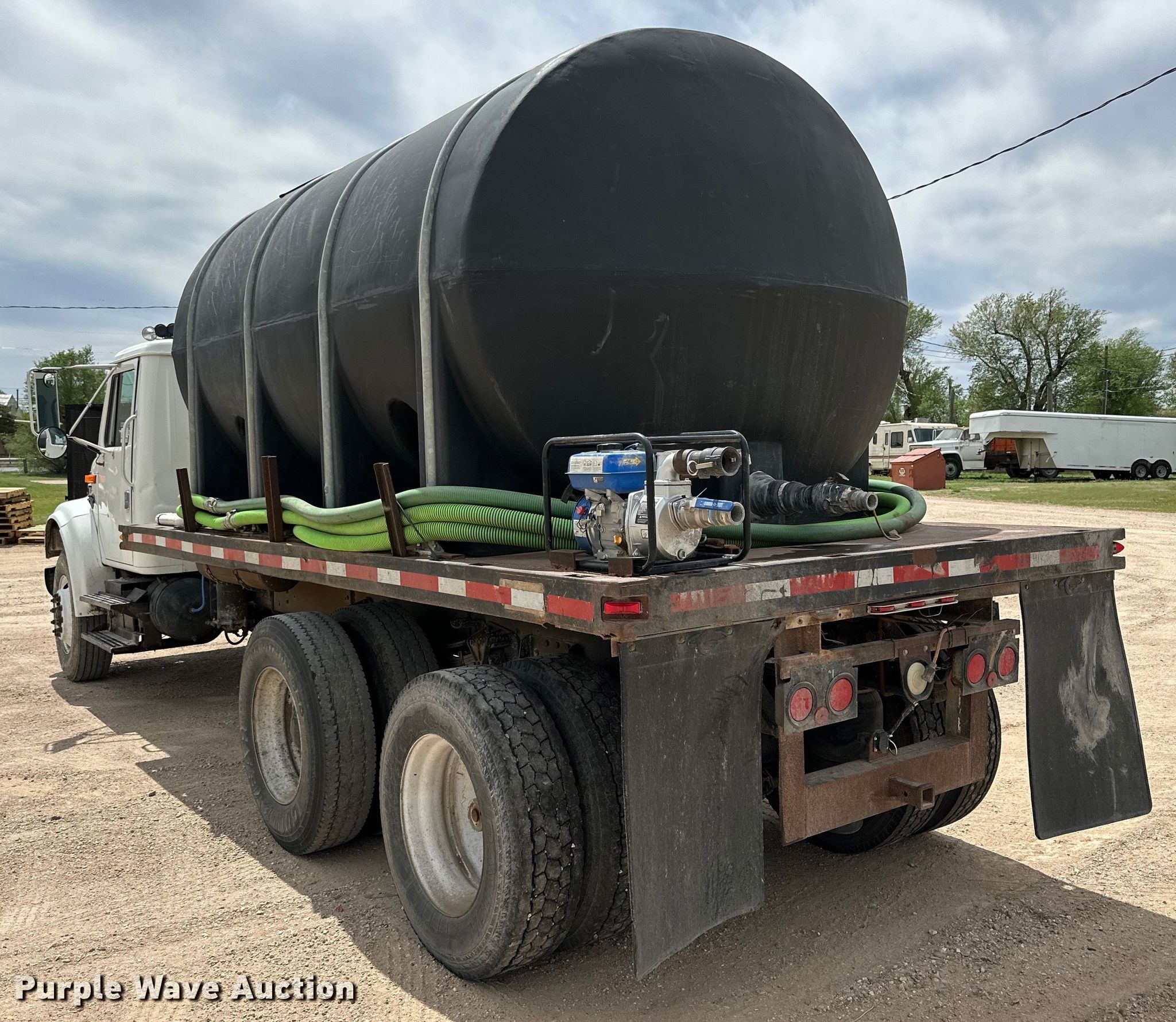 2000 International 4700 flatbed truck. Miles: 138,330 on odometer, Hours: 6,662 on meter, VIN: 1HTSCAAN4YH255962. Engine Displacement: 7.6L, Cylinders: 6, Fuel type: Diesel. Transmission Automatic. Chassis Axles: Tandem, Tag axle, Suspension: Spring, Brakes: Air. Interior AC, Heat, Heated mirrors, Cruise control. Features Flatbed 16' 6" L x 96" W, Tank Capacity: 3,135 gallons, Top fill, Rear outlet: 3", Pump Duromax DH212, kW: 4.3, GPM: 158, Outlet: 2". Tires Size: 11R22.5. Notes Oil leak. Texas title. Title distribution may be delayed up to 30 days from verification of funds. Reed's Pumping Service. 12059 E Frederick Avenue. Pampa, TX 79066