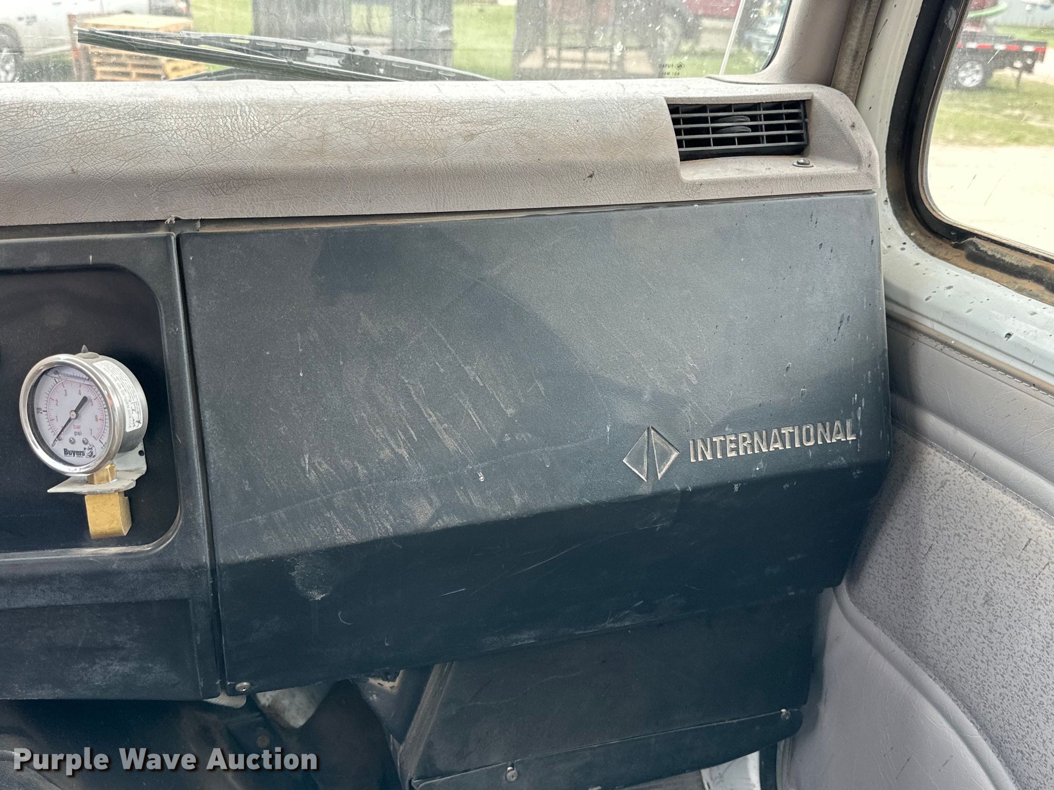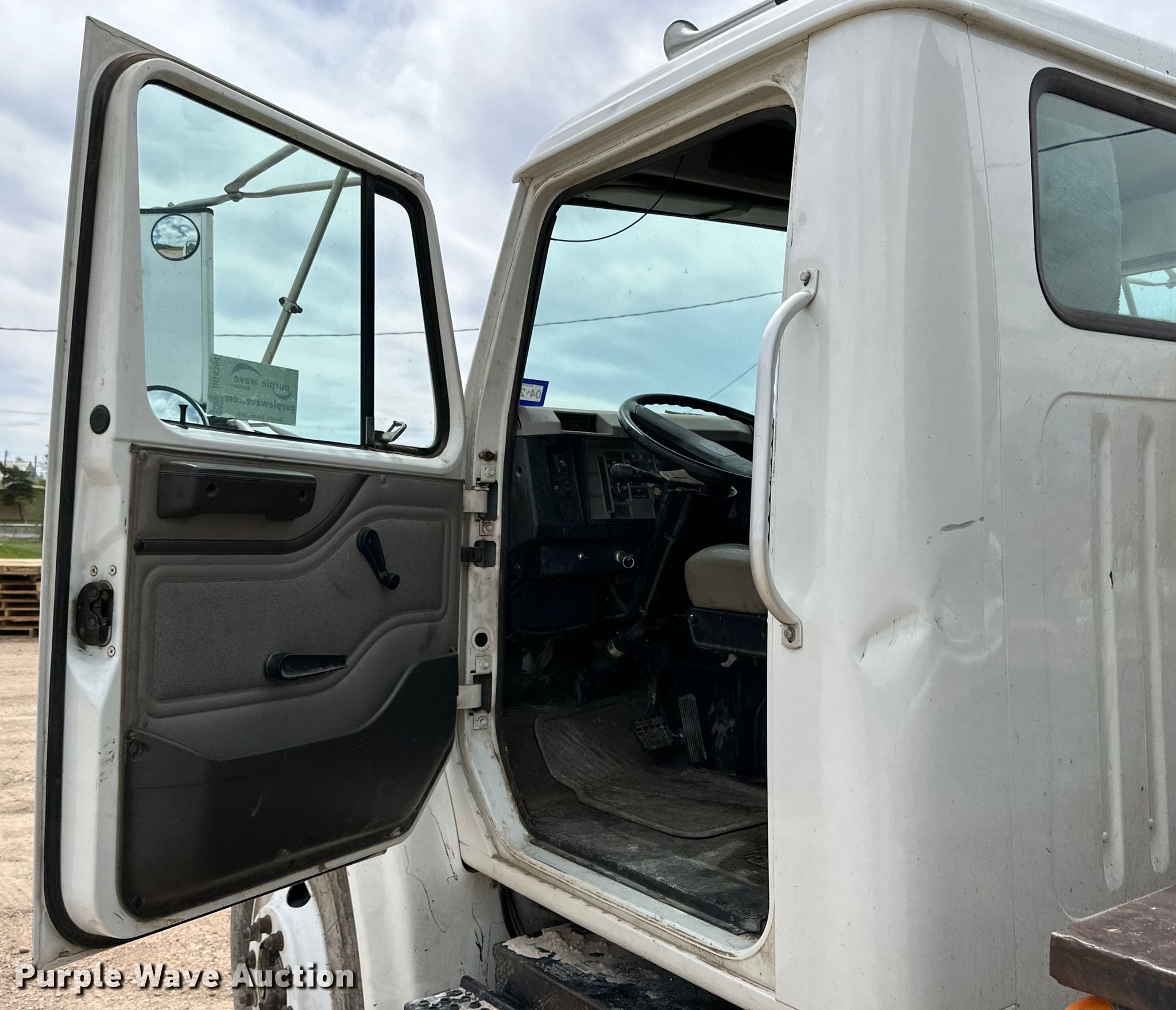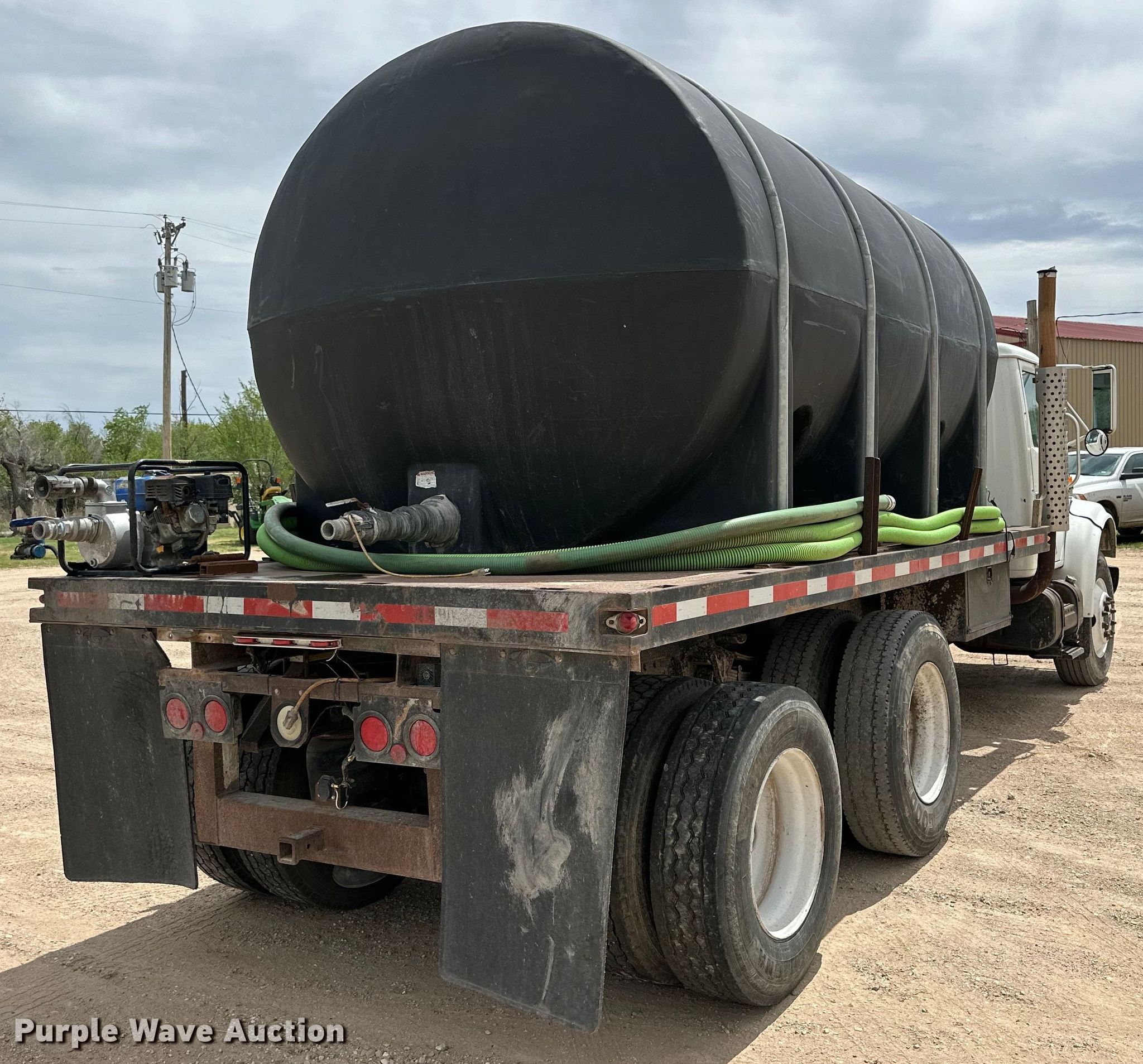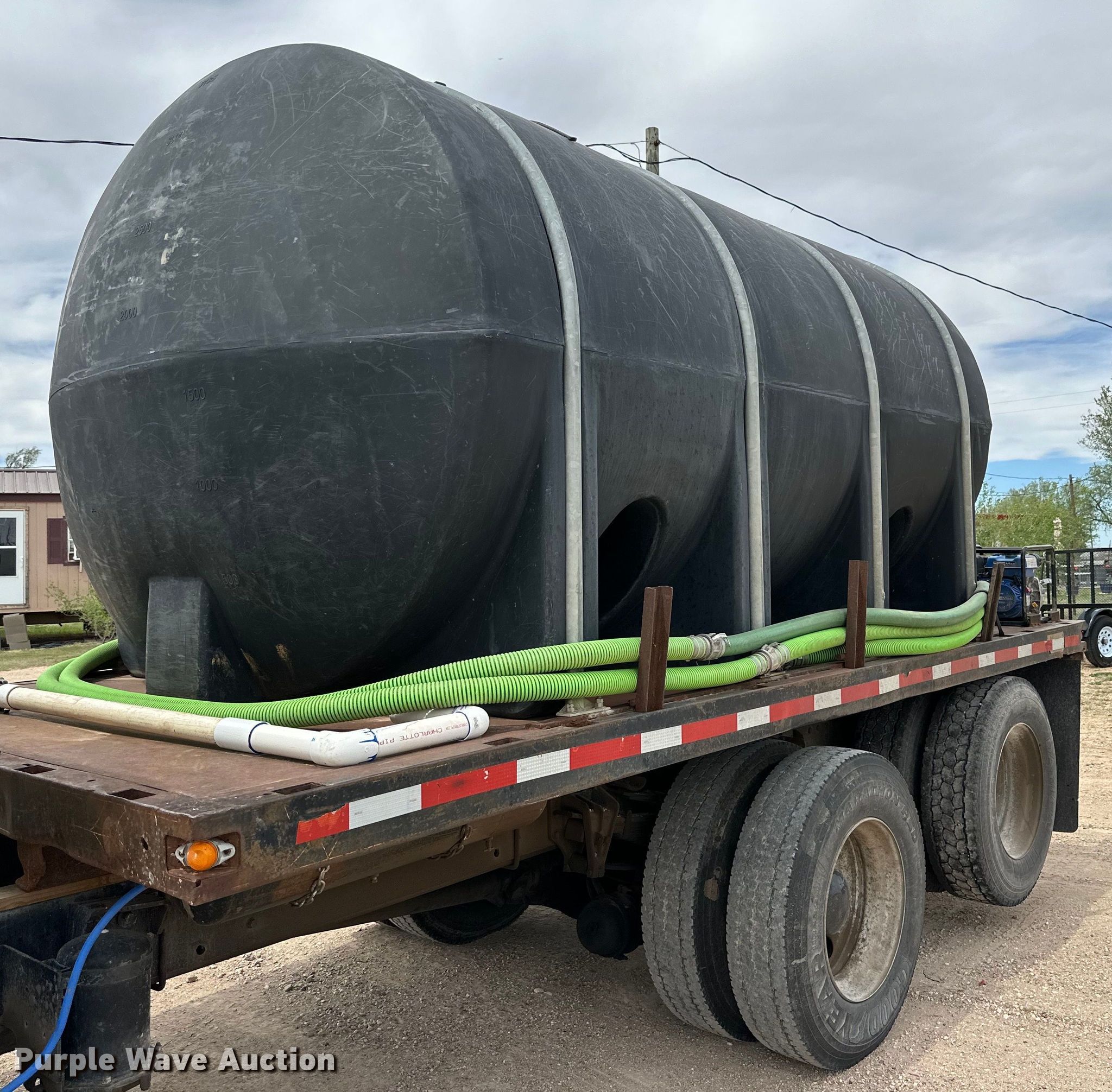 2000 International 4700 flatbed truck. Miles: 138,330 on odometer, Hours: 6,662 on meter, VIN: 1HTSCAAN4YH255962. Engine Displacement: 7.6L, Cylinders: 6, Fuel type: Diesel. Transmission Automatic. Chassis Axles: Tandem, Tag axle, Suspension: Spring, Brakes: Air. Interior AC, Heat, Heated mirrors, Cruise control. Features Flatbed 16' 6" L x 96" W, Tank Capacity: 3,135 gallons, Top fill, Rear outlet: 3", Pump Duromax DH212, kW: 4.3, GPM: 158, Outlet: 2". Tires Size: 11R22.5. Notes Oil leak. Texas title. Title distribution may be delayed up to 30 days from verification of funds. Reed's Pumping Service. 12059 E Frederick Avenue. Pampa, TX 79066