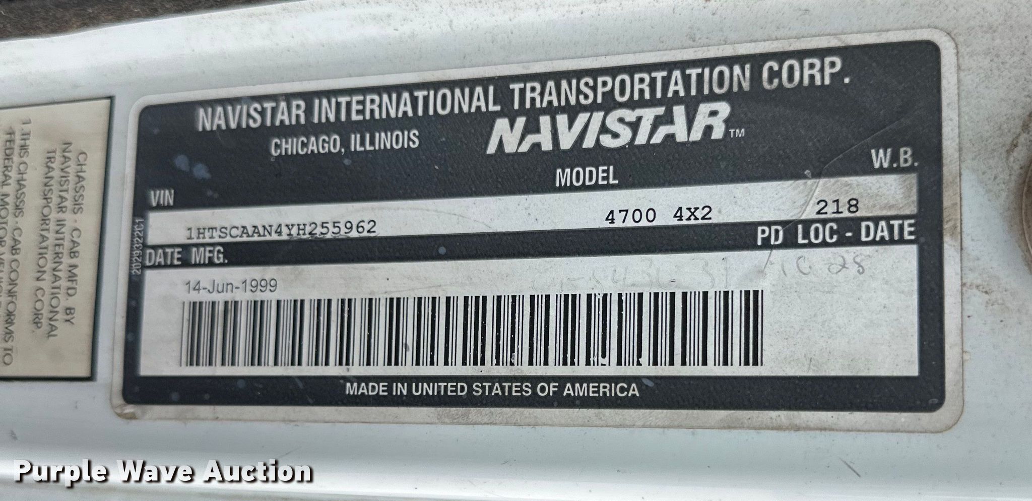 Purple Wave is selling a used Flat Bed Truck in Texas. This item is a 2000 International 4700 flatbed truck with the following: Miles: 138,330 on odometer, Hours: 6,662 on meter, VIN: 1HTSCAAN4YH255962