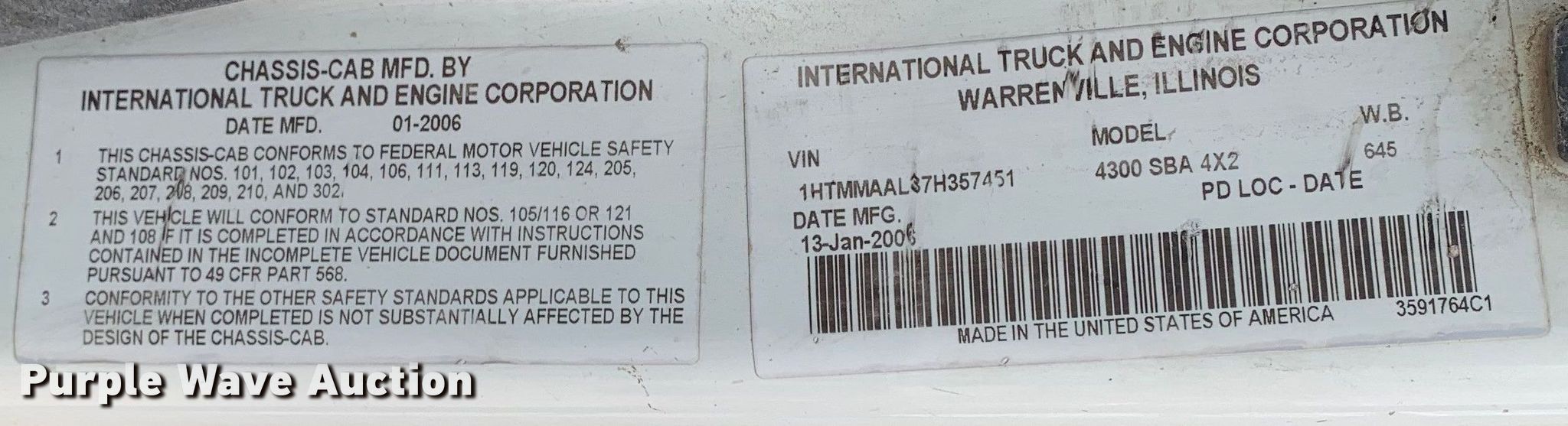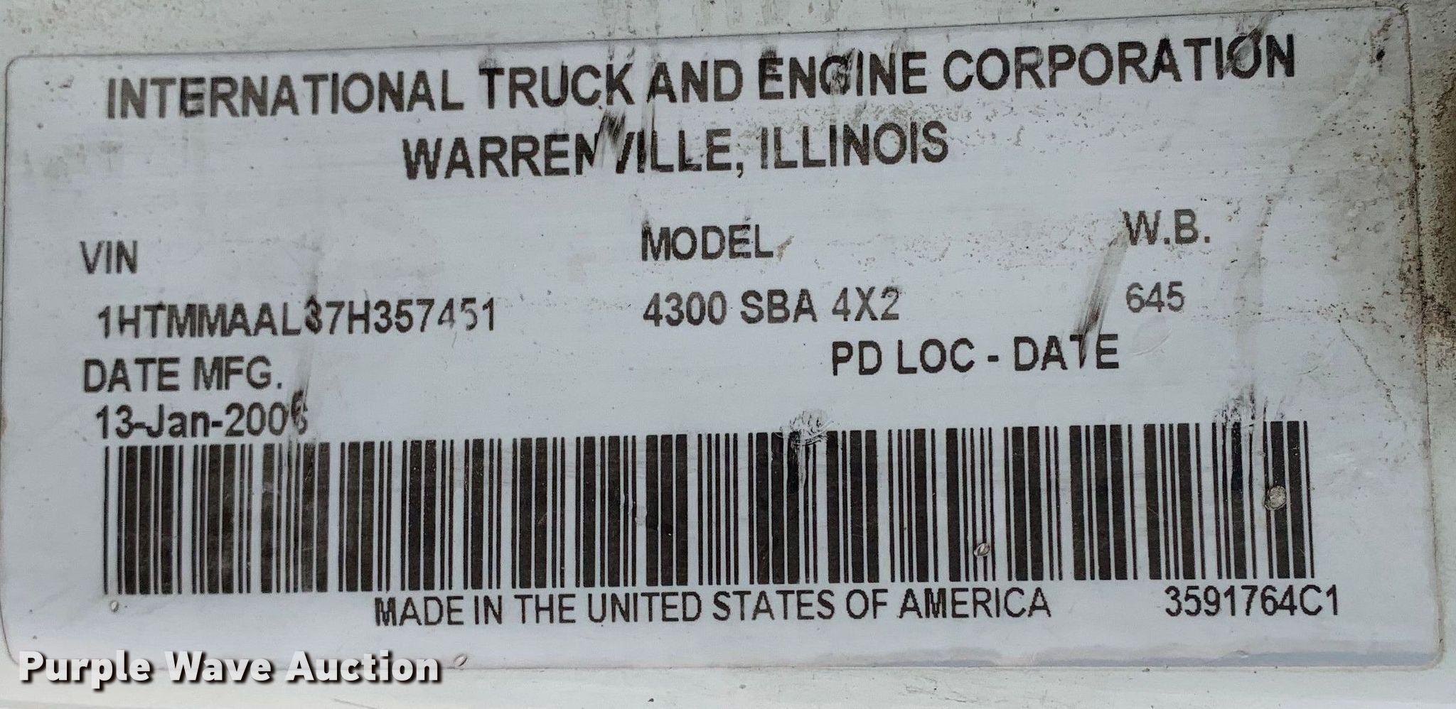 Purple Wave is selling a used Bucket Truck in Texas. This item is a 2007 International 4300 bucket truck with the following: Miles: 230,977 on odometer, Hours: 12,830 on meter, VIN: 1HTMMAAL37H357451