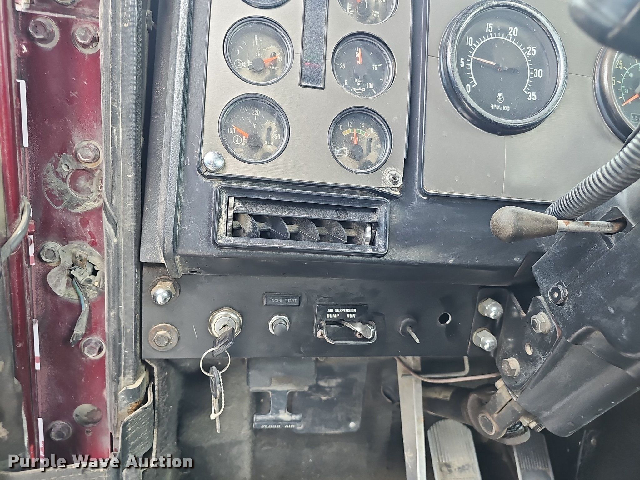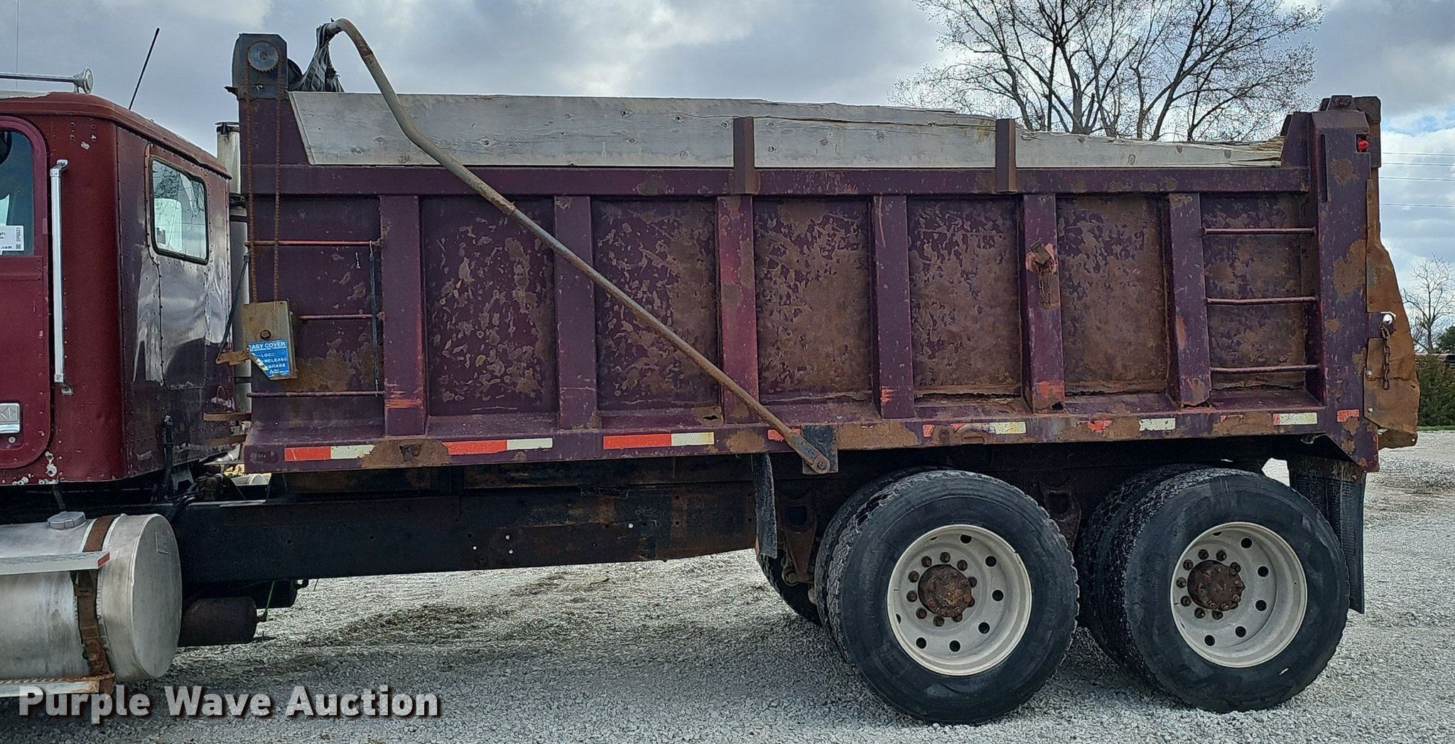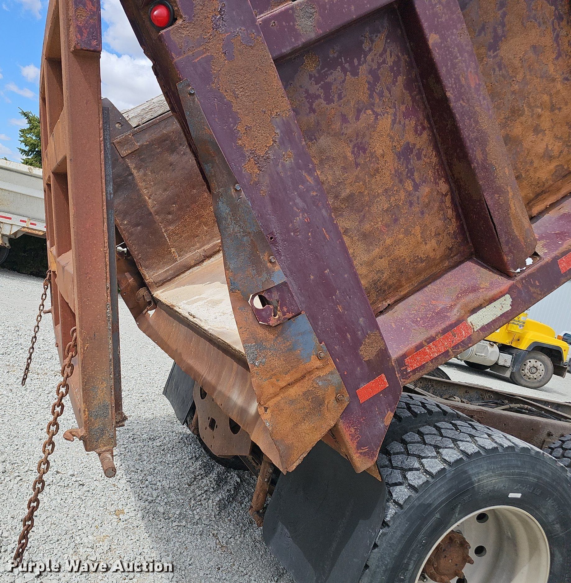 1991 International 9400 dump truck. Miles: 254,307 on odometer, VIN: 2HSFHX6R1MC044600. Engine Caterpillar, Displacement: 14.6L, Cylinders: 6, Fuel type: Diesel, Engine brake. Transmission Eaton Fuller Roadranger, Manual, Speed: 13. Chassis Axles: Tandem, Differential lock: Inter-axle, Suspension: Air Dump valves, Brakes: Air, PTO, Wheelbase: 238". Interior AC, Heat. Features Dump bed 16' L x 96" W, Side height: 43", Side board height: 11", Bed type: Steel, Roll tarp, Ram: Single, End gate: Air operated. Tires Front: 315/80R22.5, Rear: 11R24.5. Notes Rear glass cracked, Possible gate issues, stuck. Iowa title. Title distribution may be delayed up to 14 days from verification of funds. Chris Heuton Earthmoving LLC. 60733 690th Street. Wiota, IA 50274
