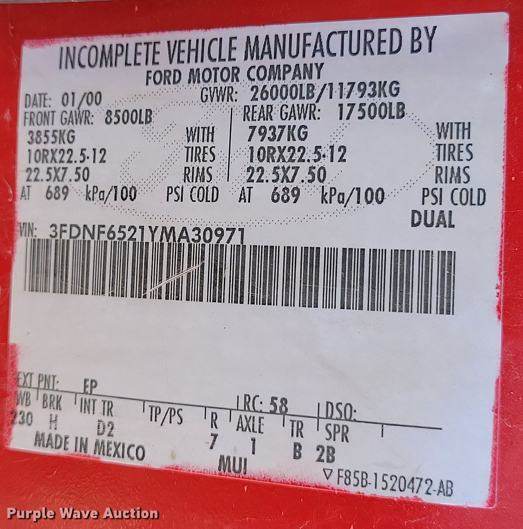 - VIN: 3FDNF6521YMA30971