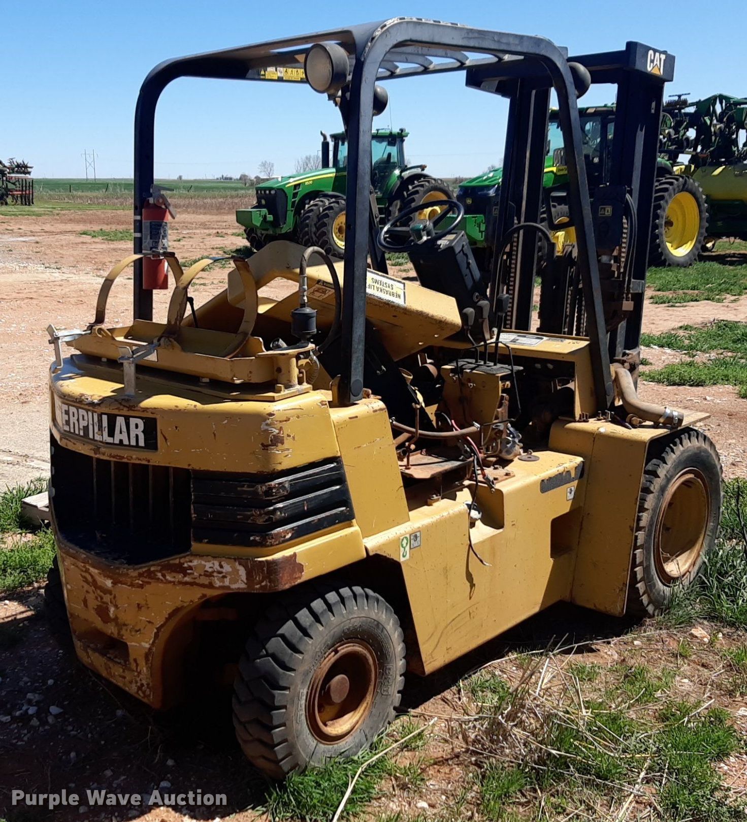 Purple Wave is selling a used Warehouse Forklift in Oklahoma. This item is a 1993 Caterpillar V50E forklift with the following: Hours: 7,300 on meter, Serial: 5NG01292