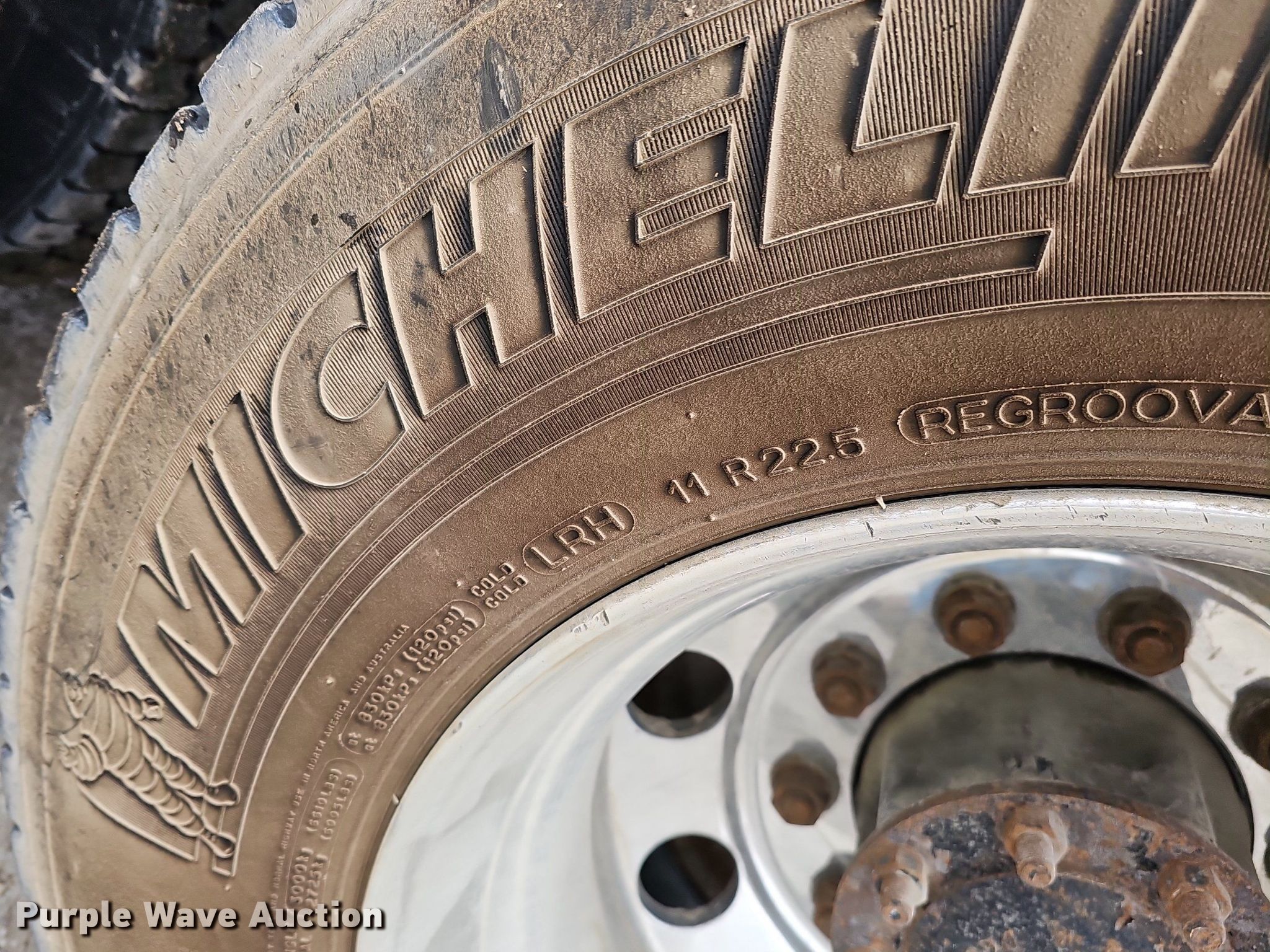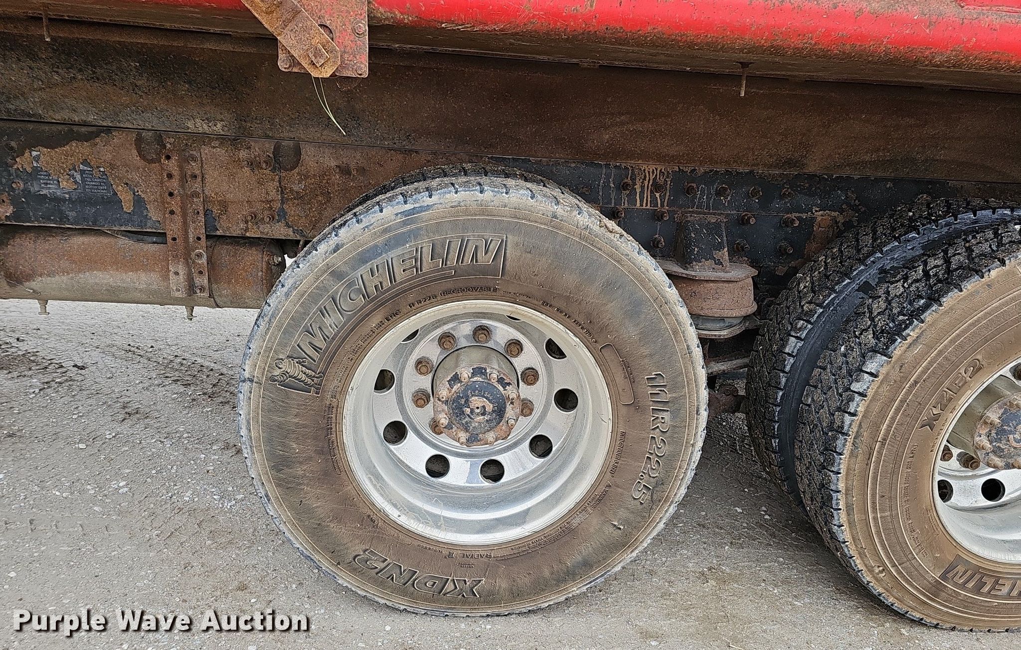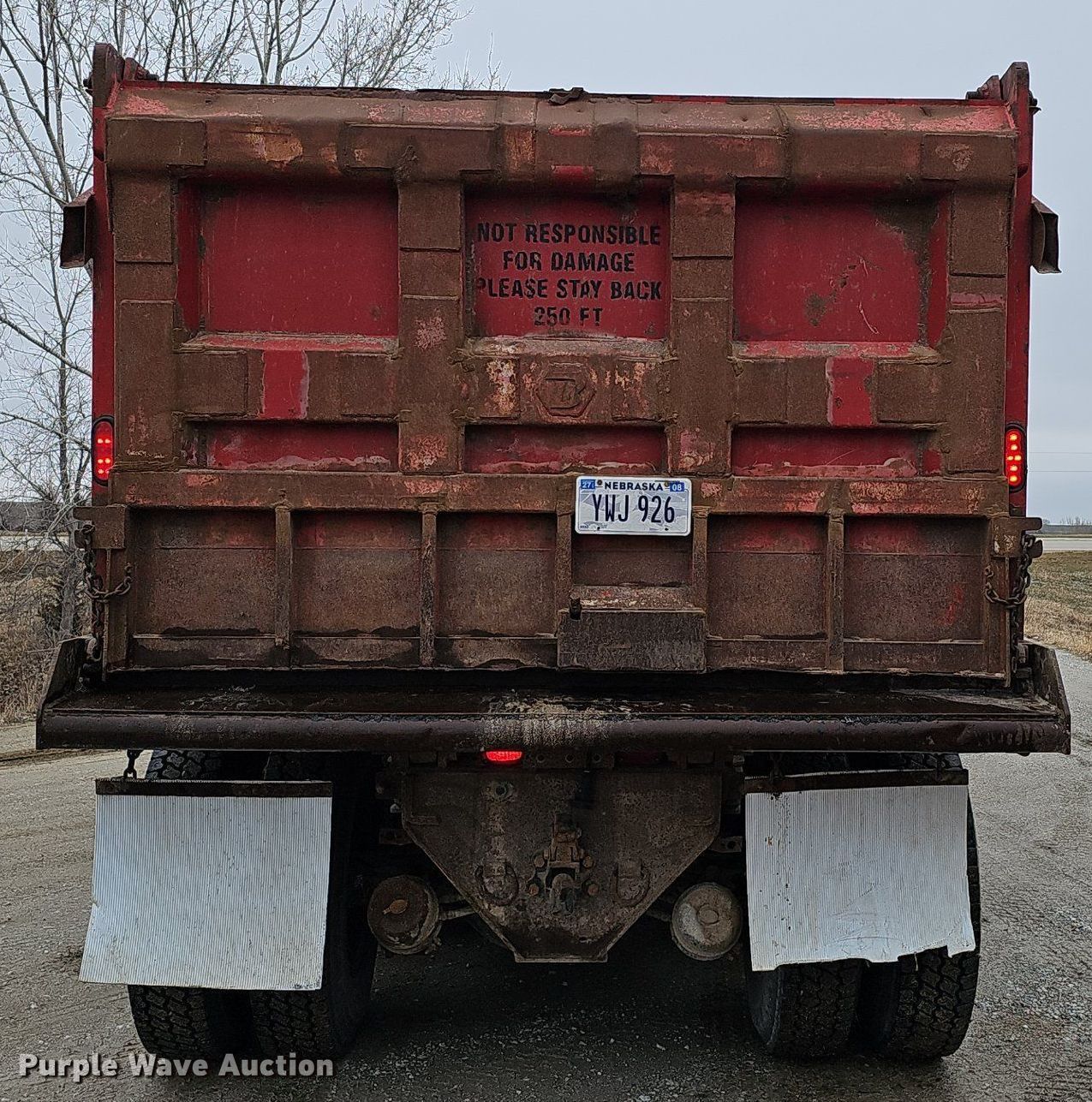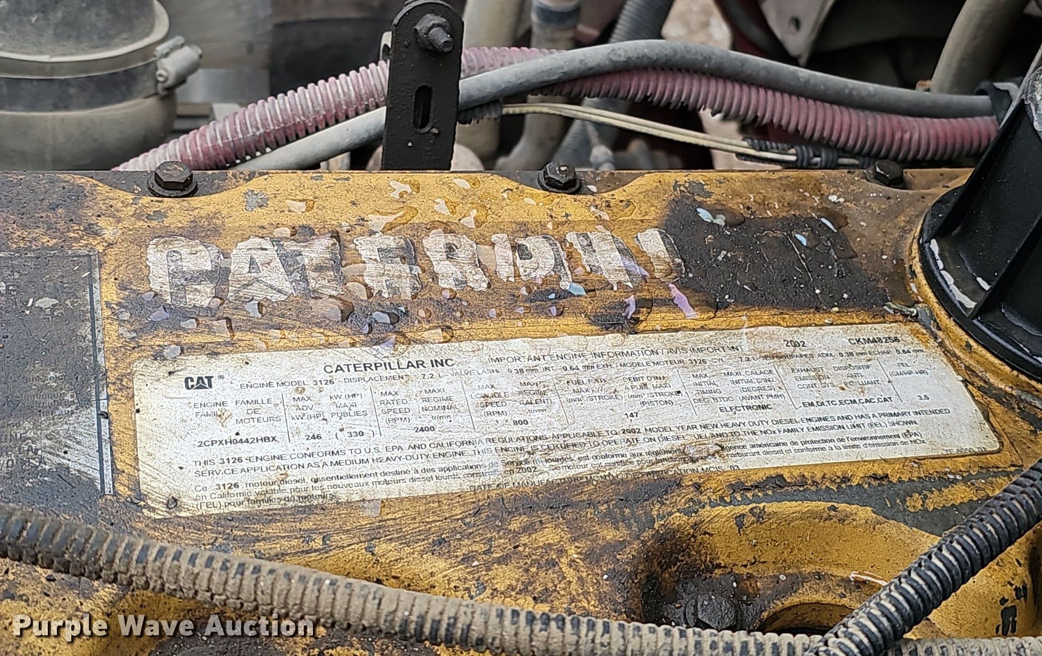 2003 Freightliner FL80 dump truck. Miles: 435,352 on odometer, Hours: 6,503 on meter, VIN: 1FVHBXAK93HK47789. Engine Caterpillar 3126, Serial: CKM48258, Displacement: 7.2L, Cylinders: 6, Fuel type: Diesel, HP: 330, kW: 246. Transmission Eaton Fuller 8LL, Manual, Speed: 10. Chassis Double frame, Axles: Tandem, Suspension: Spring over walking beam, Brakes: Air, PTO, GVWR: 58,000 lbs FAWR: 18,000 lbs, IAWR: 20,000 lbs, RAWR: 20,000 lbs, Wheelbase: 210". Interior AC, Heat, Heated mirrors, Cruise control, Brake controller. Features Dump bed 16' L x 100" W, Side height: 48", Bed type: Steel, Liner, Roll tarp, Ram: Single, End gate: Air operated. Tires Front: 385/65R22.5, Rear: 11R22.5. Notes Windshield chipped or cracked. Title distribution may be delayed up to 14 days from verification of funds. Muhlbach Iron, LLC. 14305 N 56th St. Lincoln, NE 68514