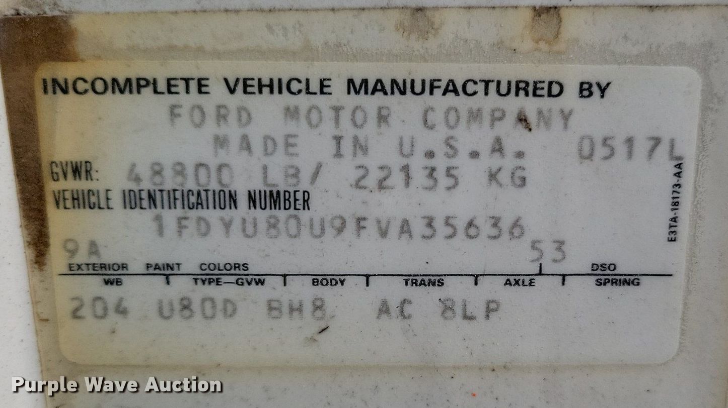 1985 Ford 8000 dump truck. Miles: 117,821 on odometer, VIN: 1FDYU80U9FVA35636. Engine Caterpillar 3208, Displacement: 10.4L, Cylinders: 8, Fuel type: Diesel. Transmission Automatic. Chassis Axles: Tandem, Differential lock: Inter-axle, Suspension: Spring over walking beam, Brakes: Air, PTO, GVWR: 48,800 lbs, Wheelbase: 204". Interior Heat. Features Dump bed 15' L x 96" W, Side height: 34", Side board height: 9", Bed type: Steel, Bed vibrator, Ram: Single, End gate: Manual. Tires Size: 11R22.5. Missouri title. Title distribution may be delayed up to 14 days from verification of funds. EHaras Services & Solutions. Holt, MO 64048