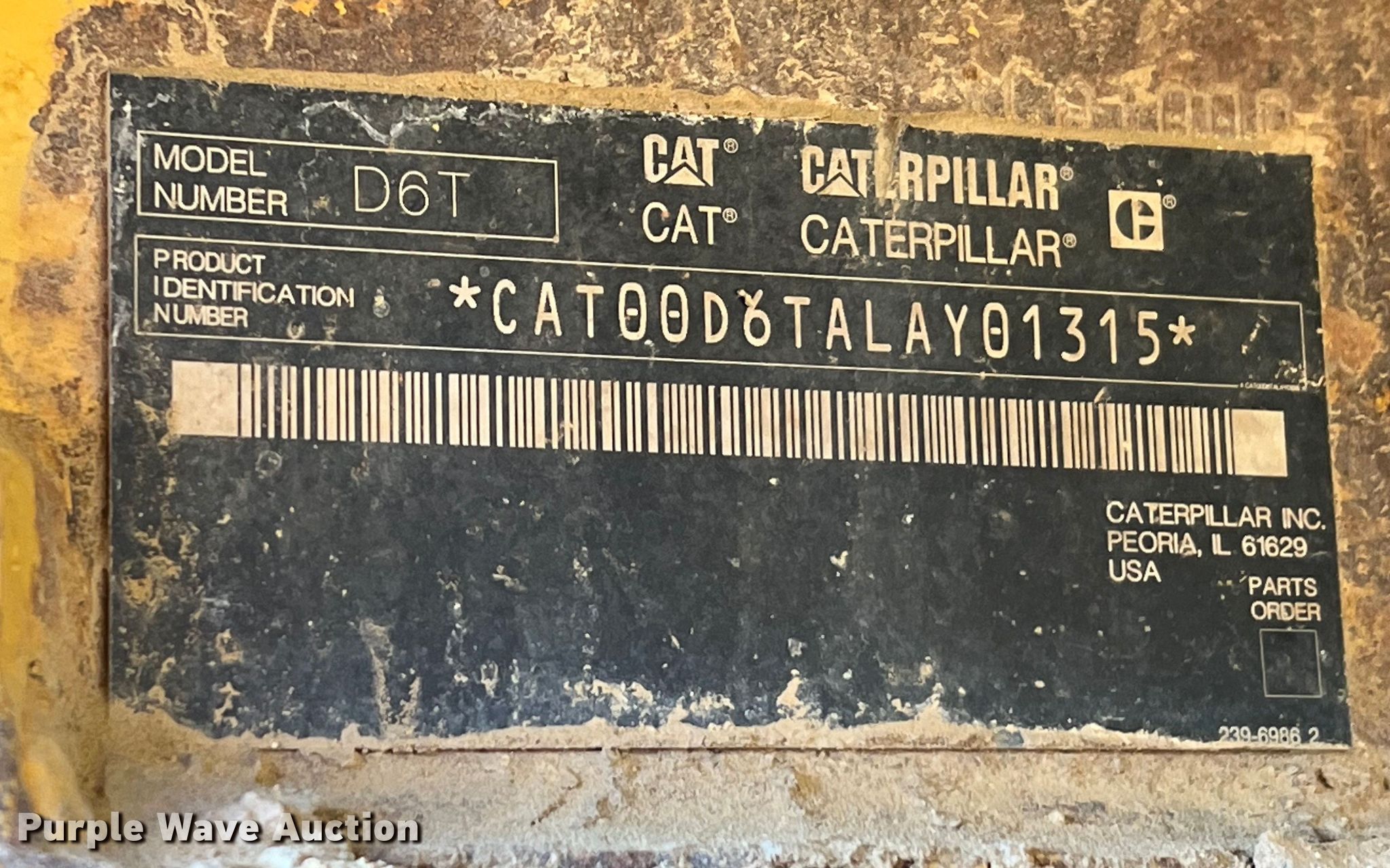 Purple Wave is selling a used Crawler Dozer in Texas. This item is a 2009 Caterpillar D6T XL dozer with the following: Hours: 10,218 on meter, Miles or hours may vary, unit still in use, Serial: CAT00D6TALAY01315