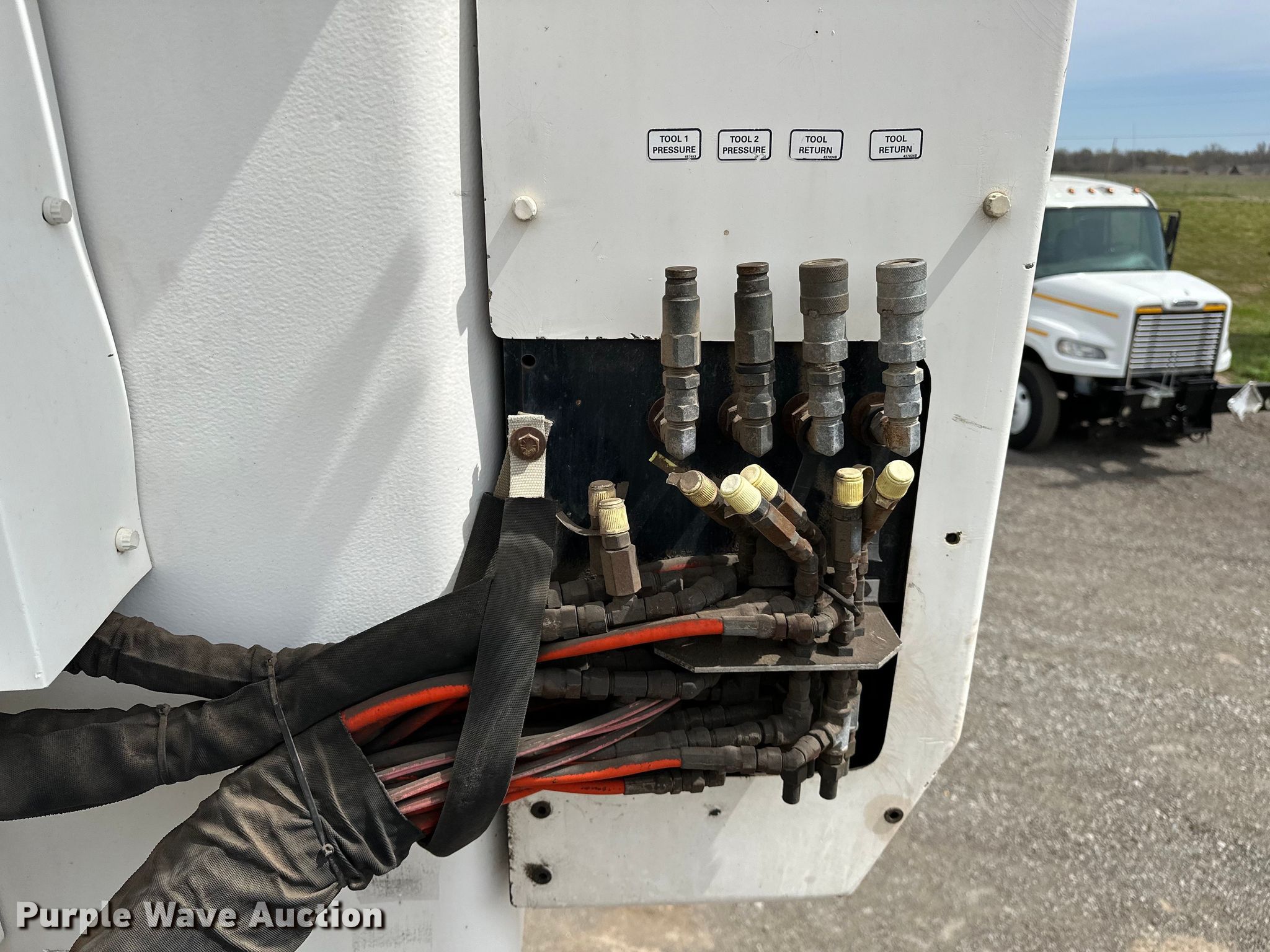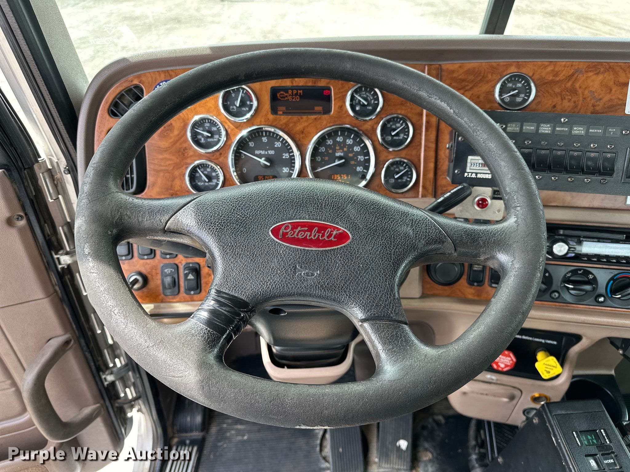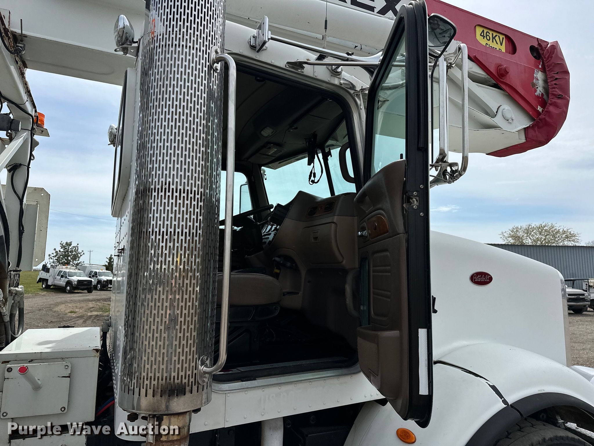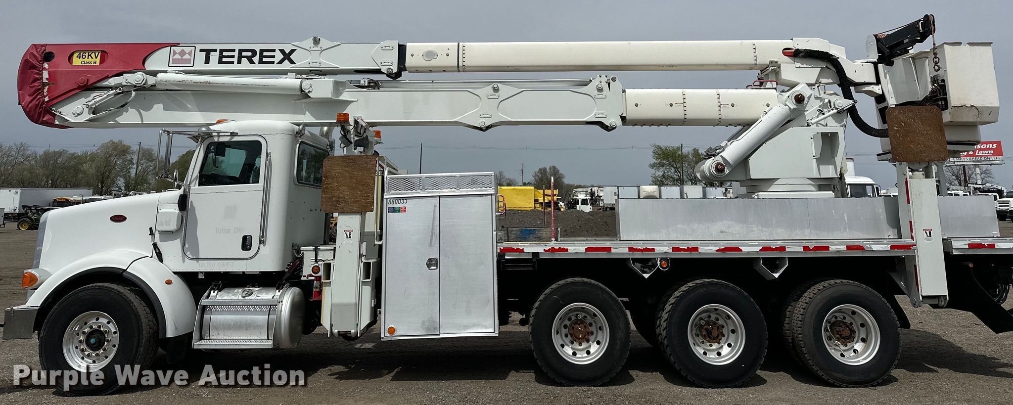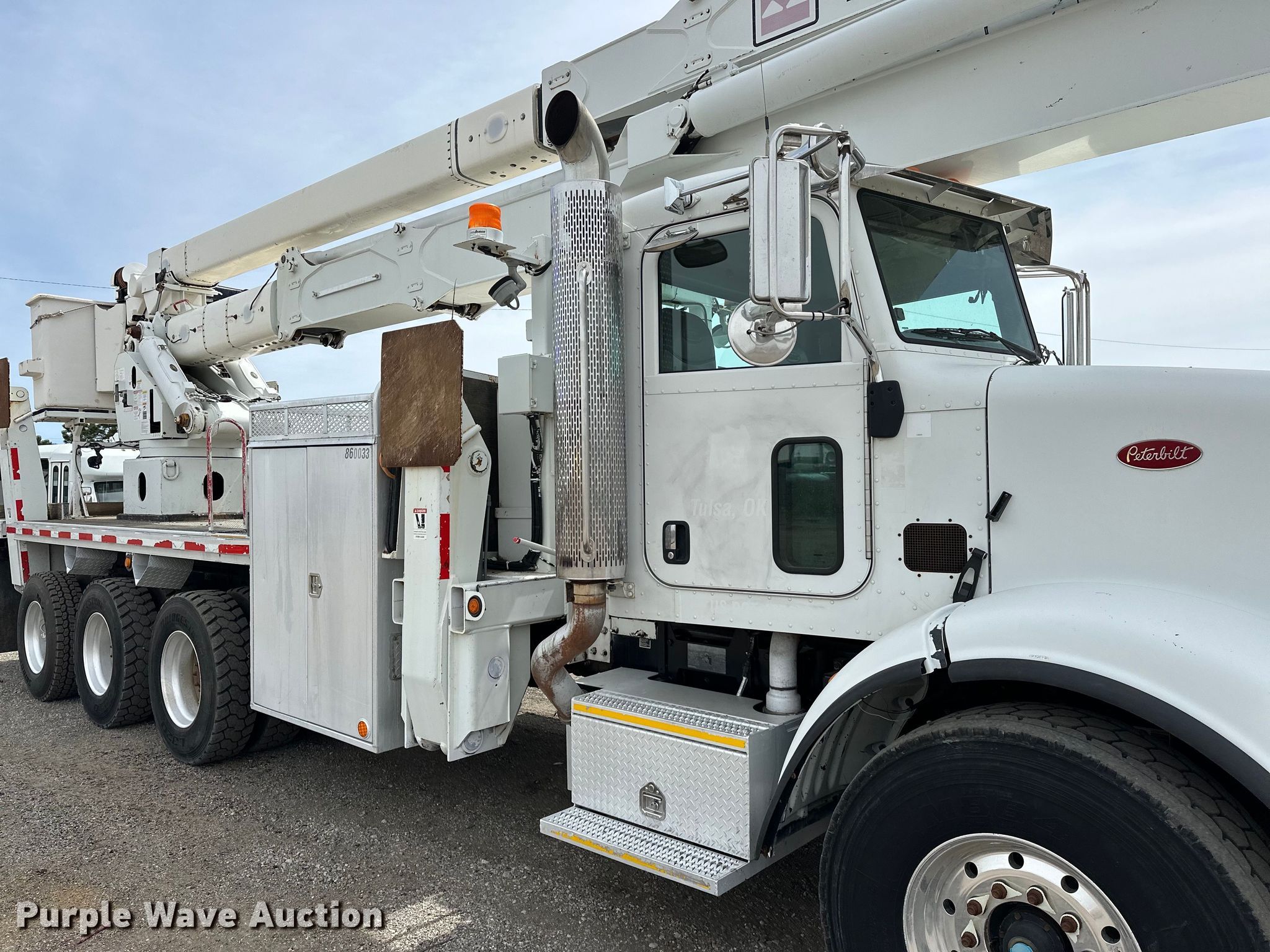 Purple Wave is selling a used Bucket Truck in Oklahoma. This item is a 2009 Peterbilt 365 tri-drive bucket truck with the following: Miles: 135,751 on odometer, Hours: 9,515 on meter, VIN: 1NPSX0EX39D787471