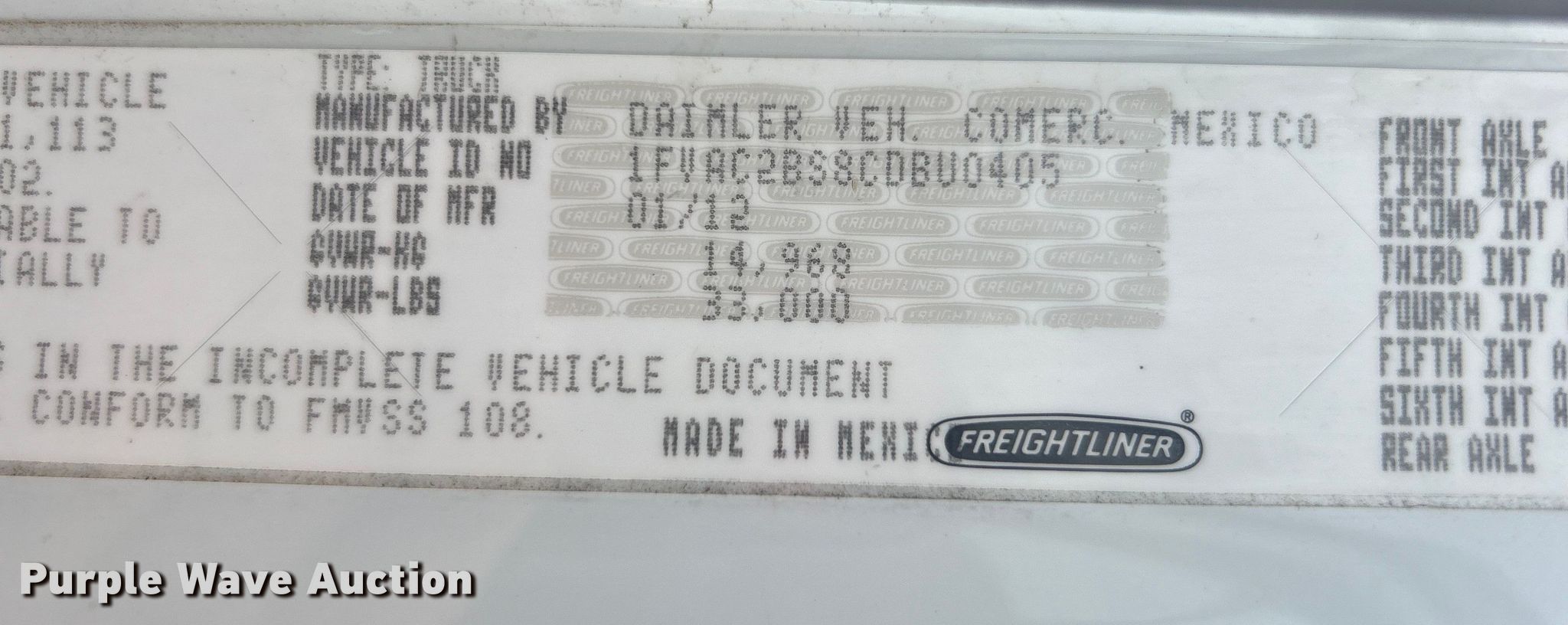 Purple Wave is selling a used Bucket Truck in Oklahoma. This item is a 2012 Freightliner M2 Business Class bucket truck with the following: Miles: 57,833 on odometer, Hours: 2,694 on meter, VIN: 1FVAC2BS8CDBU0405