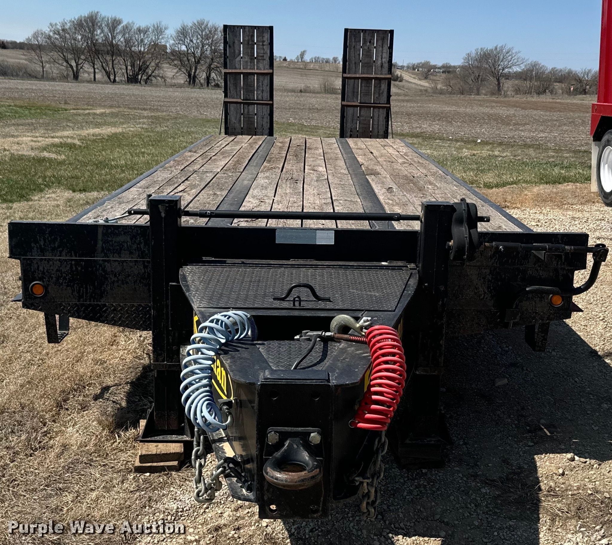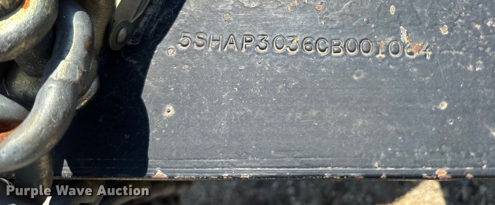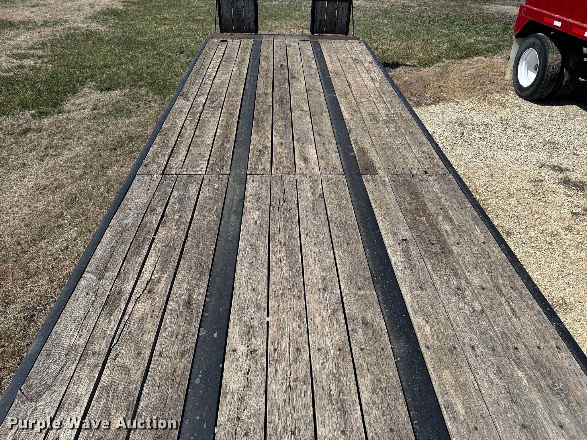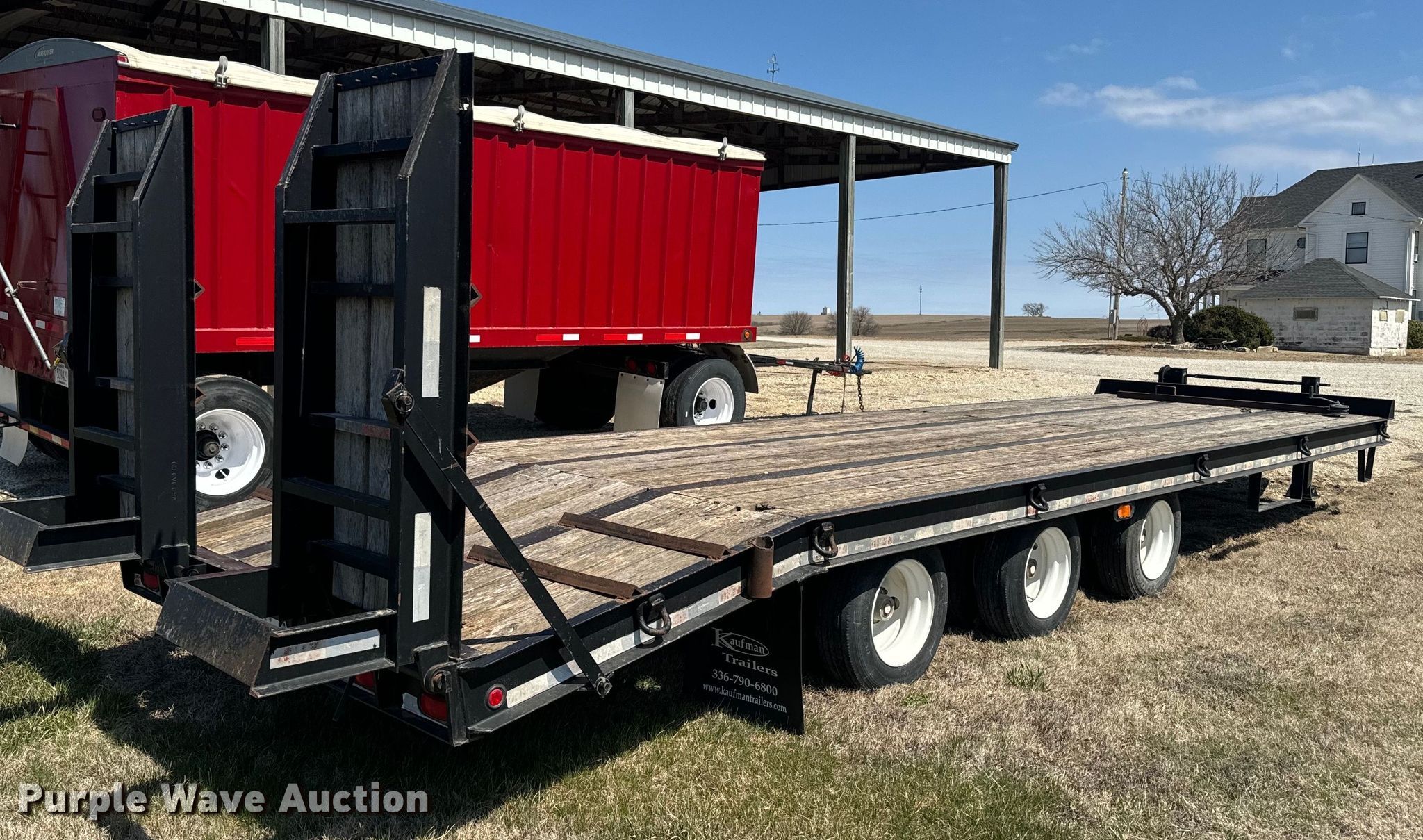 2012 Kaufman equipment trailer. VIN: 5SHAP3036CB001064. Dimensions Deck: 25' L x 101" W, Tail length: 5', Ramps: Manual Length: 5' 6". Features Deck type: Wood. Chassis Hitch: Pintle, Landing gear: Dual, Suspension: Spring, Brakes: Air, Axles: Triple. Tires Steel wheels, Size: 215/75R17.5. Kansas title. Title distribution may be delayed up to 30 days from verification of funds. CSV Farms. Wakefield, KS 67487