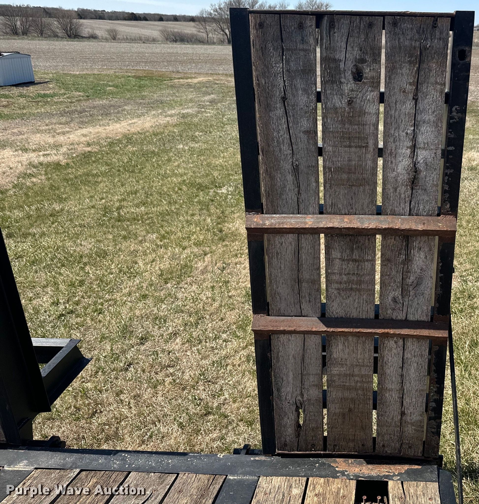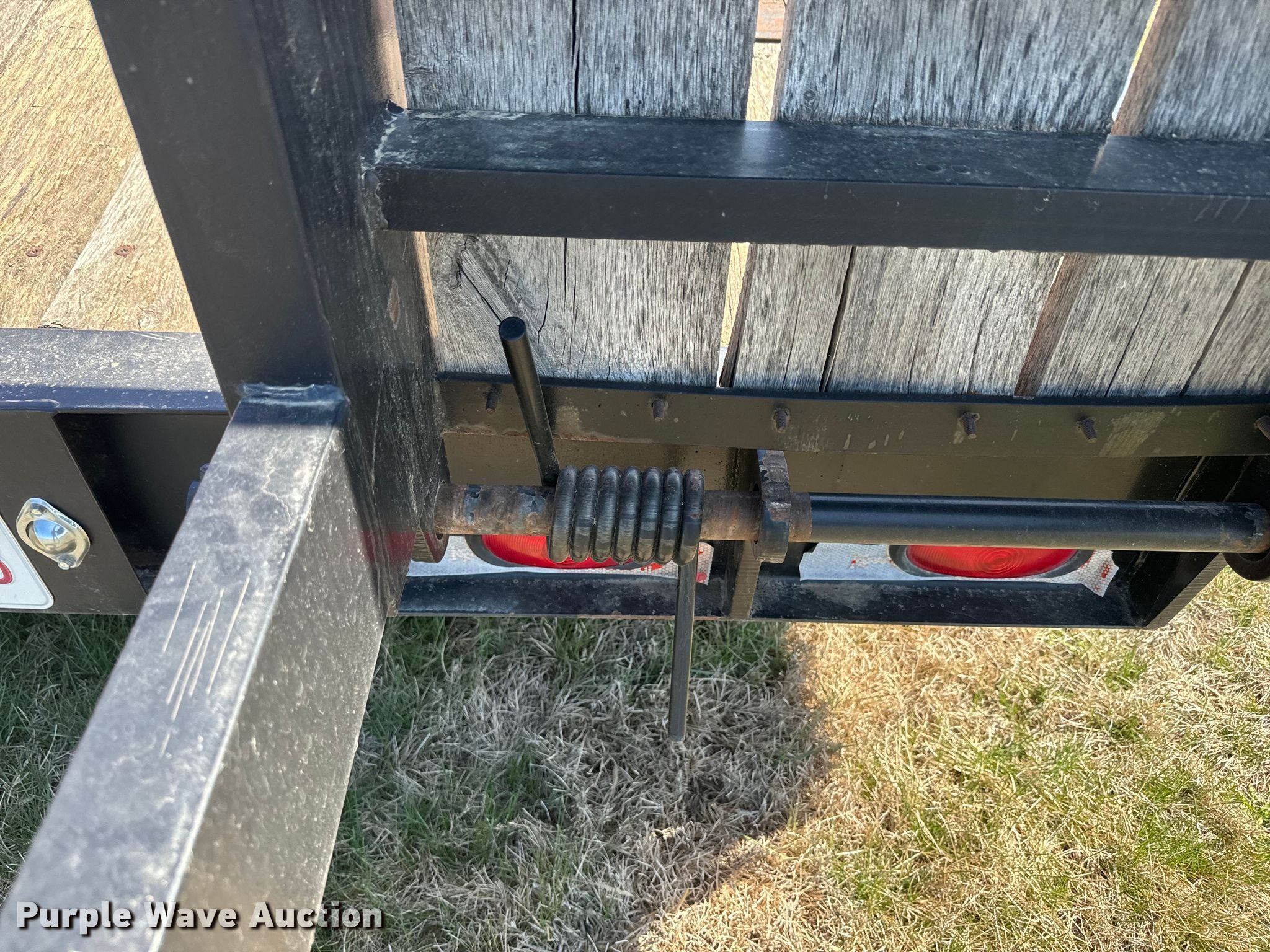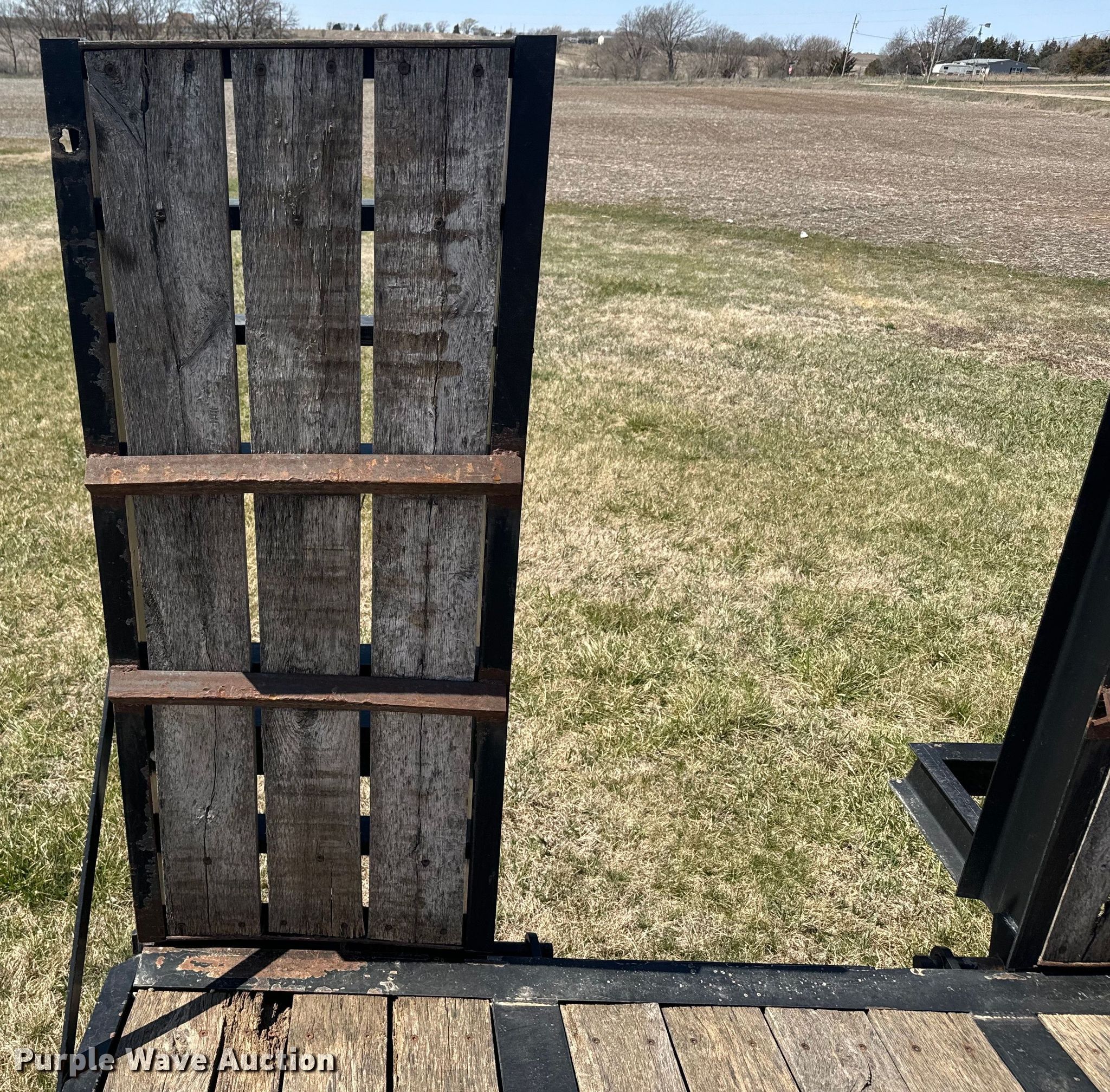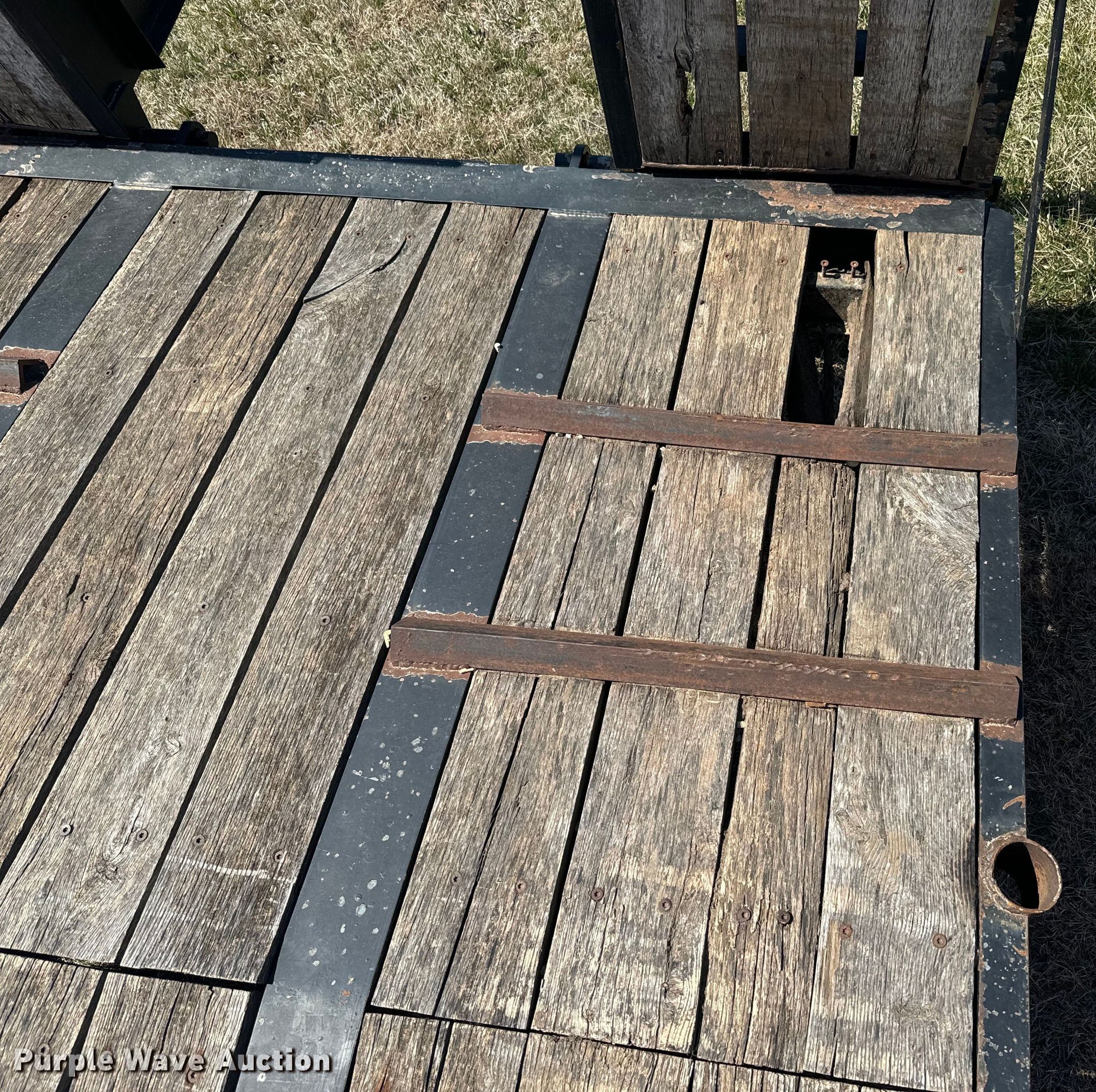 2012 Kaufman equipment trailer. VIN: 5SHAP3036CB001064. Dimensions Deck: 25' L x 101" W, Tail length: 5', Ramps: Manual Length: 5' 6". Features Deck type: Wood. Chassis Hitch: Pintle, Landing gear: Dual, Suspension: Spring, Brakes: Air, Axles: Triple. Tires Steel wheels, Size: 215/75R17.5. Kansas title. Title distribution may be delayed up to 30 days from verification of funds. CSV Farms. Wakefield, KS 67487