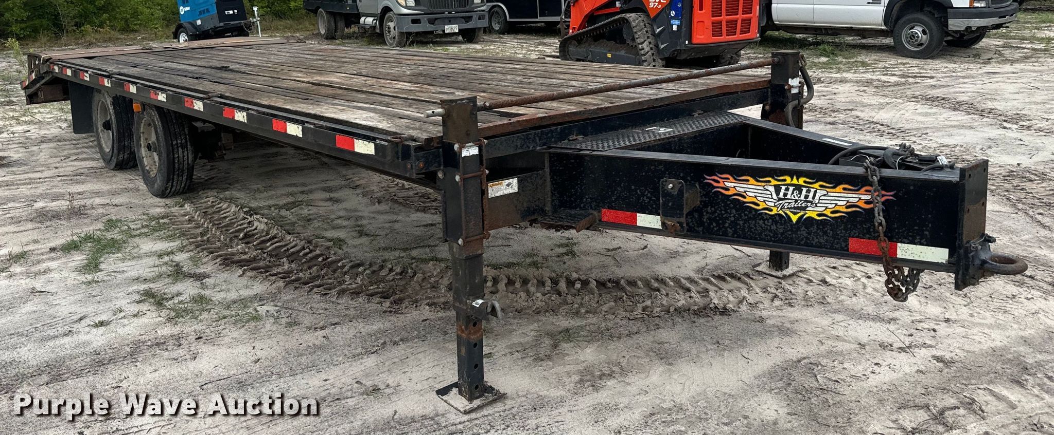 2015 H&H FD-306 equipment trailer. VIN: 533HD2525FC243370. Dimensions Deck: 20' L x 102" W, Tail length: 5', Ramps: Manual Length: 5'. Features Deck type: Wood. Chassis Hitch: Pintle, Landing gear: Dual, Suspension: Spring, Brakes: Electric, Axles: Tandem, GVWR: 22,500 lbs, GAWR: 11,250 lbs. Tires Steel wheels, Size: 235/75R17.5. Florida title. EHaras Services & Solutions. 7138 Southeast Co Road 255. Lee, FL 32059