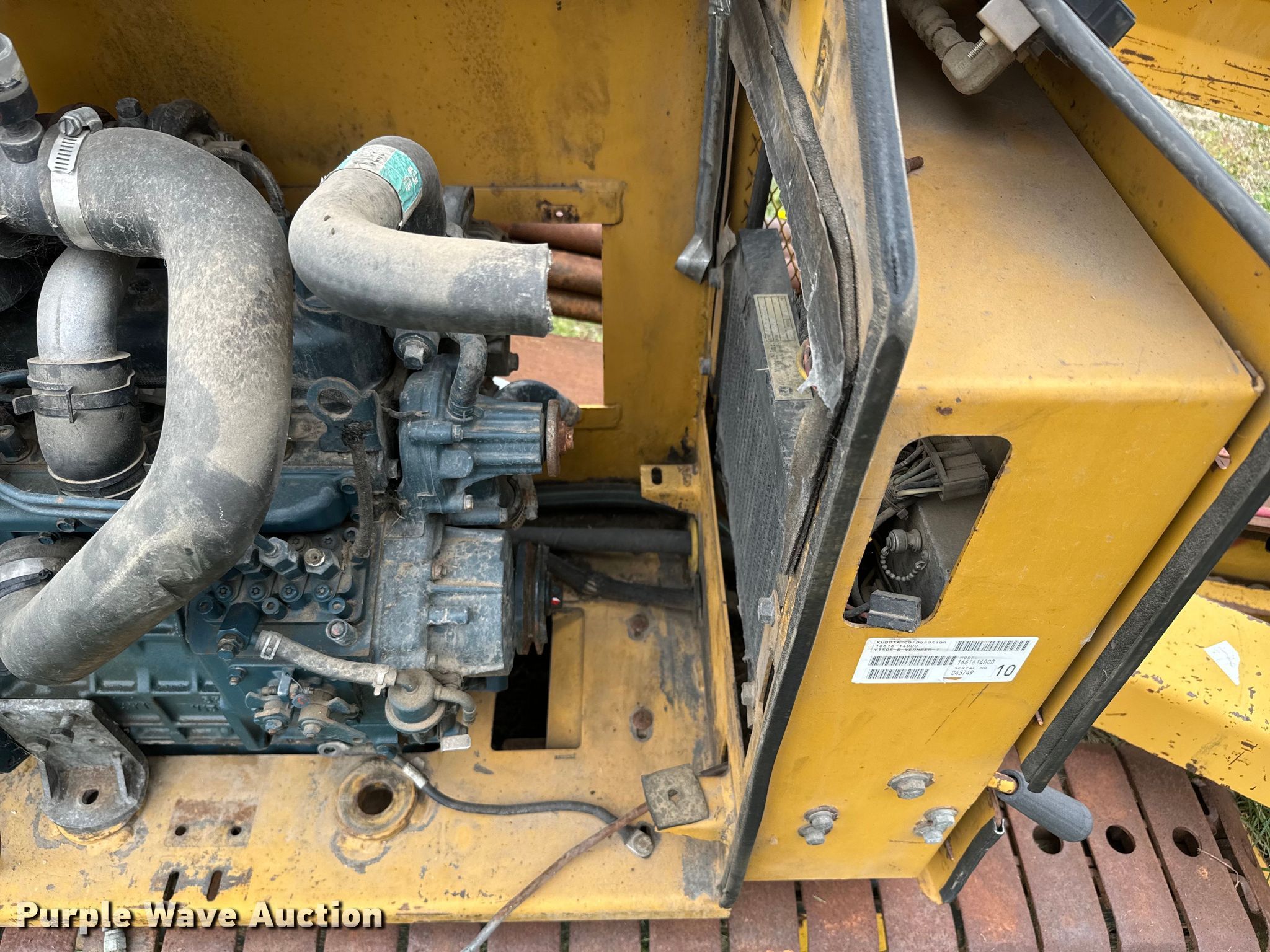 1997 Vermeer D7X11A directional boring unit. Hours: 4,221 on meter, Serial: 1VRS130N4V1000233. Engine Kubota, Cylinders: 4, Fuel type: Diesel. Features Drill stems On drill: 11, Drill stem length: 6' Diameter: 1.75". Tracks Width: 9", Steel. Notes Battery missing, Parts missing, Non-operational unit. Randy Wagner. Miltonvale, KS 67466