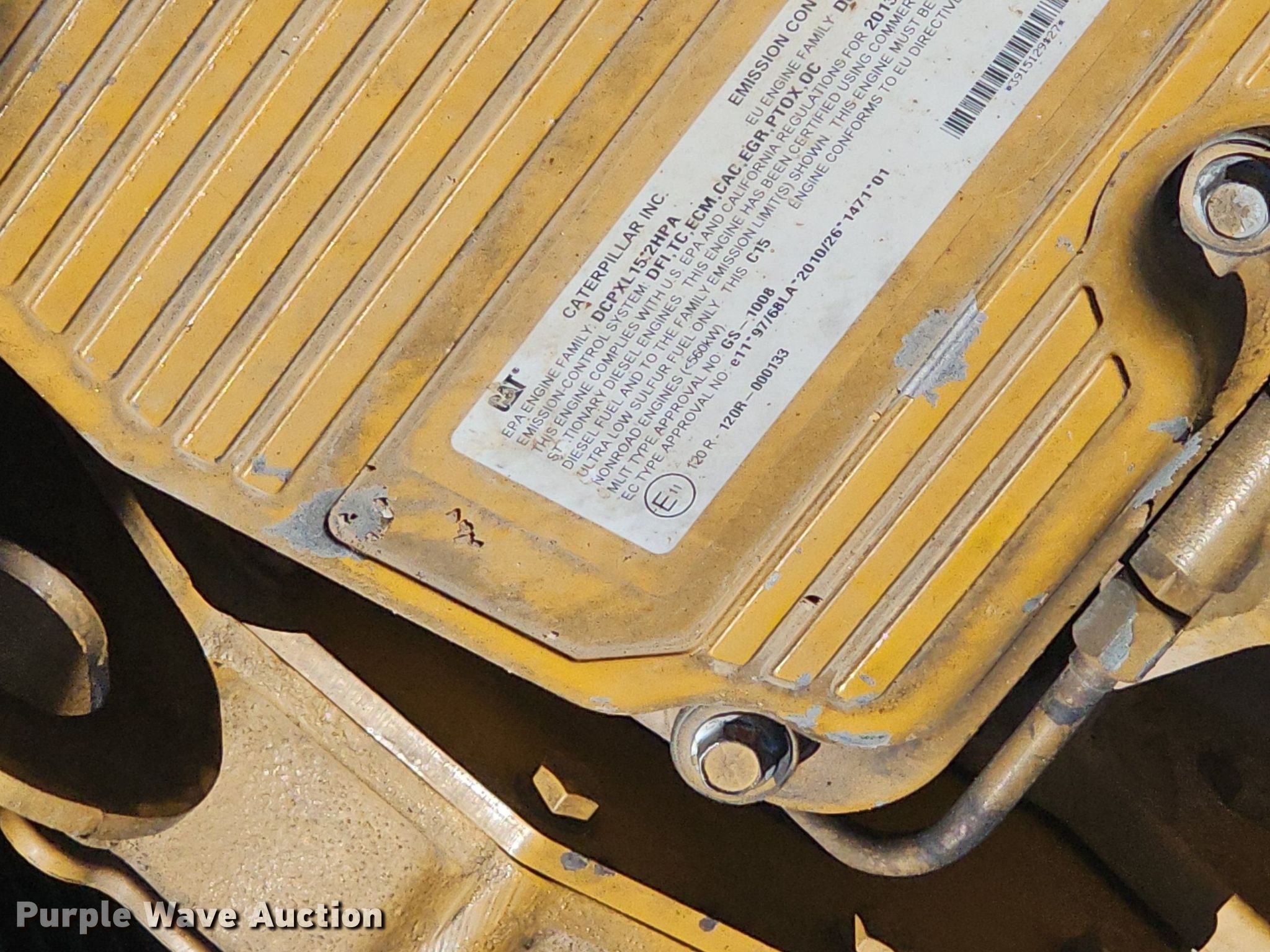 2013 Caterpillar 740B haul truck. Hours: 10,529 on meter, Serial: CAT0740BLT4R01961, Unit #: 74-103. Engine Displacement: 15.2L, Cylinders: 6, Fuel type: Diesel. Transmission Automatic. Chassis Six wheel drive. Interior AC, Heat, Retarder. Features Dump bed. Tires Size: 29.5R25. Emery Sapp & Sons, Inc.. Springdale, AR 72764
