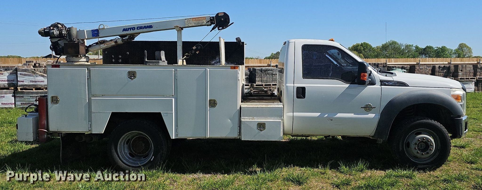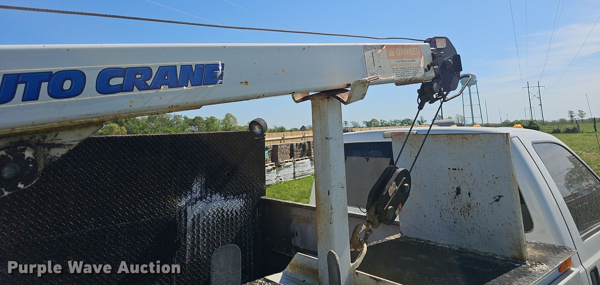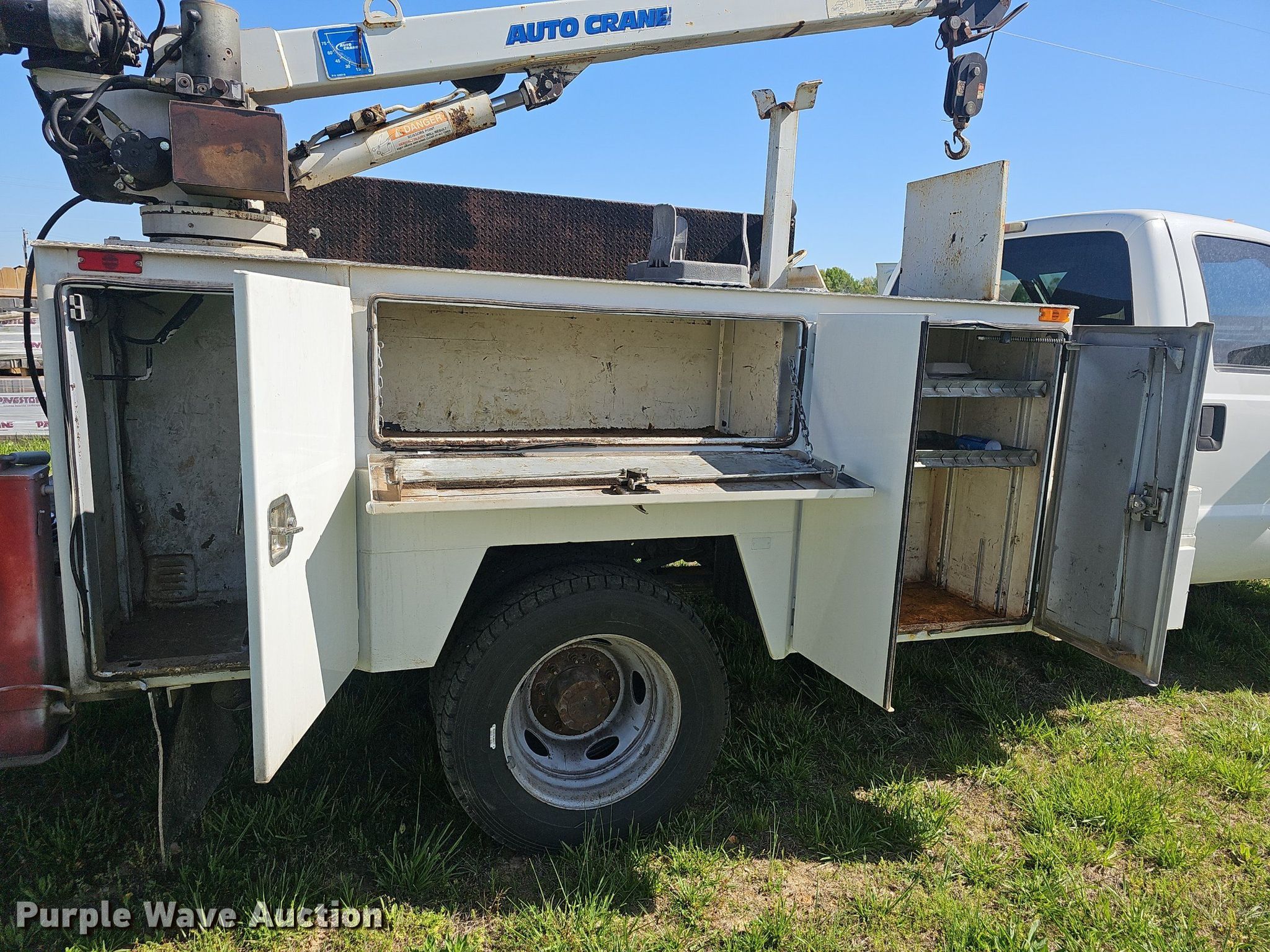2011 Ford F550 Super Duty utility / service truck. Miles: 294,302 on odometer, VIN: 1FDUF5HT4BEC34297. Engine Displacement: 6.7L, Cylinders: 6, Fuel type: Diesel. Transmission Automatic. Chassis Four wheel drive, Axles: Single, Suspension: Spring, Brakes: Hydraulic. Interior AC, Heat, Power windows, Power locks, Cruise control, Auxiliary controls. Features Bed 8' 6" L x 96" W, Oil/lube system Reservoirs, Fuel tank, Crane Auto Crane 3203 PRX. Tires Size: 245/70R19.5. Arkansas title. Title distribution may be delayed up to 14 days from verification of funds. Arco Excavation & Paving. Bentonville, AR 72712