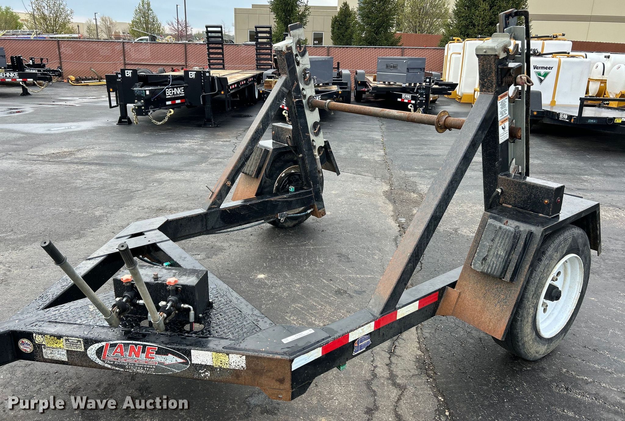 2020 Lane reel trailer. VIN: 1L9LR1319LG321280. Dimensions Overall: 12' 6" L x 101" W. Features Reel: Single, Maximum reel width: 65", Maximum reel diameter: 120", Hydraulic height adjustment. Chassis Hitch: Pintle, Landing gear: Single, Brakes: Electric, GVWR: 6,300 lbs. Tires Size: 215/75R17.5. Missouri title. Seller is a Missouri licensed motor vehicle dealer. Title will be assigned and distributed by the dealer. Please contact the seller for distribution questions. Vermeer Midwest. Chesterfield, MO 63005