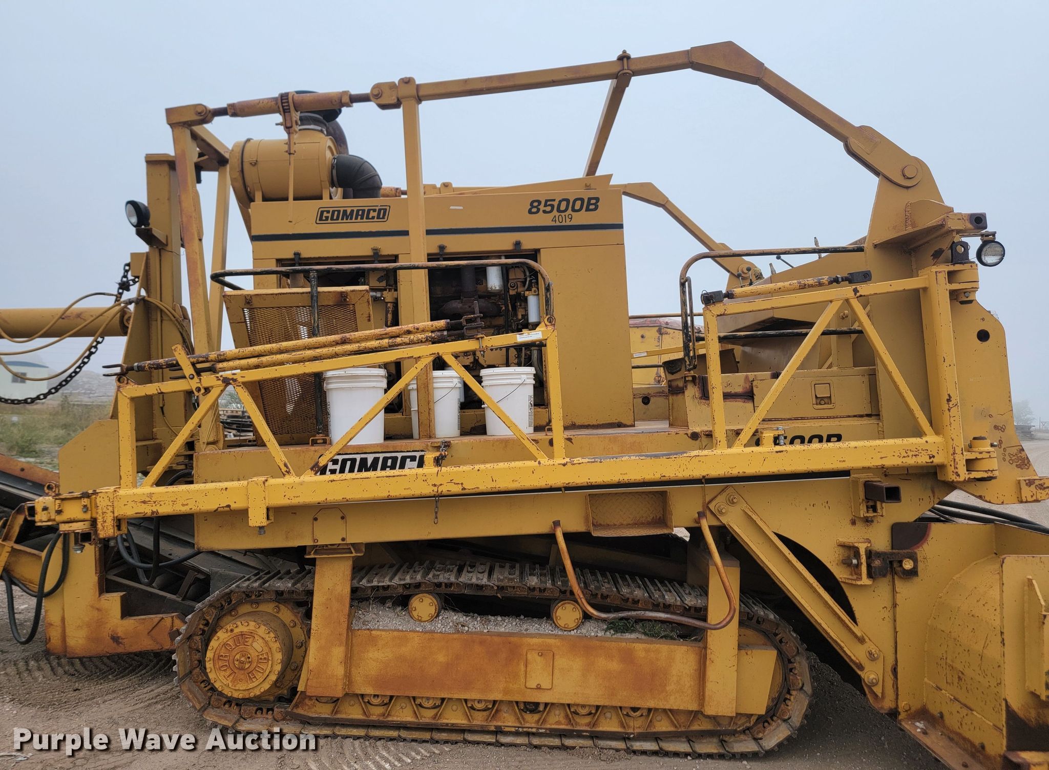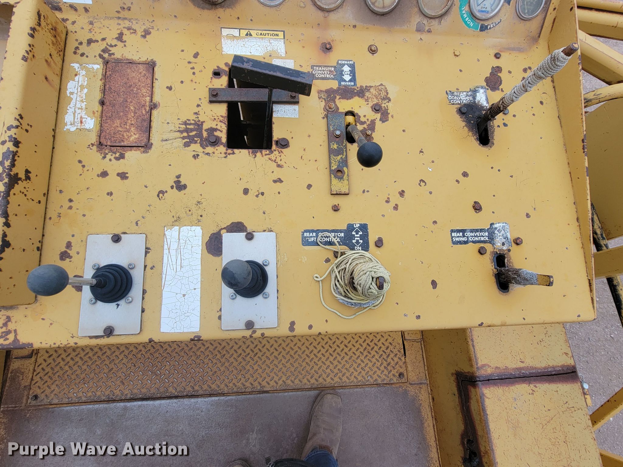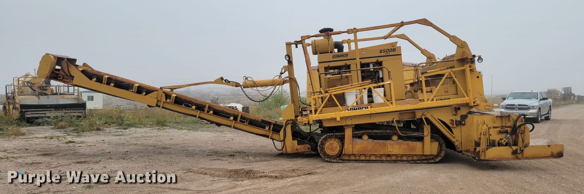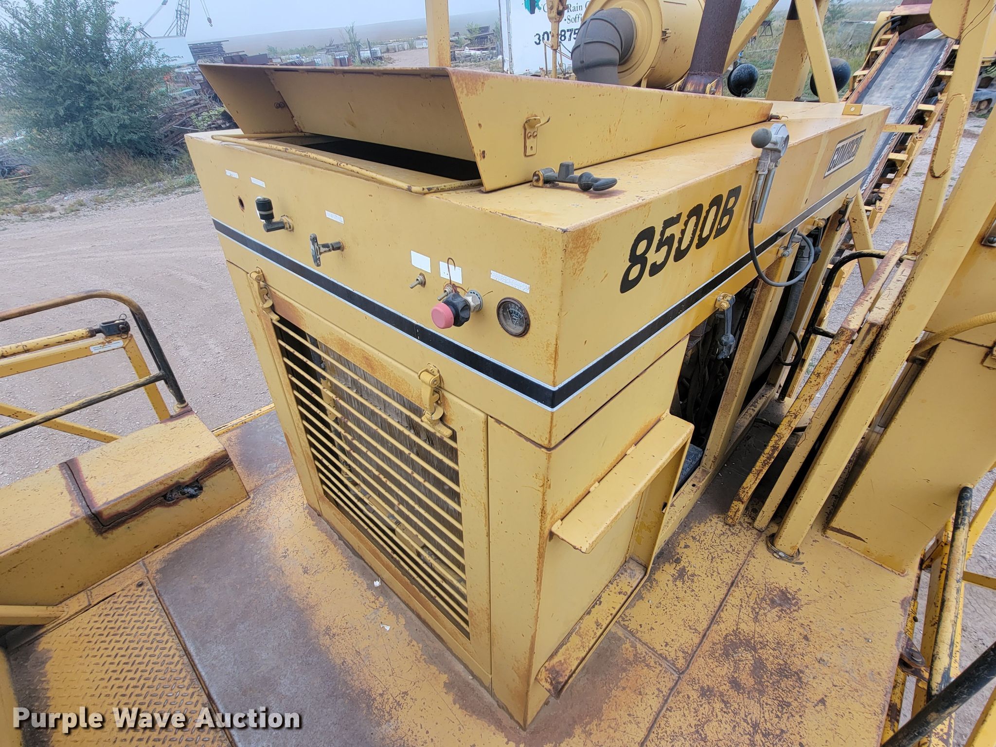 Gomaco 8500B trimmer. Hours: 3,846 on meter, Serial: MCI3255-28. Engine Detroit Diesel B671, Cylinders: 6, Fuel type: Diesel. Transmission Hydrostatic. Features 25' L conveyor, 30" W belt, Hydraulic lift and swing, 15' W Head, (3) sensors and cables. Tracks Width: 13", Steel. Notes Additional 11' W head, Head engage and disengage cable broken. Rapid City, SD 57702