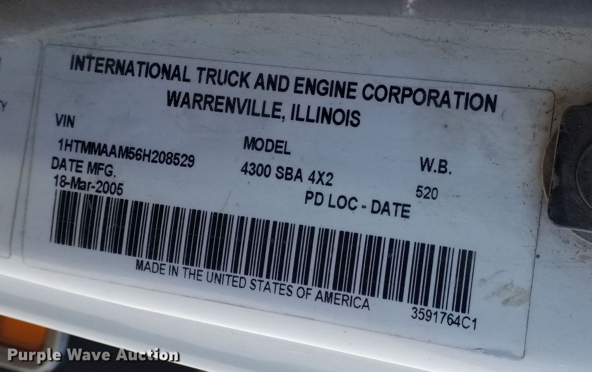 Purple Wave is selling a used Flat Bed Truck in Iowa. This item is a 2006 International 4300 dump flatbed truck with the following: Miles: 183,896 on odometer, Hours: 8,031 on meter, VIN: 1HTMMAAM56H208529