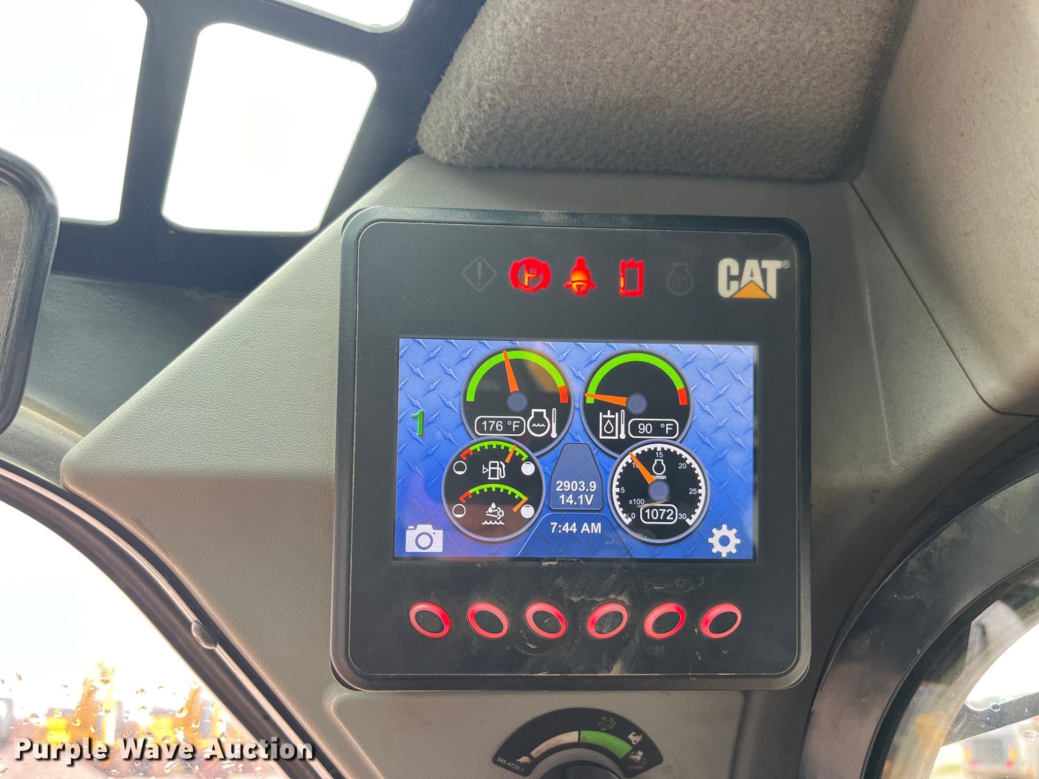 2019 Caterpillar 272D3XE skid steer loader. Hours: 2,904 on meter, Serial: CAT0272DTGJ200638. Engine Caterpillar, Cylinders: 4, Fuel type: Diesel. Transmission Hydrostatic, Two speed travel. Operators station Enclosed cab, AC, Heat, Bucket control: Hand, Electronic Monitoring System panel. Features Auxiliary hydraulics High flow hydraulics, Auxiliary electrical outlet, Quick coupler: Hydraulic, Bucket Caterpillar, Width: 80", Cutting edge: Bolt-on. Tires Size: 14-17.5. Hoover Rental and Sales. Cantril, IA 52542