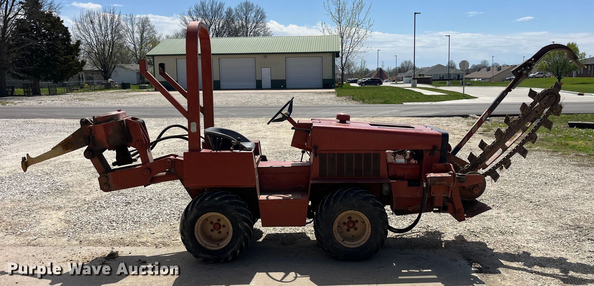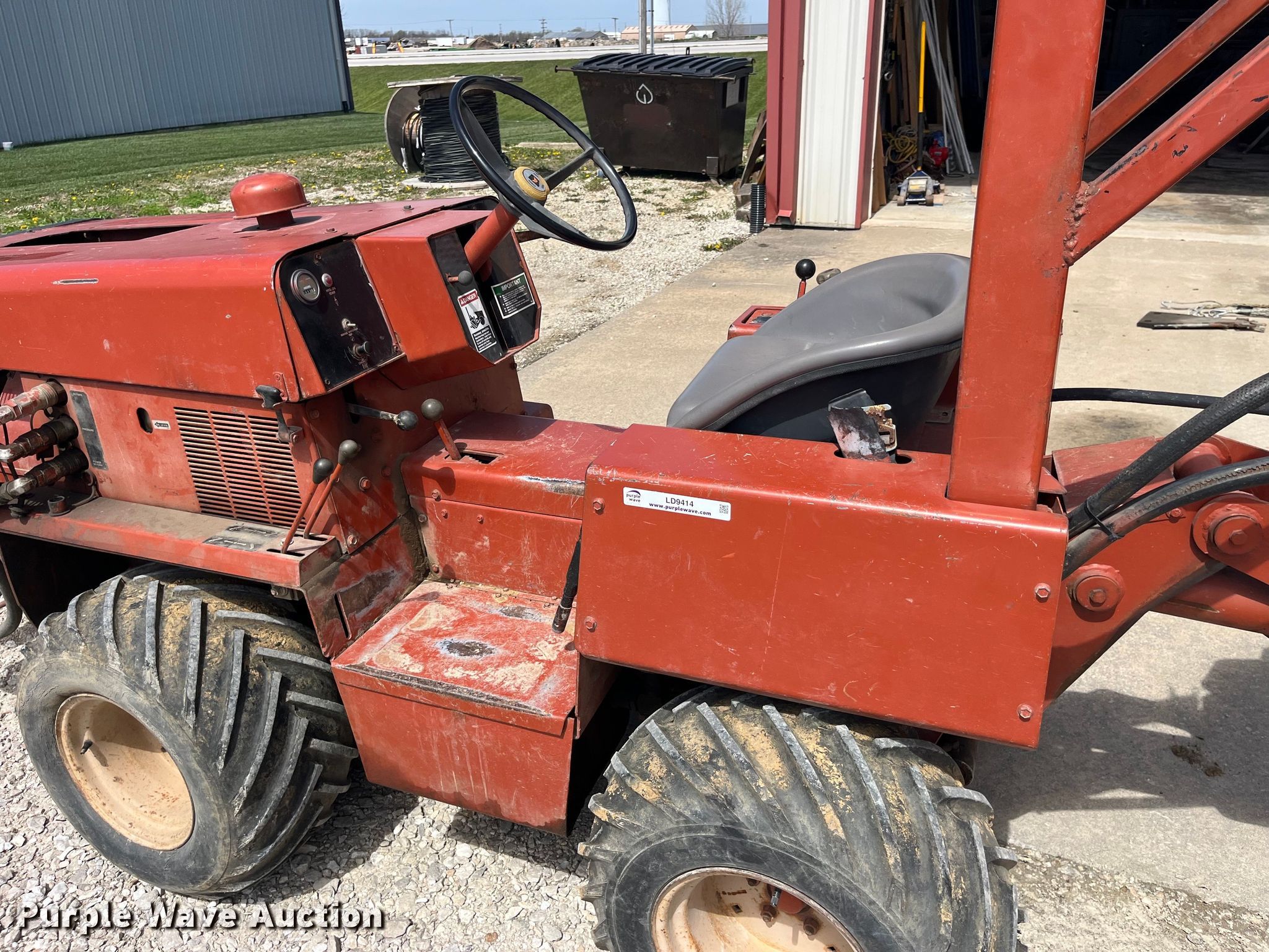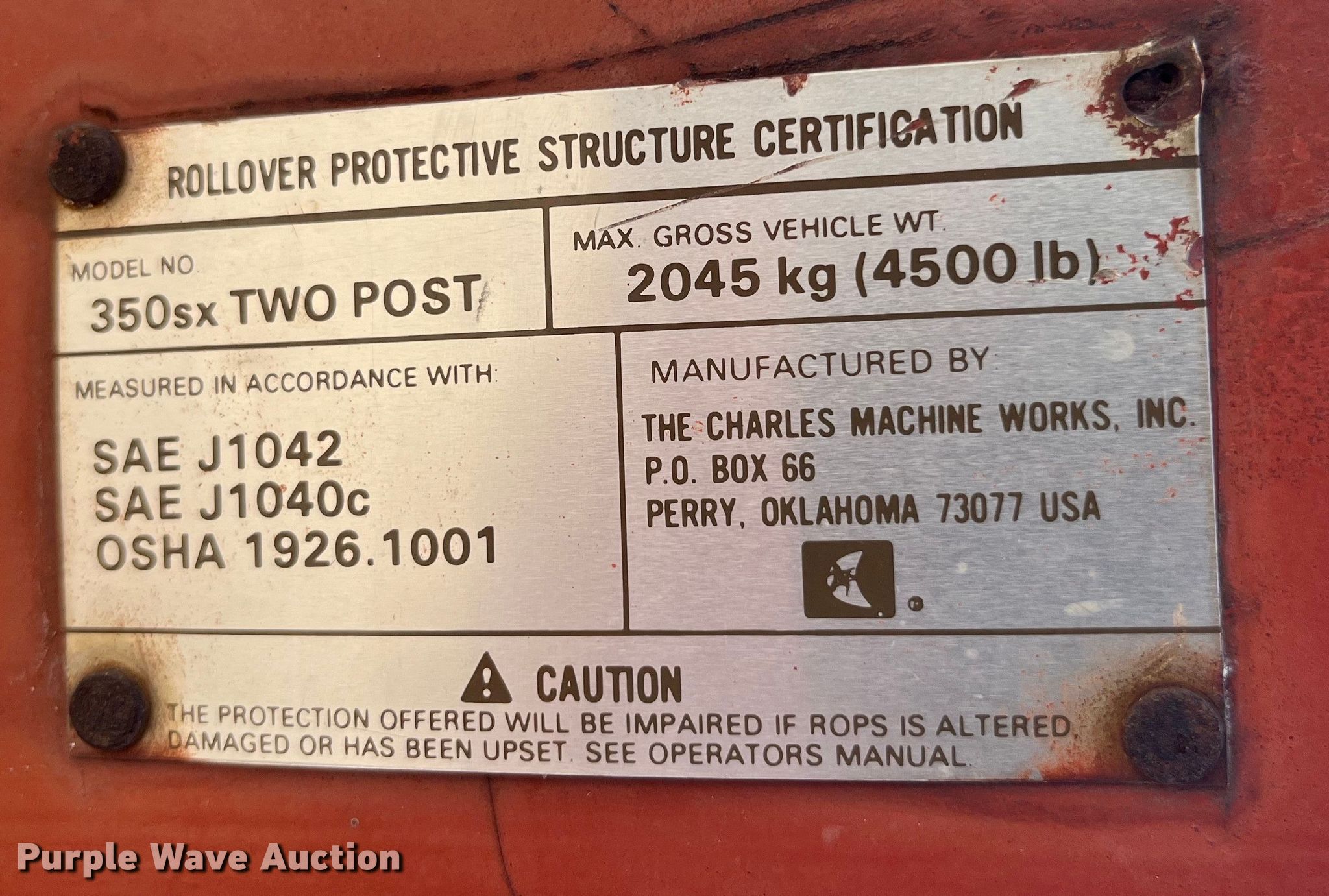 Ditch Witch 350SX W cable plow. Hours: 1,410 on meter, Serial: 180665. Engine Wisconsin, Cylinders: 4, Fuel type: Gas. Transmission Hydrostatic, Four wheel drive, Four wheel steer. Operators station OROPS. Features Model: A300, Serial: 2G1158, Trencher Estimated dig depth: 48", Cutting width: 4", Teeth: Dirt, Manual crumber, Vibratory plow Depth: 24", Reel carrier Maximum reel width: 22", Maximum reel diameter: 28", (3) socks included, Additional plow blade Cable shoot depth: 12". Tires Size: 26x12-12. Notes Unknown operating condition of hour meter. Howard Electric Company. Macon, MO 63552