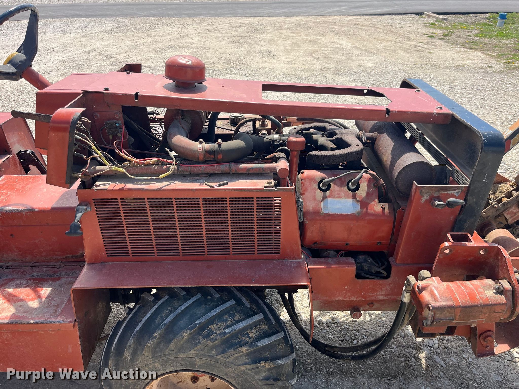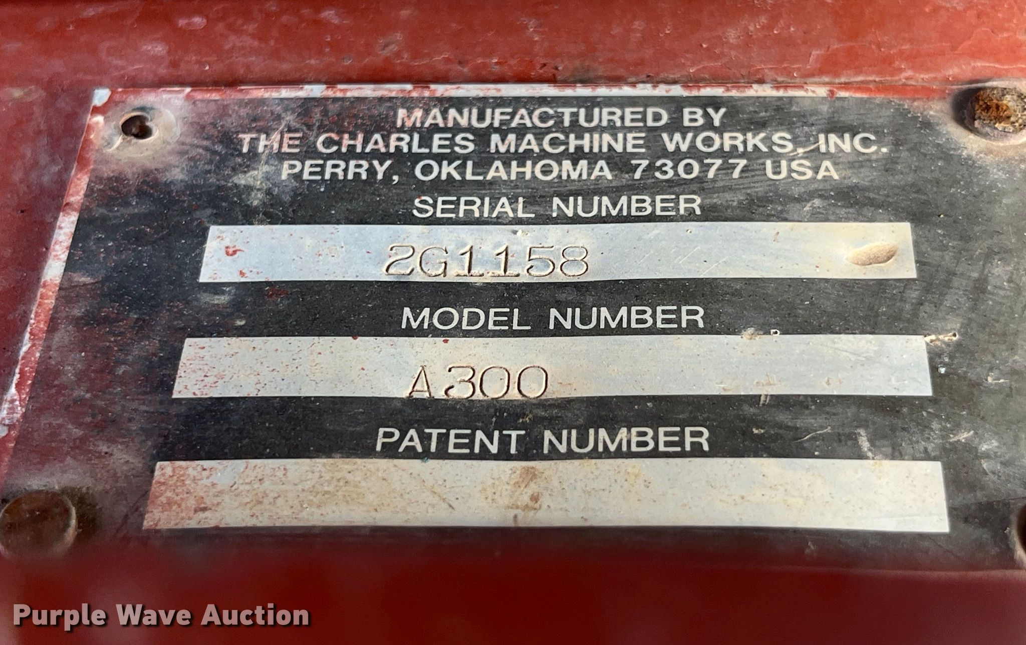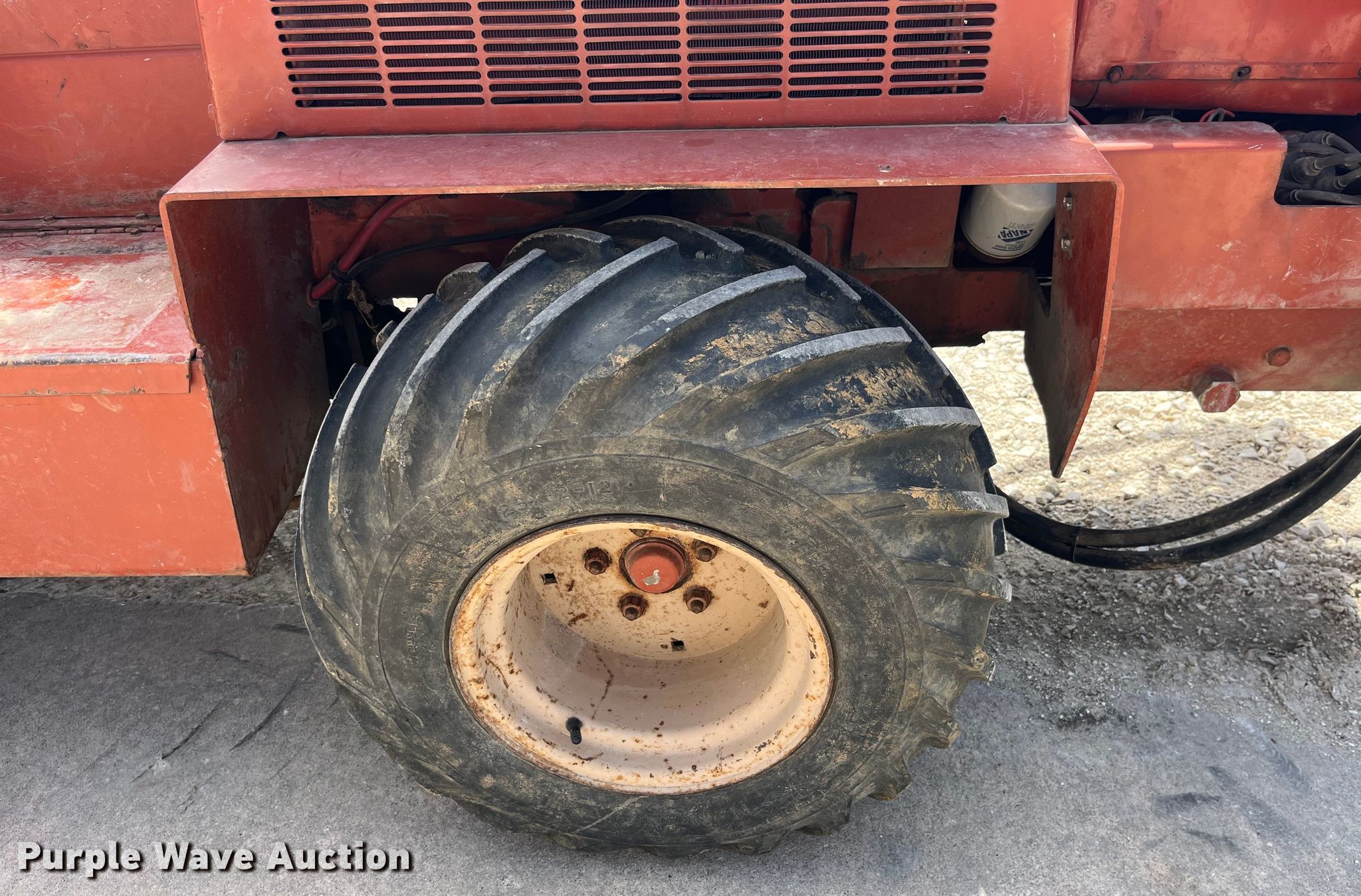 Ditch Witch 350SX W cable plow. Hours: 1,410 on meter, Serial: 180665. Engine Wisconsin, Cylinders: 4, Fuel type: Gas. Transmission Hydrostatic, Four wheel drive, Four wheel steer. Operators station OROPS. Features Model: A300, Serial: 2G1158, Trencher Estimated dig depth: 48", Cutting width: 4", Teeth: Dirt, Manual crumber, Vibratory plow Depth: 24", Reel carrier Maximum reel width: 22", Maximum reel diameter: 28", (3) socks included, Additional plow blade Cable shoot depth: 12". Tires Size: 26x12-12. Notes Unknown operating condition of hour meter. Howard Electric Company. Macon, MO 63552