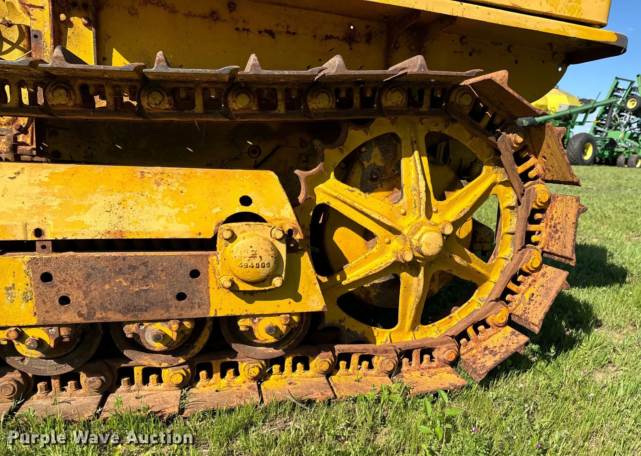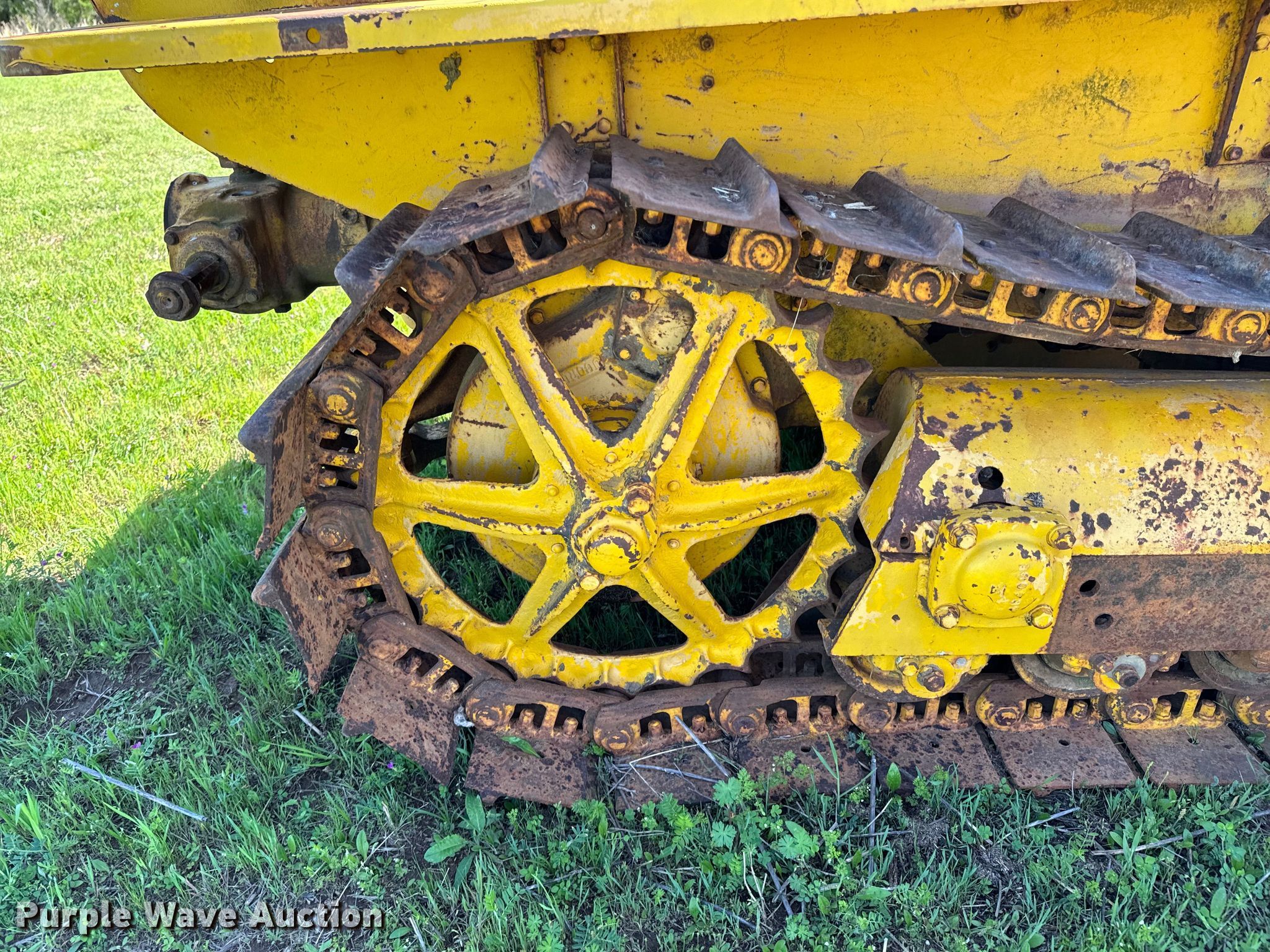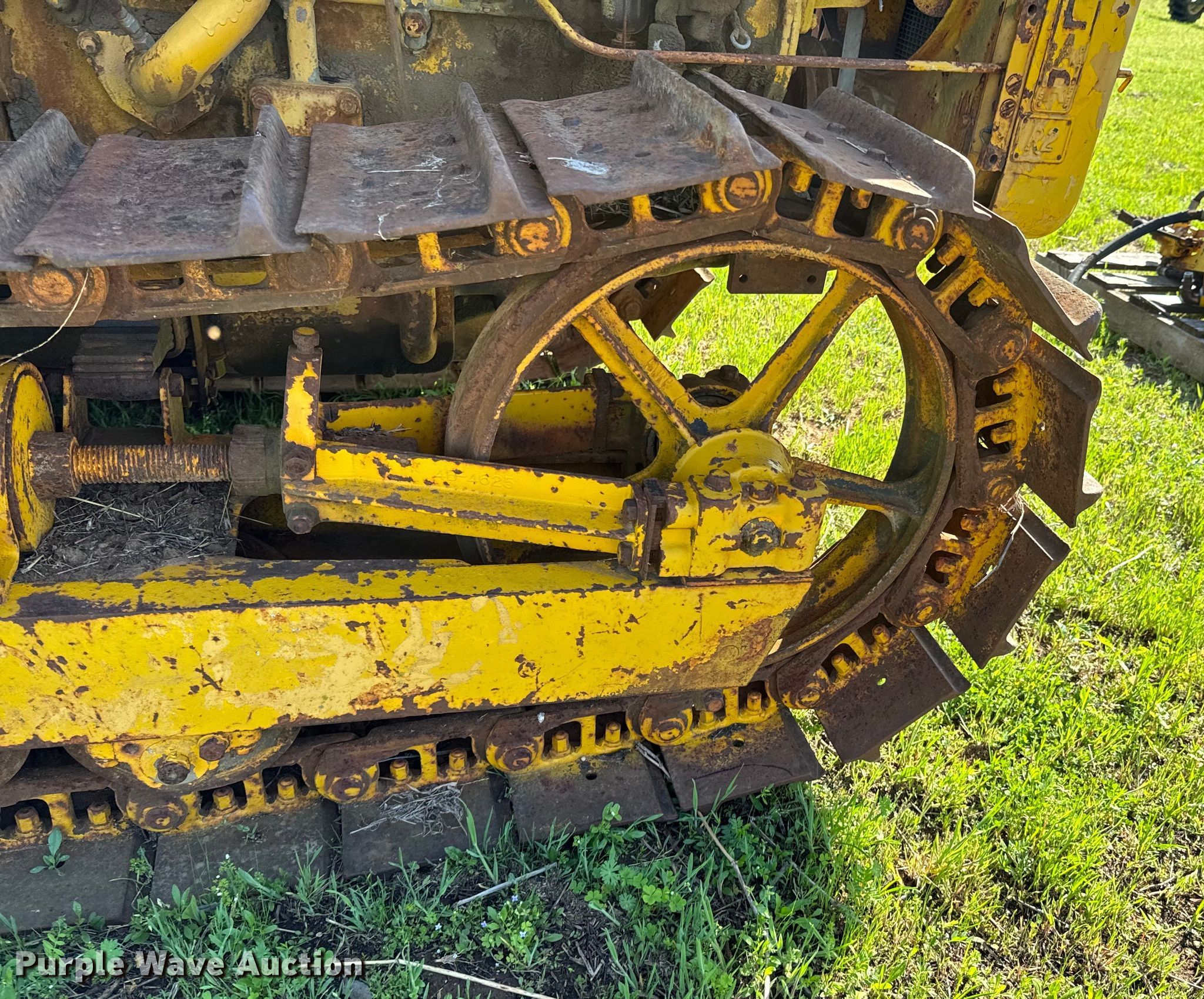 Caterpillar R2 dozer. Engine. Cylinders: 4, Fuel type: Gas. Transmission Manual, 5F - 1R. Features Dozer blade Type: Straight, Width: 5' 6". Tracks Width: 12", Grouser pads: Single, Bottom rollers: 4. Notes Non-operational unit. Franklin Farms. Vinita, OK 74301