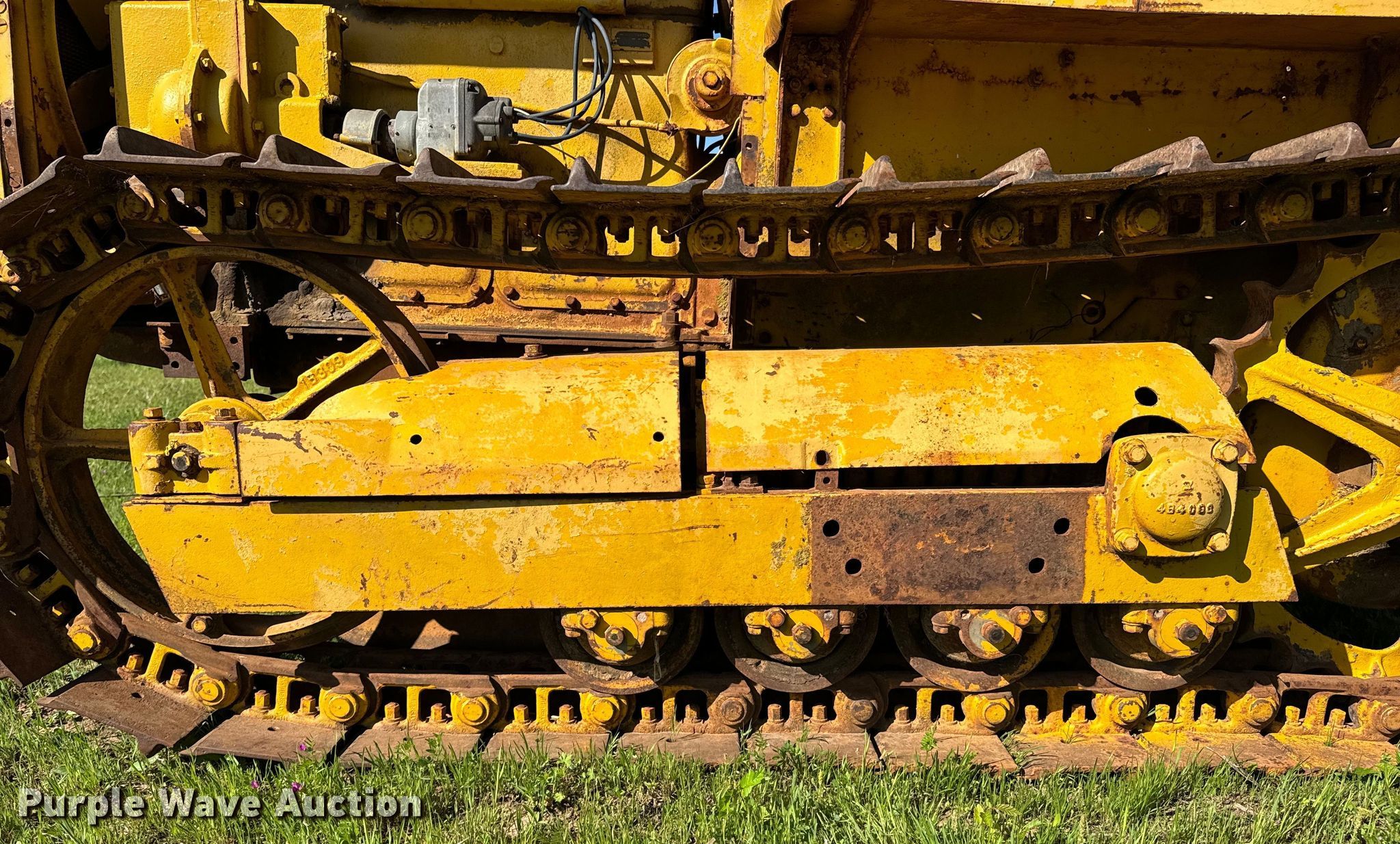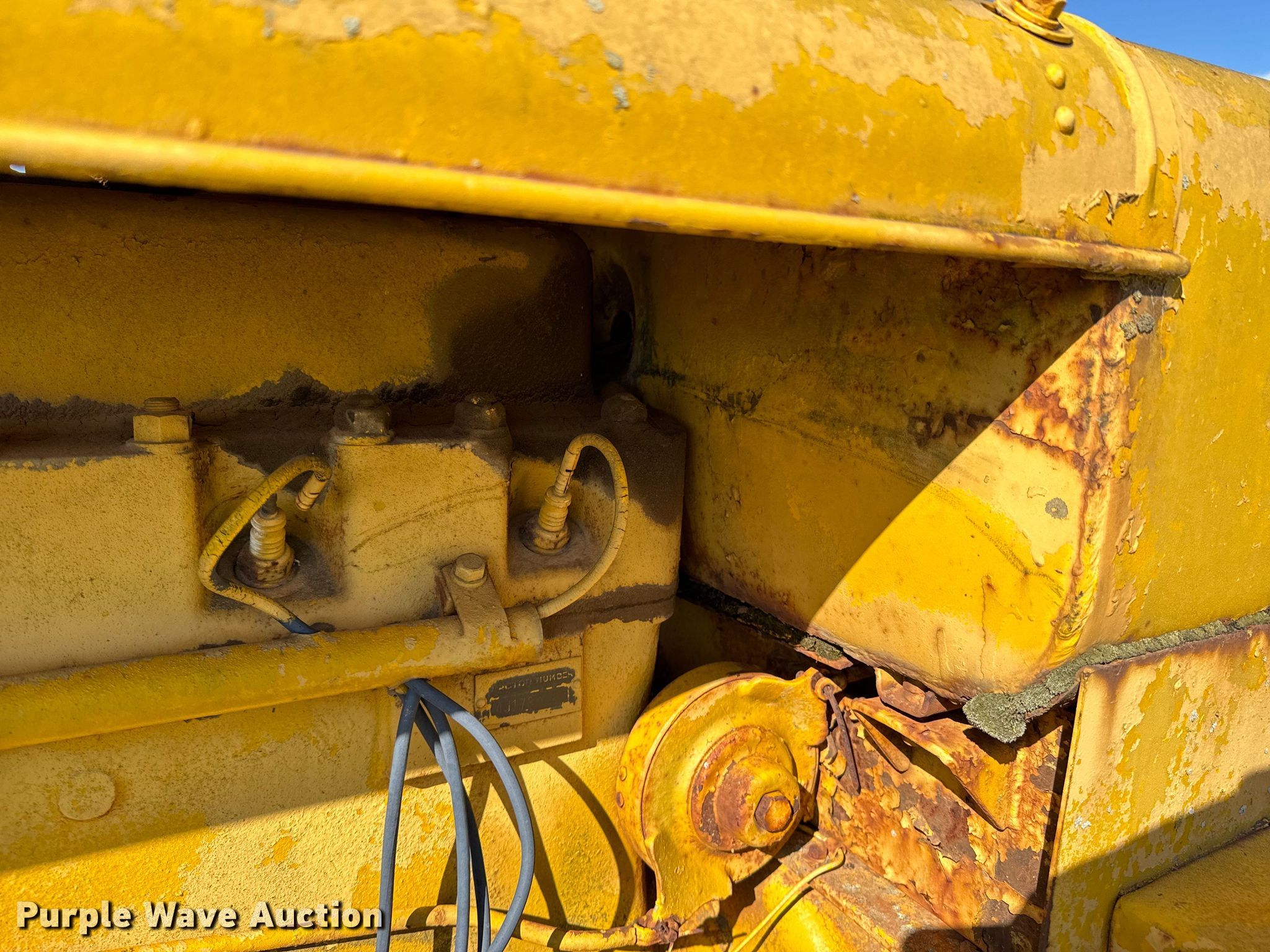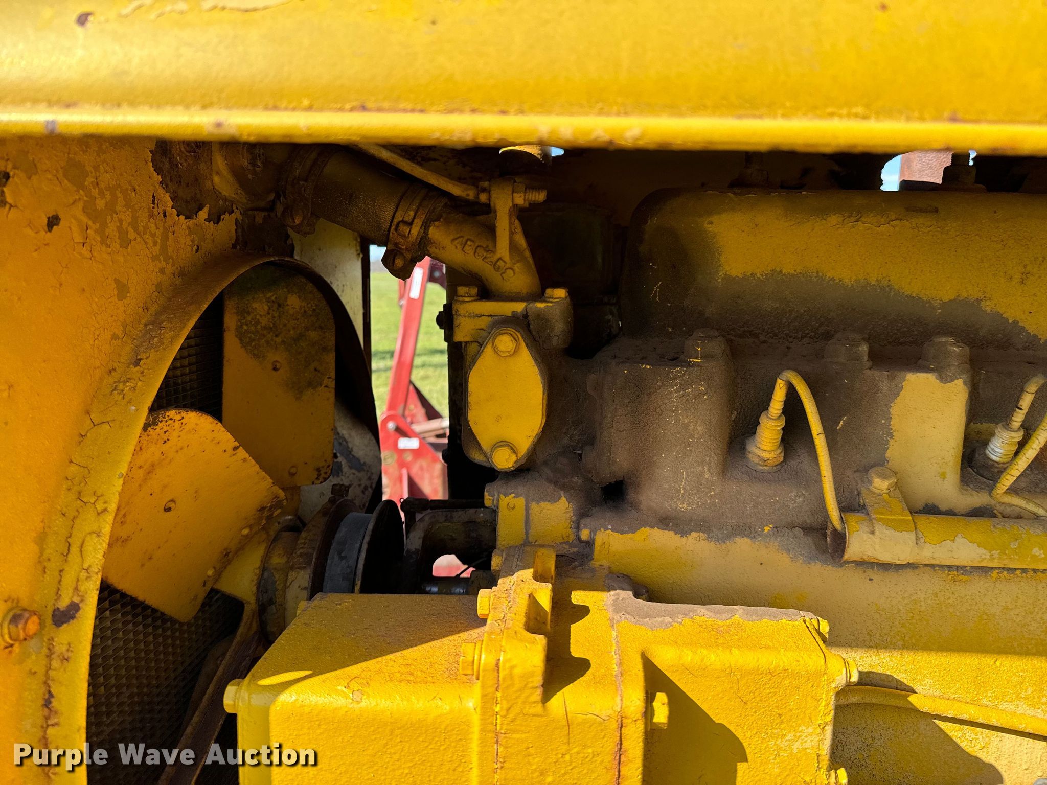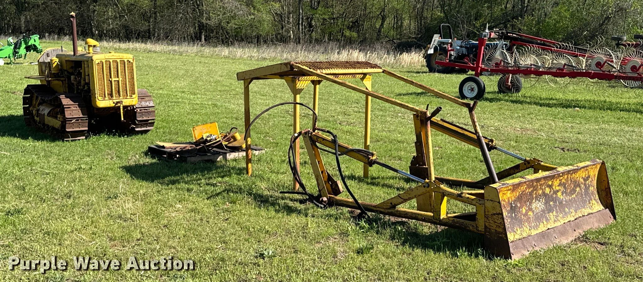 Caterpillar R2 dozer. Engine. Cylinders: 4, Fuel type: Gas. Transmission Manual, 5F - 1R. Features Dozer blade Type: Straight, Width: 5' 6". Tracks Width: 12", Grouser pads: Single, Bottom rollers: 4. Notes Non-operational unit. Franklin Farms. Vinita, OK 74301