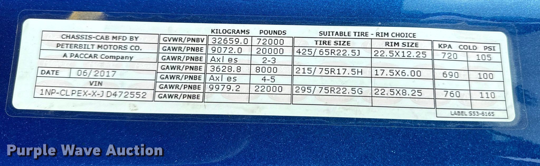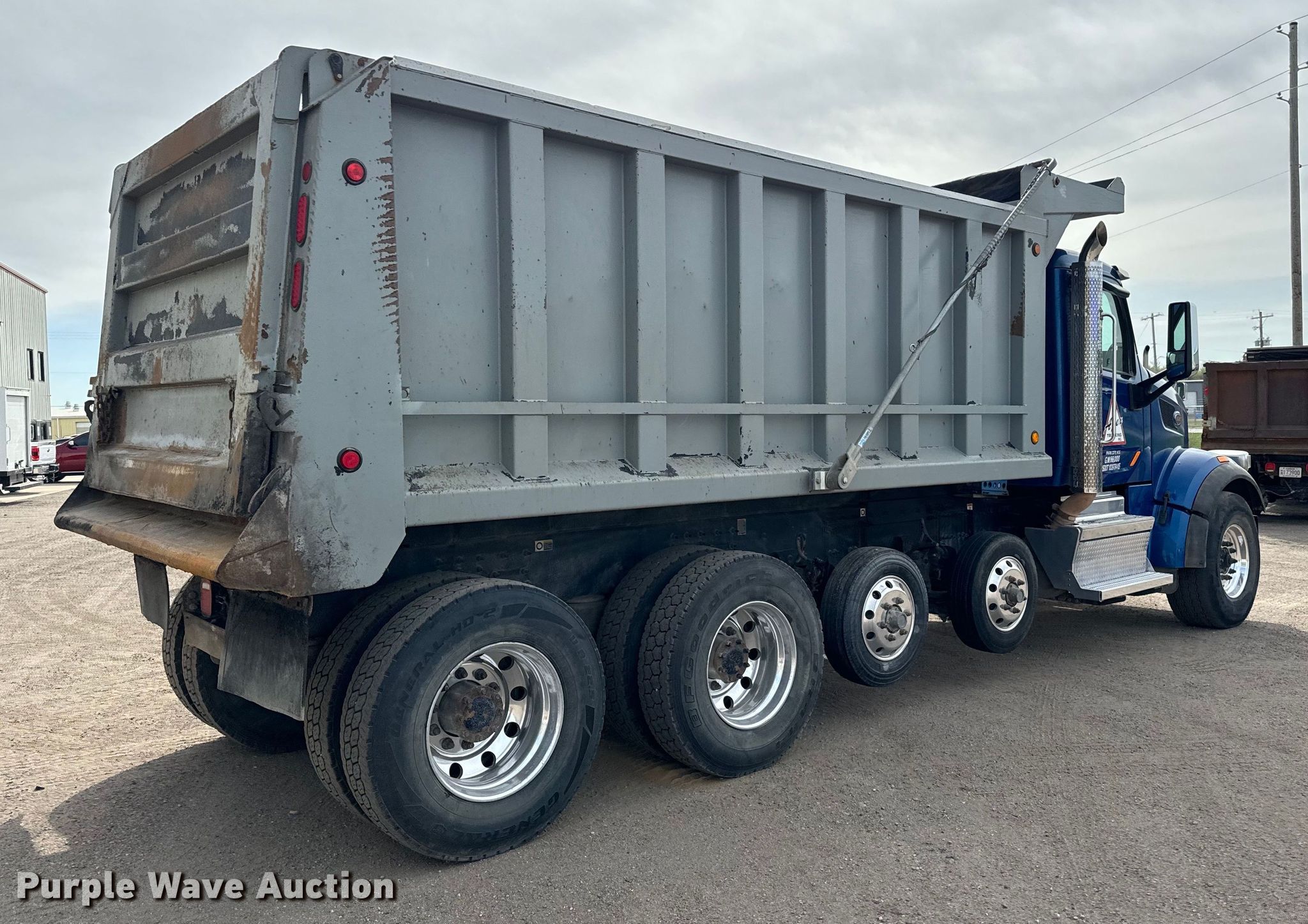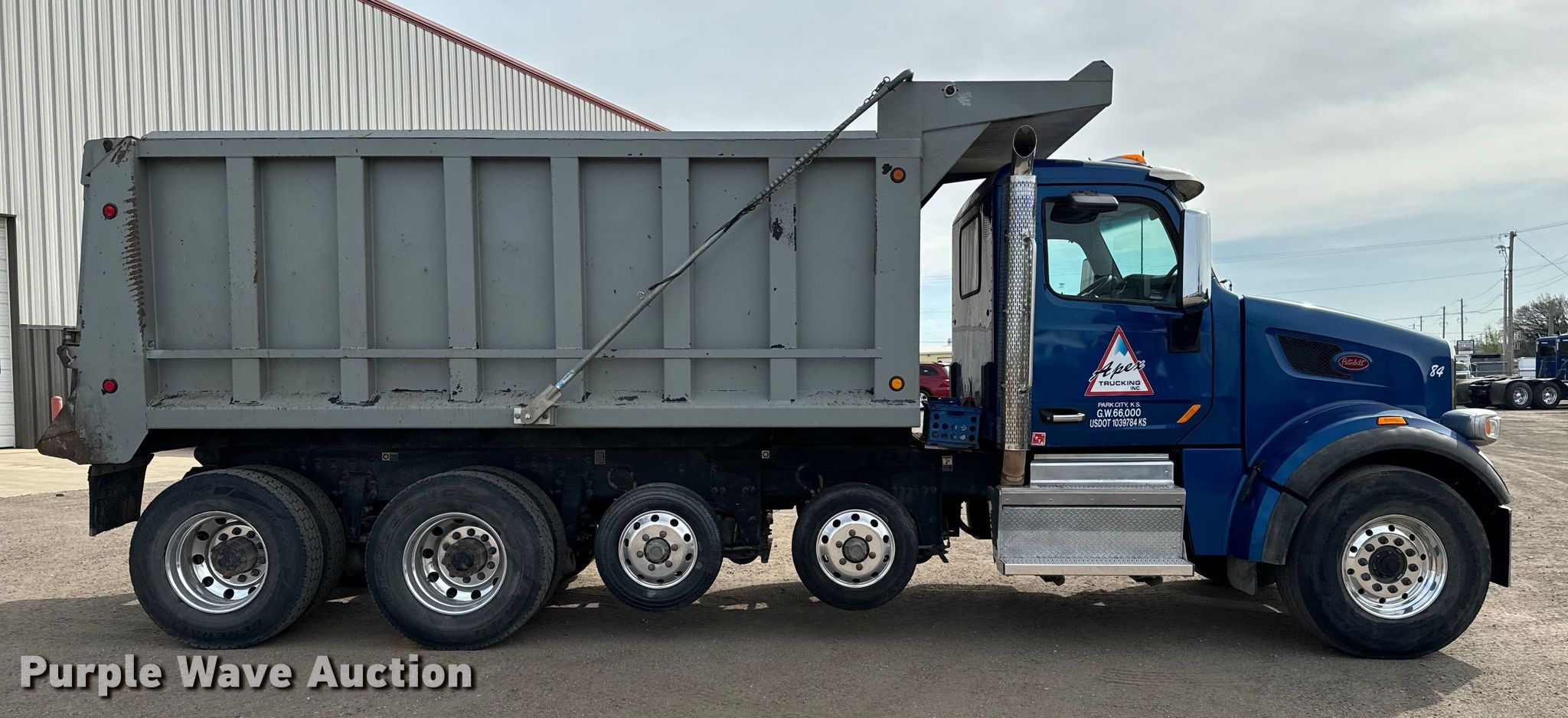 2018 Peterbilt 567 dump truck. Miles: 252,567 on odometer, Hours: 10,388 on meter, VIN: 1NPCLPEXXJD472552. Engine Paccar MX13, Displacement: 12.9L, Cylinders: 6, Fuel type: Diesel. Transmission Allison, Automatic. Chassis Axles: 4, Pusher axle Steerable, Differential lock: Inter-axle, Suspension: Air Dump valves, Brakes: Air, PTO, GVWR: 72,000 lbs. Interior AC, Heat, Heated mirrors, Power windows, Cruise control. Features Dump bed Reynolds 631401696605G, 16' L x 96" W, Side height: 64", Bed type: Steel, Roll tarp, Ram: Single, End gate: Air operated. Tires Front: 425/65R22.5, Rear: 11R22.5, Lift axle: 215/75R17.5. Notes Windshield chipped or cracked. Kansas title. Title distribution may be delayed up to 14 days from verification of funds. Apex Trucking Inc.. Park City, KS 67204