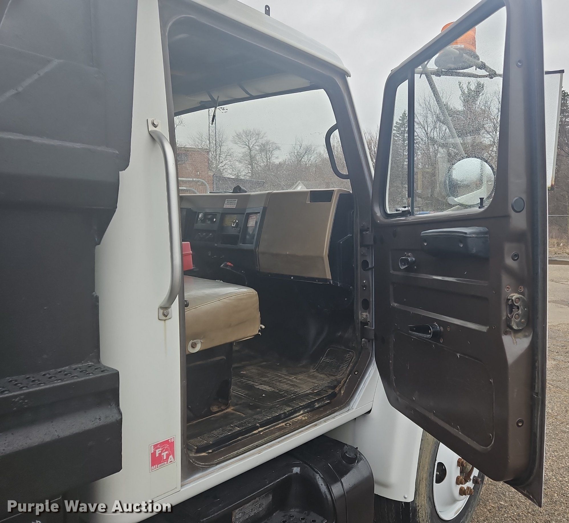 1993 International 4600 dump truck. Miles: 122,913 on odometer, VIN: 1HTSAZRN1PH490343. Engine International, Displacement: 7.3L, Cylinders: 8, Fuel type: Diesel. Transmission Automatic. Chassis Axles: Single, Suspension: Spring, Brakes: Air, PTO, GVWR: 29,000 lbs FAWR: 10,000 lbs, RAWR: 19,000 lbs. Interior AC, Heat. Features Dump bed 10' L x 8' W, Side board height: 6", Bed type: Steel, Roll tarp, Ram: Single, End gate: Manual. Tires Front: 10R22.5, Rear: 295/75R22.5. Michigan title. Title distribution may be delayed up to 14 days from verification of funds. Creek Enterprise Inc. 1306 Page Avenue. Jackson, MI 49203