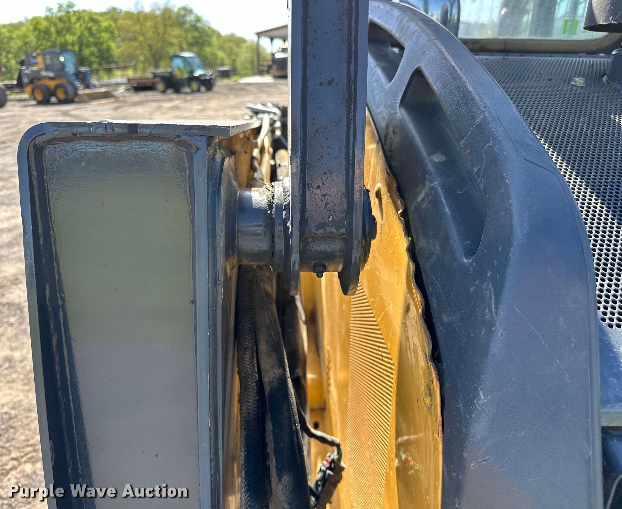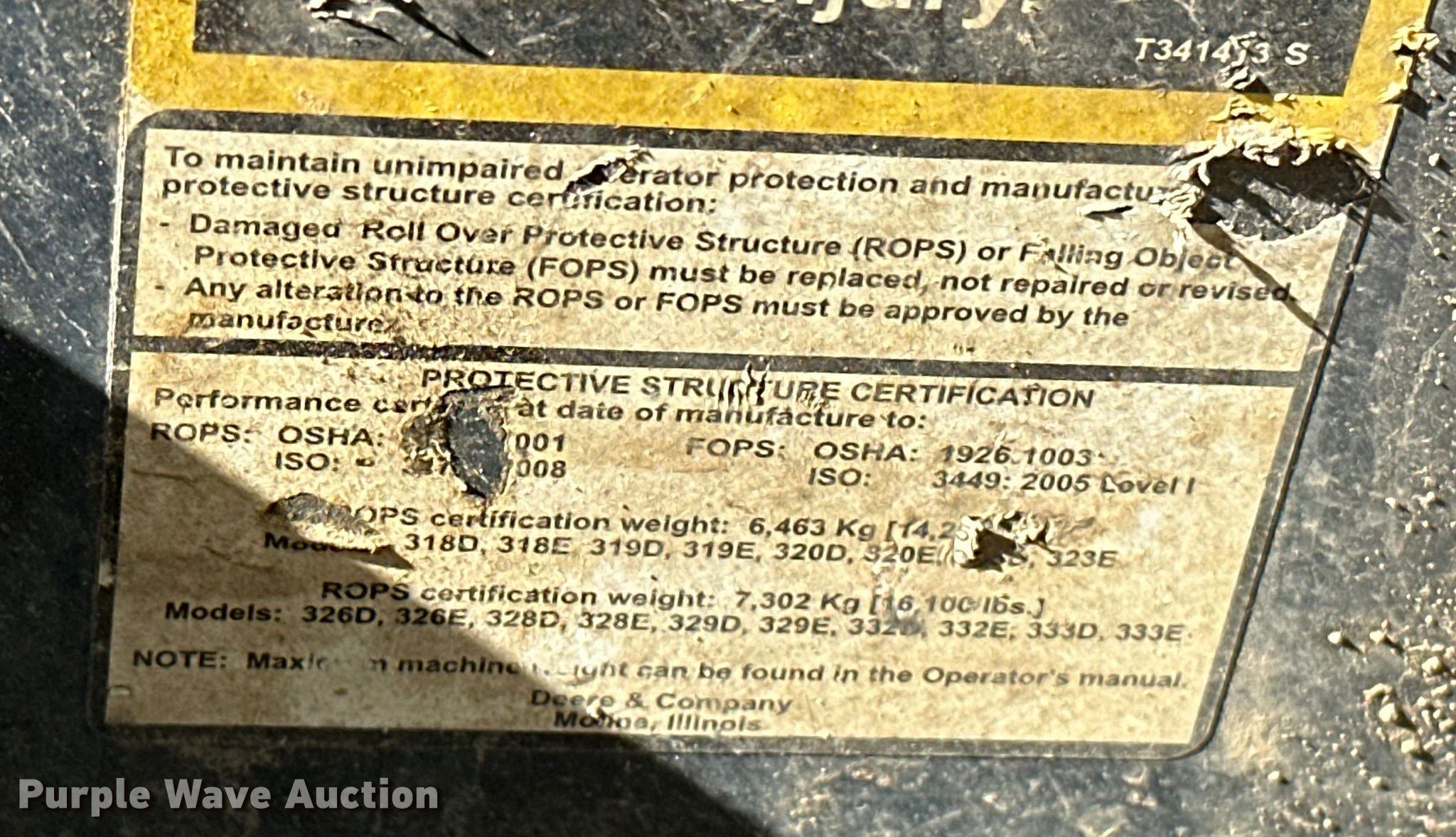 2016 John Deere 332E skid steer loader. Hours: 7,143 on meter, Serial: 1T0332EKAGE294771. Engine Yanmar, Cylinders: 4, Fuel type: Diesel. Transmission Hydrostatic, Two speed travel. Operators station Enclosed cab, AC, Heat, Bucket control: Hand, Pattern changer. Features Auxiliary hydraulics, Auxiliary electrical outlet, Quick coupler: Manual, Bucket Width: 83", Low profile. Tires Solid. Notes Front door missing, Hydraulic pump issues, Seat damaged, Right coupler issues, won't latch to bucket. 26797 Latham Ridge Rd. Shady Point, OK 74956