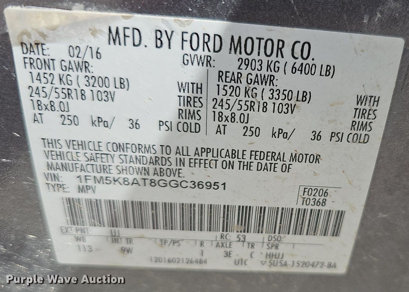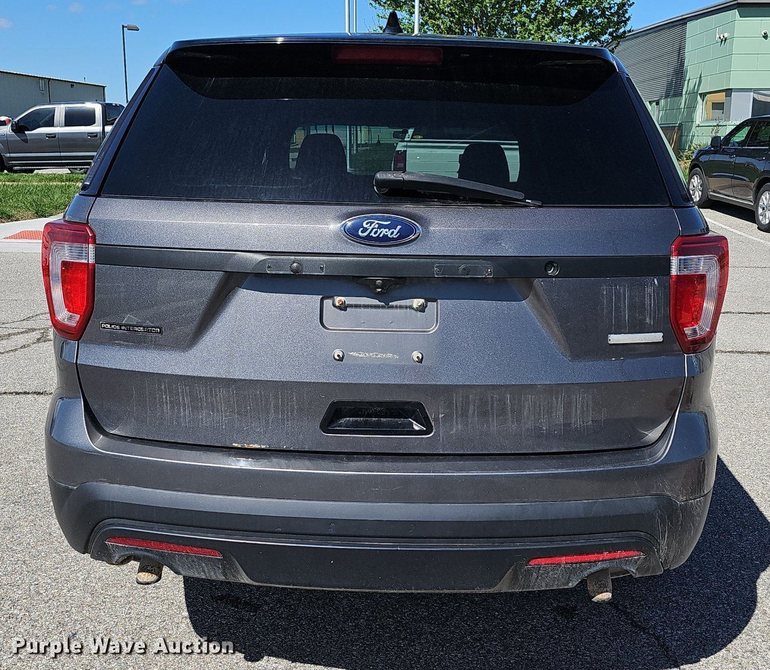 2016 Ford Explorer Police Interceptor SUV. Miles: 172,815 on odometer, VIN: 1FM5K8AT8GGC36951, Unit #: 23. Engine Displacement: 3.5L V6 DOHC, Fuel type: Gas. Transmission Automatic. Interior AC, Heat, Seat: Power driver, Heated mirrors, Power windows, Power locks, Cruise control. Features Spotlight included. Tires Size: 245/55R18. Notes Center console missing, Rear view mirror missing, Passenger rear door has barred window and pd style panel, Dash warning indicator: TPMS. Kansas title. Title distribution may be delayed up to 14 days from verification of funds. Ottawa, KS 66067