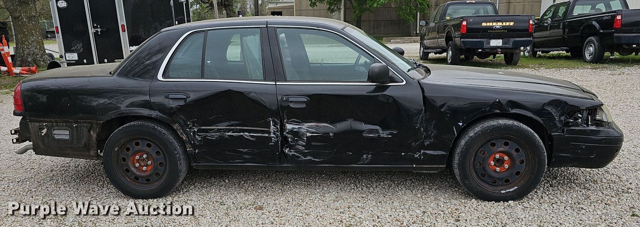 2009 Ford Crown Victoria Police Interceptor. Miles: 142,445 on odometer, VIN: 2FAHP71V09X148638, Unit #: 345. Engine Displacement: 4.6L V8 SOHC, Cylinders: 8, Fuel type: Gas. Transmission Automatic. Interior AC, Heat, Power windows, Power locks, Cruise control. Tires Size: P235/55R17. Notes Non-operational driver side rear door Non-operational window, Non-operational passenger doors, No rear seat, Collision damage, Unit must be towed or hauled, Dash warning indicator: TPMS. Kansas title. New Century, KS 66031