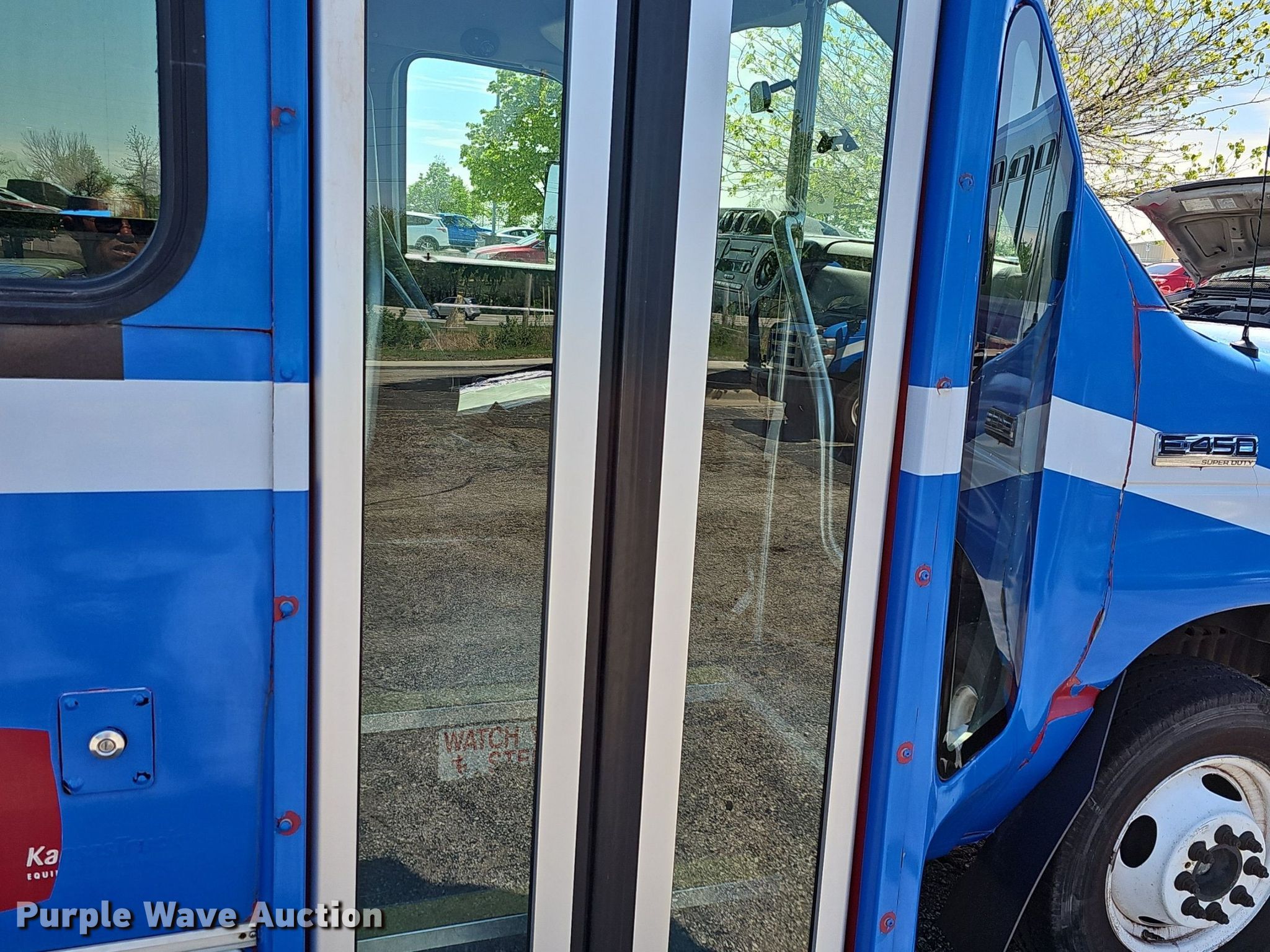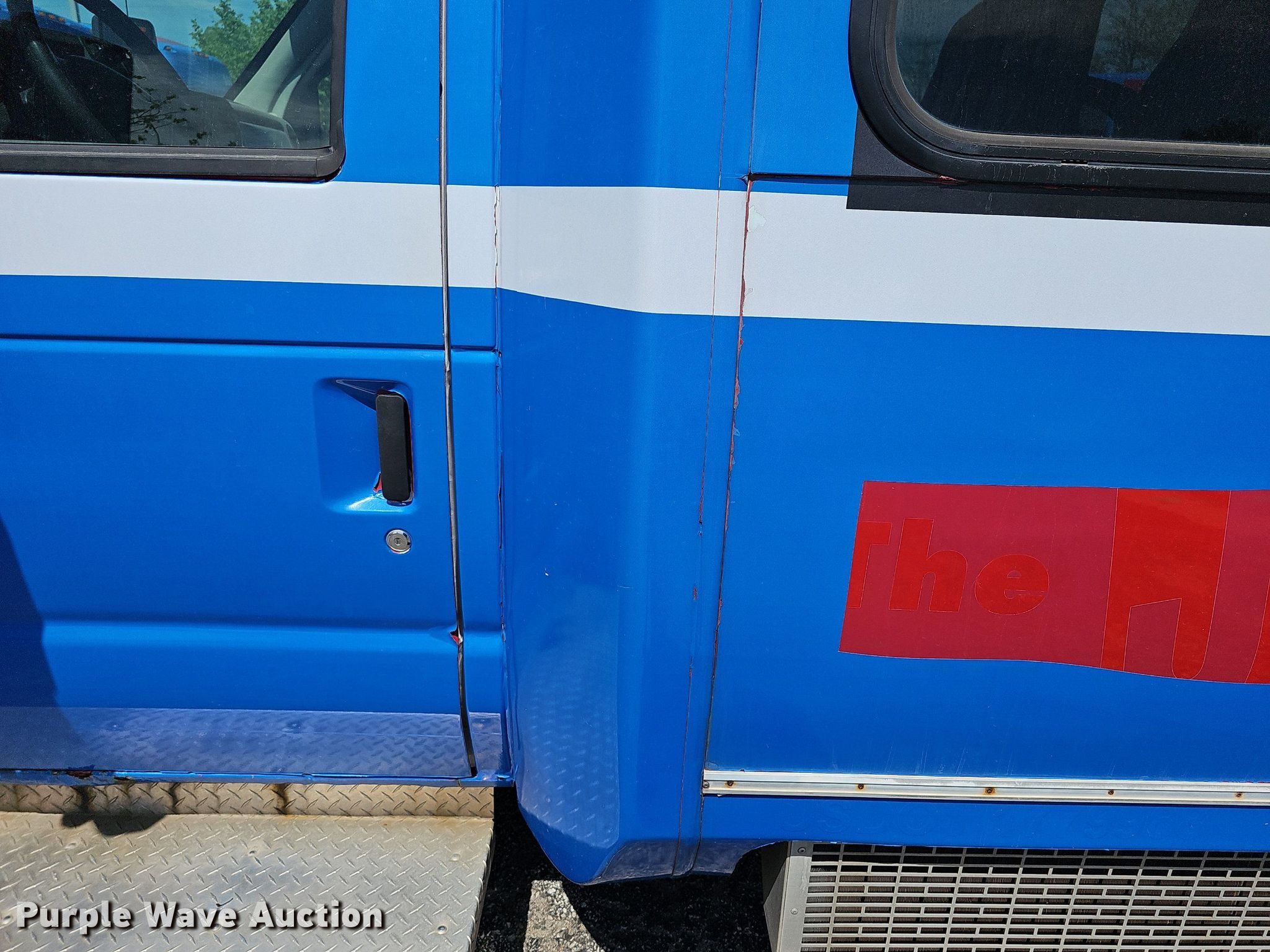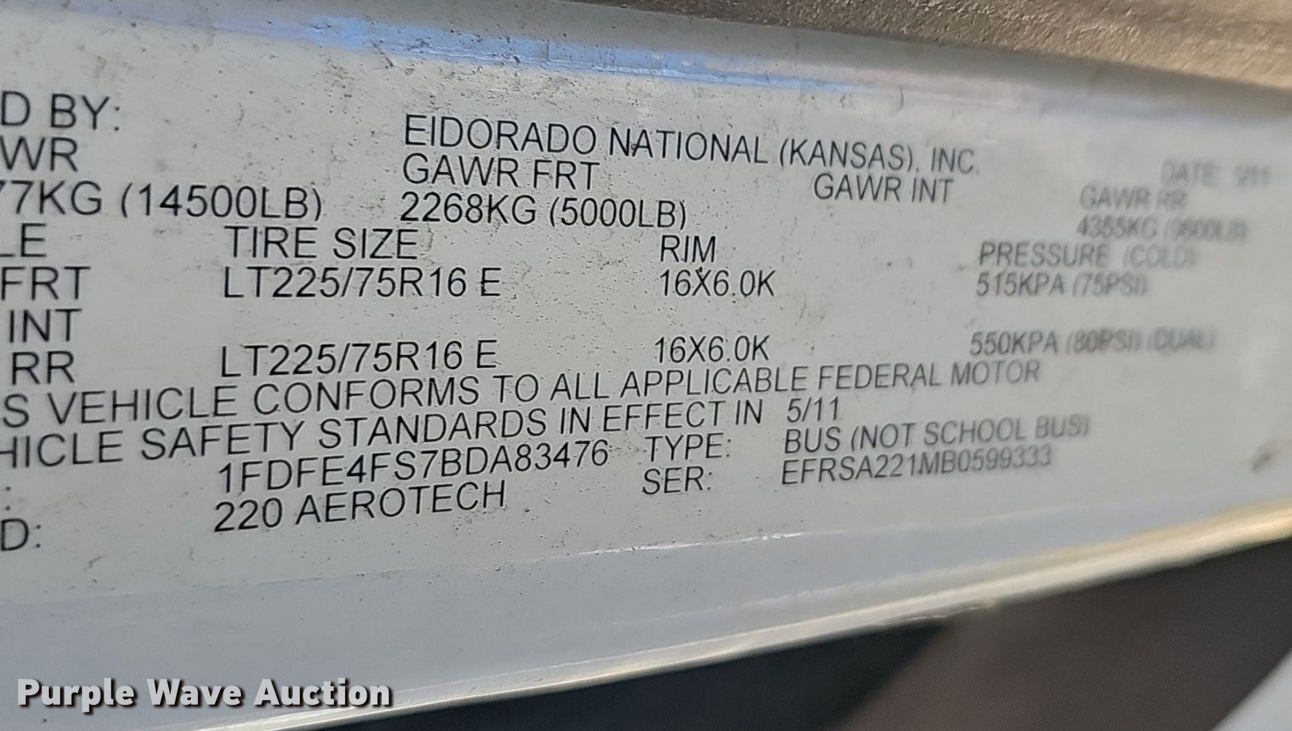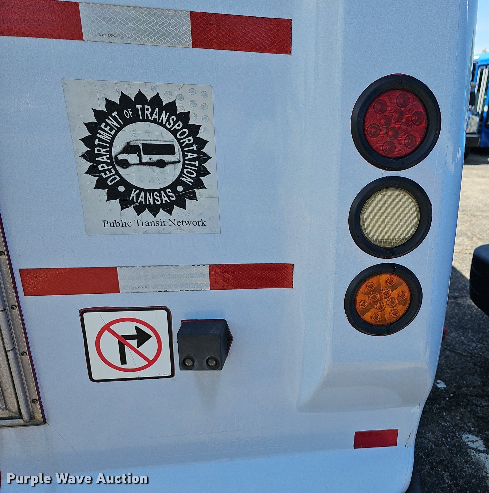 2011 Eldorado National shuttle bus. Miles: 216,856 on odometer, VIN: 1FDFE4FS7BDA83476, Unit #: 152. Engine Displacement: 6.8L, Cylinders: 10, Fuel type: Gas. Transmission Automatic. Chassis Axles: Single, Suspension: Spring, Brakes: Hydraulic, GVWR: 14,500 lbs, Wheelbase: 156". Interior AC, heat, Cruise control, Electric passenger sliding door, Passengers: 12, Wheelchair lift. Tires Size: LT225/75R16. Notes Step well will be removed prior to auction, Dead battery. Kansas title. Title distribution may be delayed up to 14 days from verification of funds. Johnson County Transit. Olathe, KS 66061
