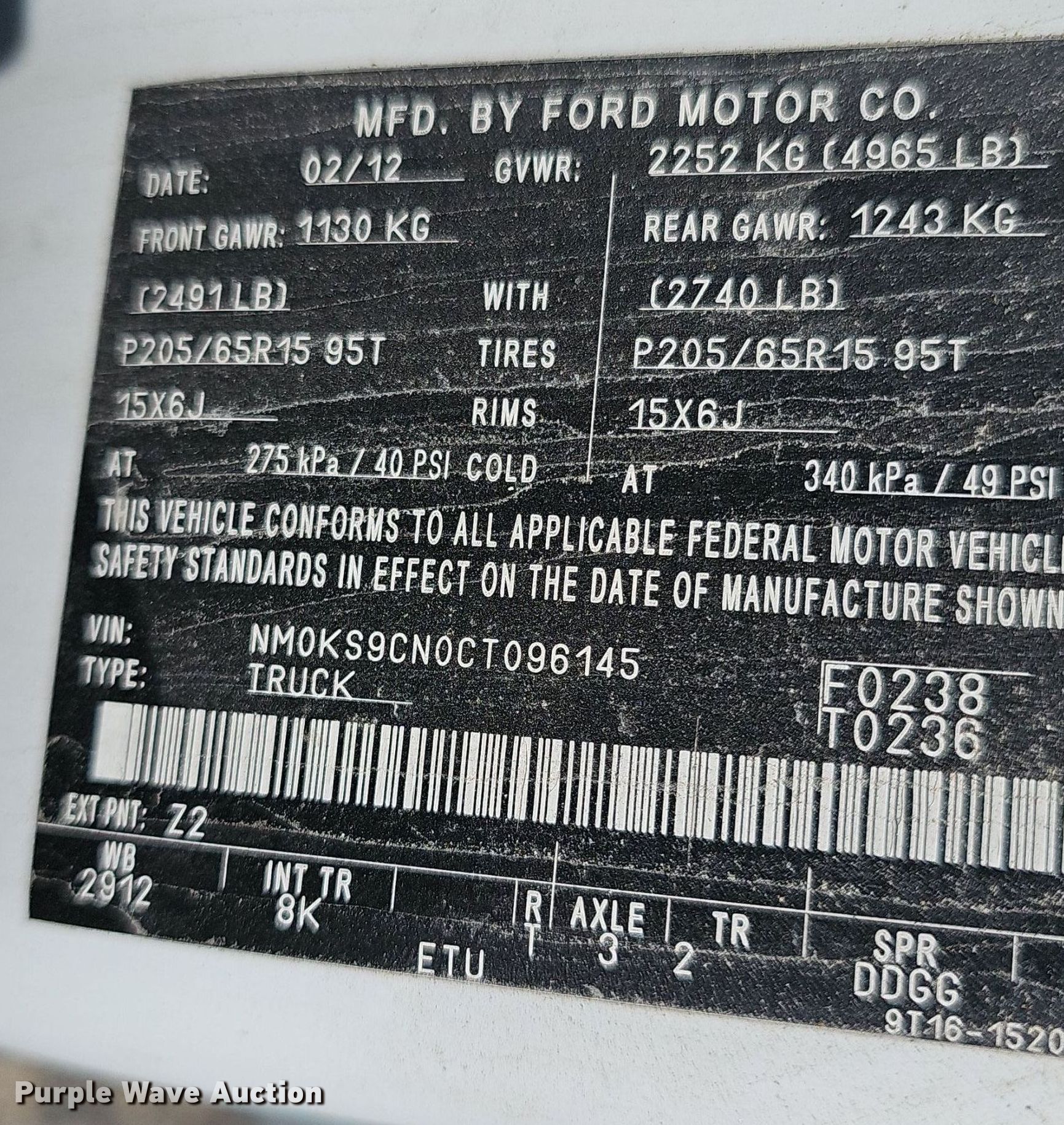 2012 Ford Transit Connect XLT handicap accessible van. Miles: 144,994 on odometer, VIN: NM0KS9CN0CT096145, Unit #: 156. Engine Displacement: 2.0L L4 DOHC, Cylinders: 4, Fuel type: Gas. Transmission Automatic. Interior AC, heat, Power windows, power locks, Cruise control. Features Wheelchair ramp. Tires Size: 205/65R15. Notes Non-operational passenger rear door, Windshield chipped or cracked, Dead battery. Kansas title. Title distribution may be delayed up to 14 days from verification of funds. Johnson County Transit. Olathe, KS 66061