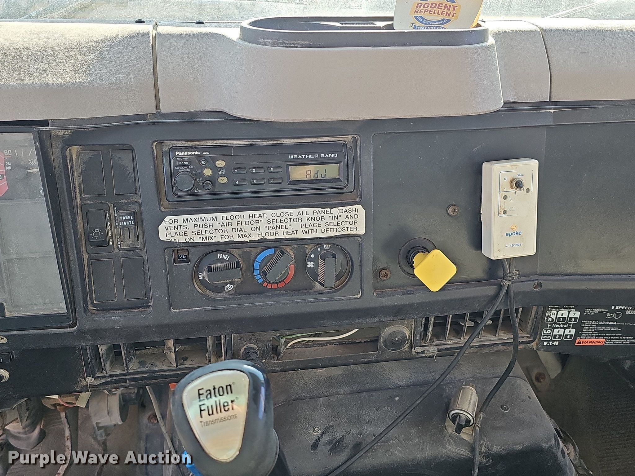 2001 International 4900 dump truck. Miles: 152,815 on odometer, Hours: 7,736 on meter, VIN: 1HTSDAAN41H341372. Engine International CH230, Displacement: 7.6L, Cylinders: 6, Fuel type: Diesel. Transmission Eaton Fuller, Manual, Speed: 10. Chassis Double frame, Axles: Single, Suspension: Spring, Brakes: Air, Front mount PTO, GVWR: 33,000 lbs FAWR: 12,000 lbs, RAWR: 21,000 lbs. Interior AC, Heat, Heated mirrors, Cruise control, Brake controller. Features Dump bed 12' L x 96" W, Side height: 32", Bed type: Steel, Liner, Roll tarp, Ram: Single, End gate: Air operated. Tires Size: 11R22.5. Notes Non-operational end gate latch, Rust damage on bed. Iowa title. Seller is a government entity who will be assigning and distributing the title. Please contact the seller for distribution questions. Montgomery County Secondary Roads. Red Oak, IA 51566