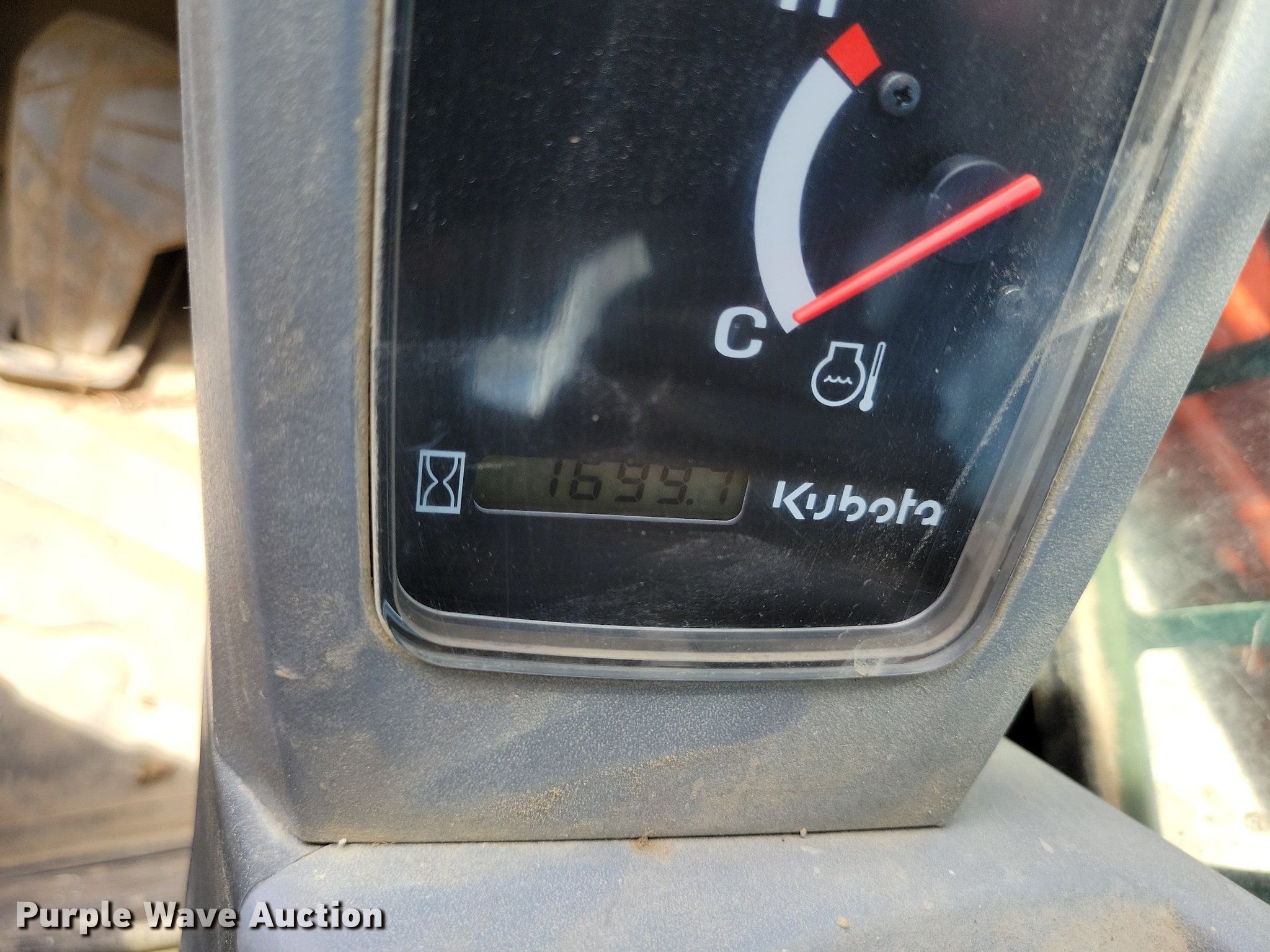 2011 Kubota SVL90 tracked skid steer loader. Hours: 1,700 on meter, Serial: 10410. Engine Kubota, Serial: BA2276, Cylinders: 4, Fuel type: Diesel. Transmission Hydrostatic. Operators station Enclosed cab, AC, Heat, Bucket control: Hand. Features Auxiliary hydraulics, Quick coupler: Hydraulic, Bucket Width: 84", Teeth: Bolt-on. Tracks Width: 17.5". Notes Non-operational AC blower motor. Public Water Supply District No. 2. Holden, MO 64040