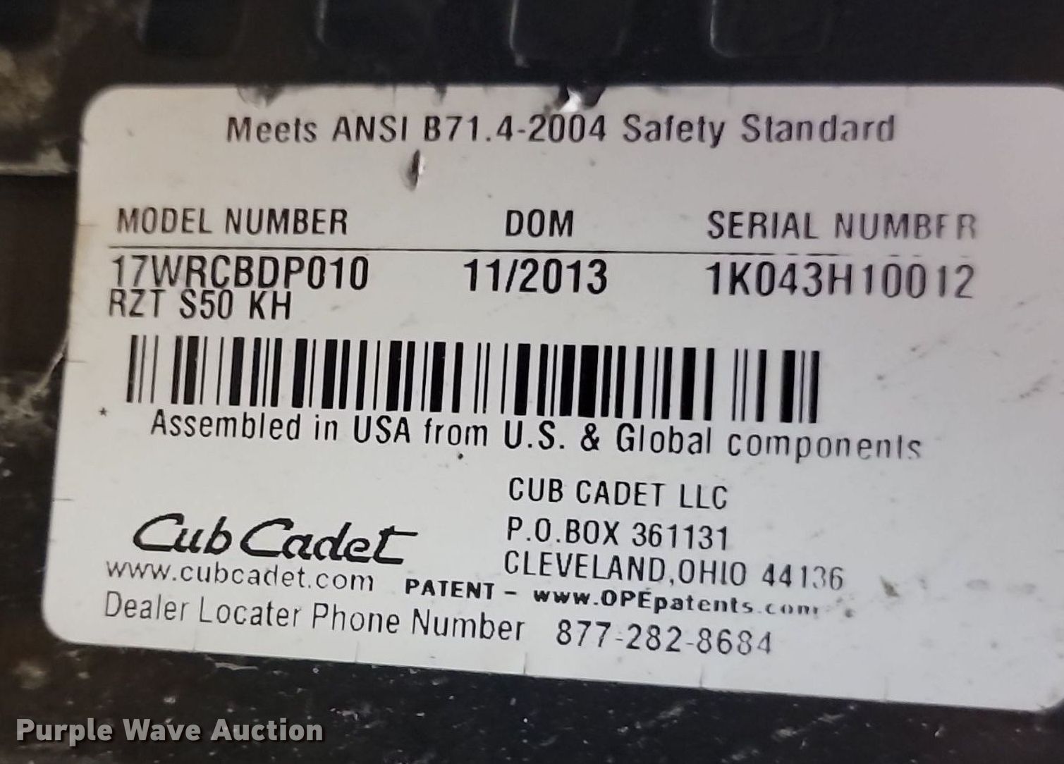 2013 Club Cadet RZT S50KH lawn mower | SOLD! May 14 Government Auction