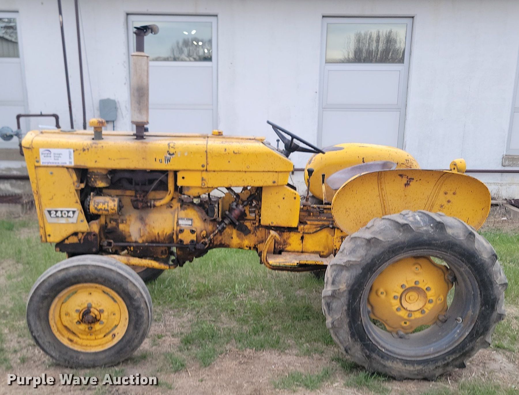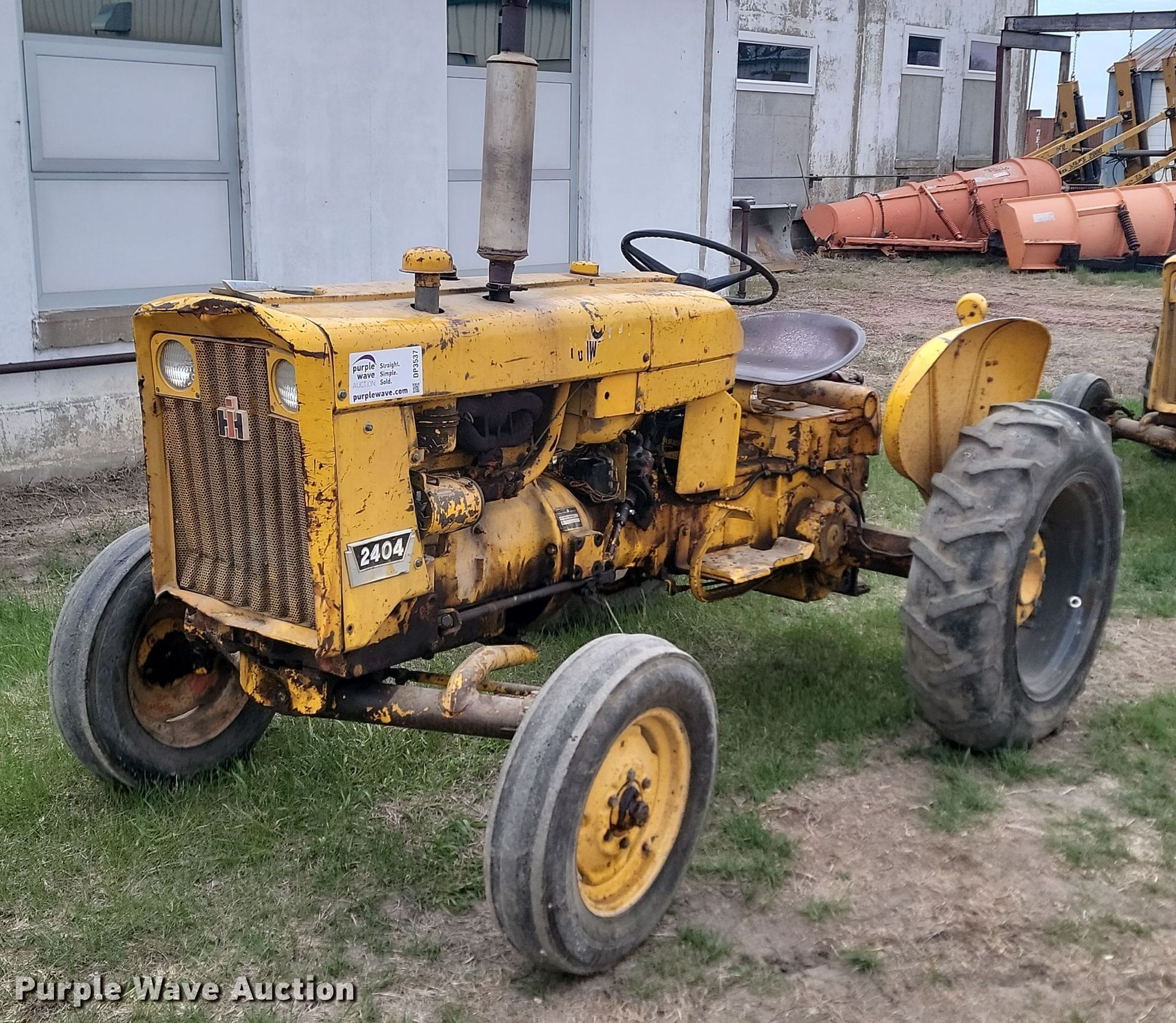 1965 International 404 tractor. Hours: 1,285 on meter, Actual hours unknown, Serial: 8844 J. Engine International, Cylinders: 4, Fuel type: Gas. Transmission Manual, 4F - 1R. Features PTO: 540, Hydraulic remote sets Rear: 1. Tires Front: 6.00-16, Rear: 11.2-24. Notes Steering issues, weak. Davison County Highway Department. 1224 W 5th Ave. Mitchell, SD 57301